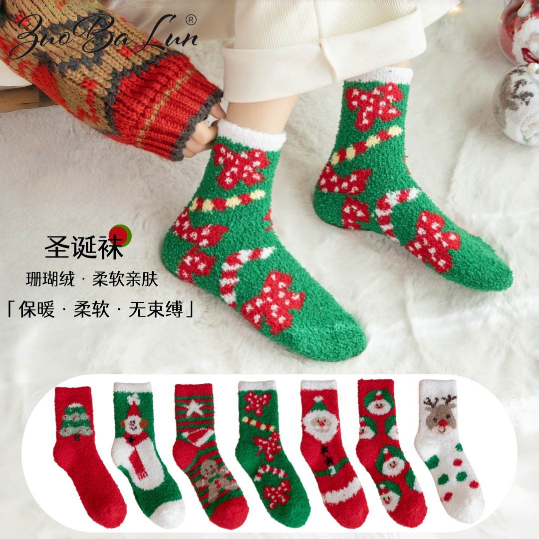 CT30珊瑚绒圣诞袜