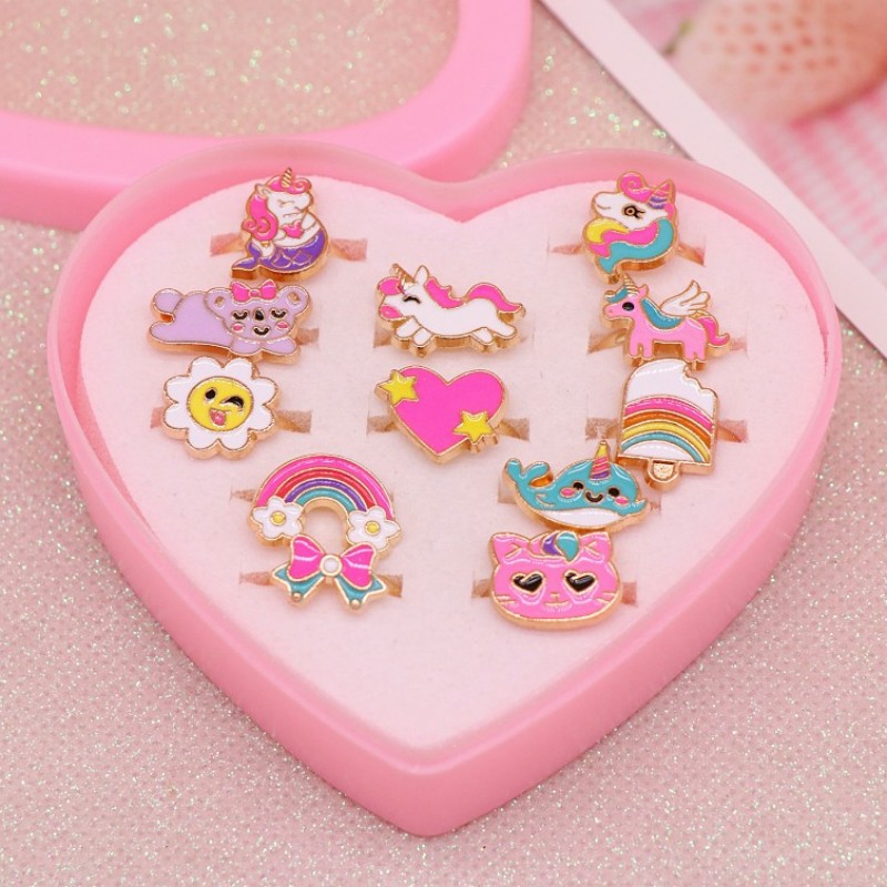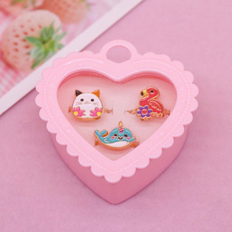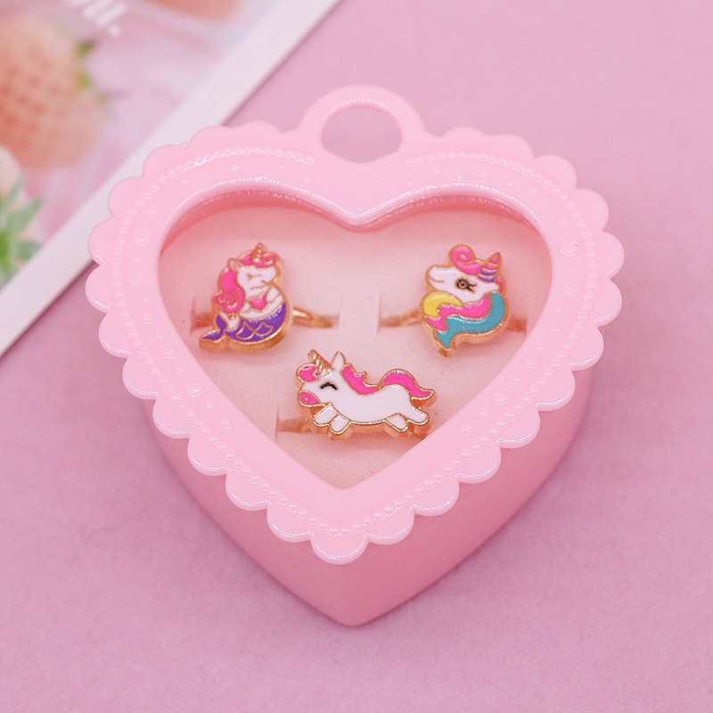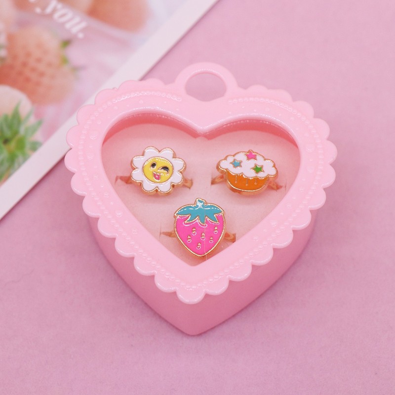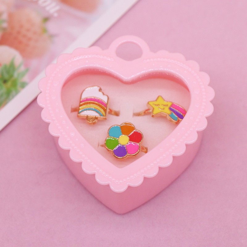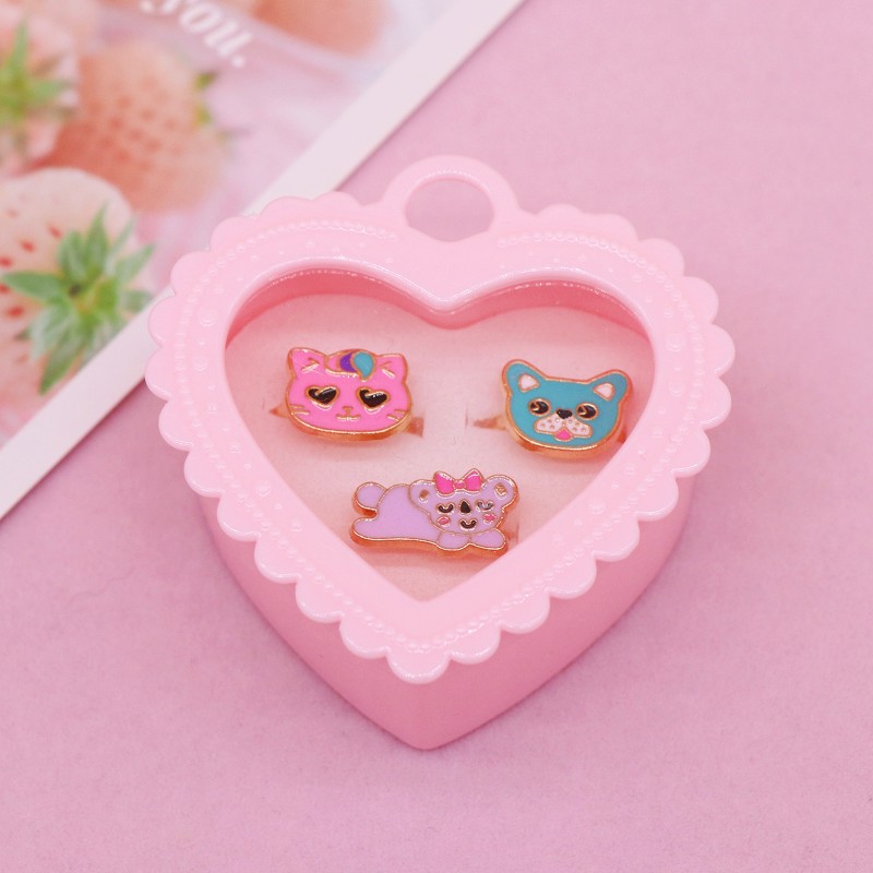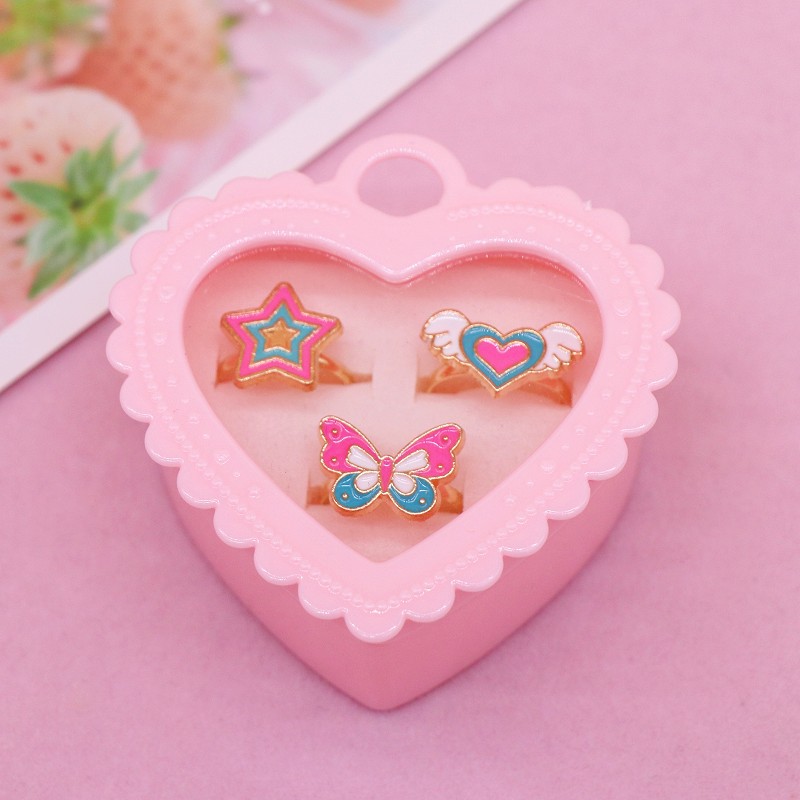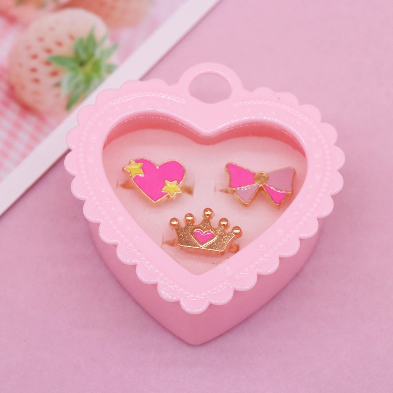 新款儿童戒指套装合金女生精美指环可调节爱心盒套36枚卡通混款