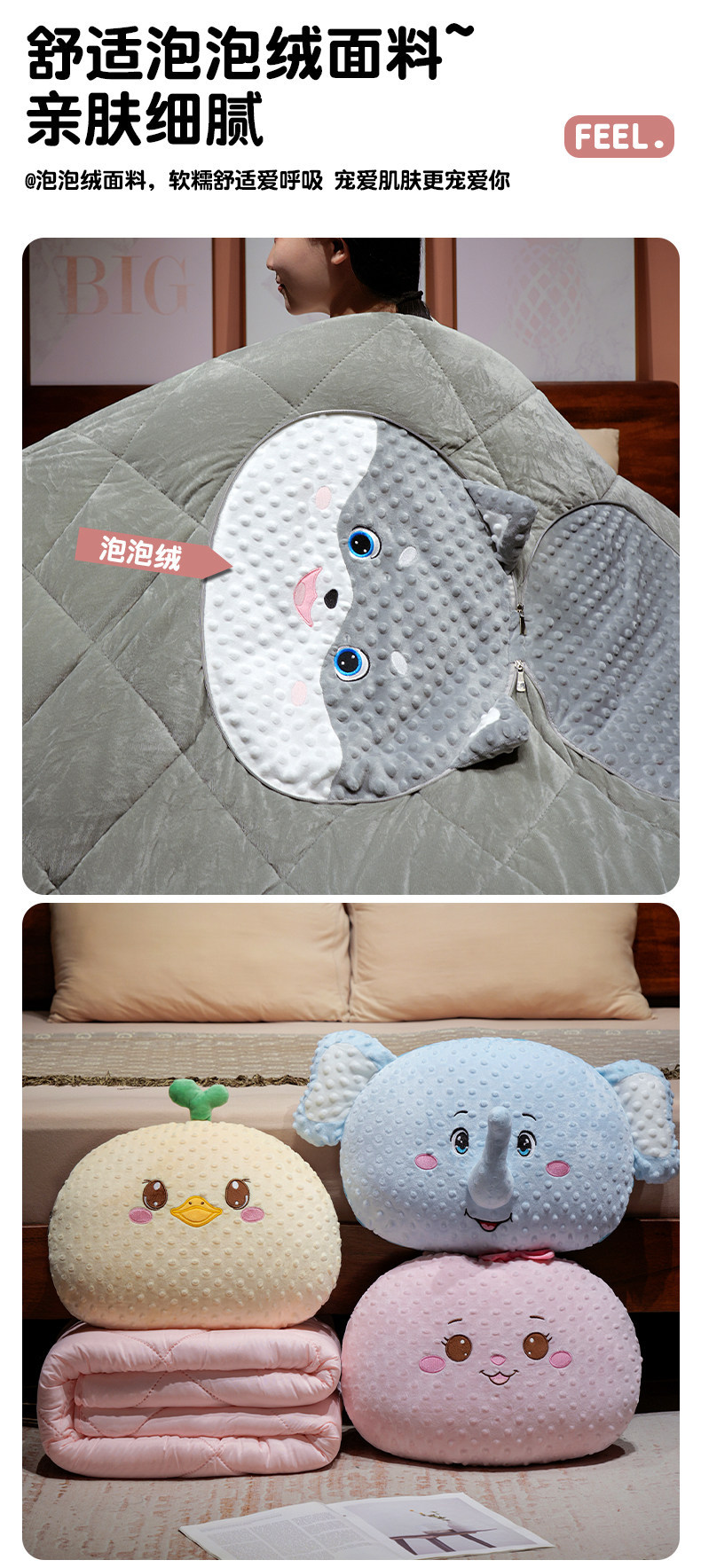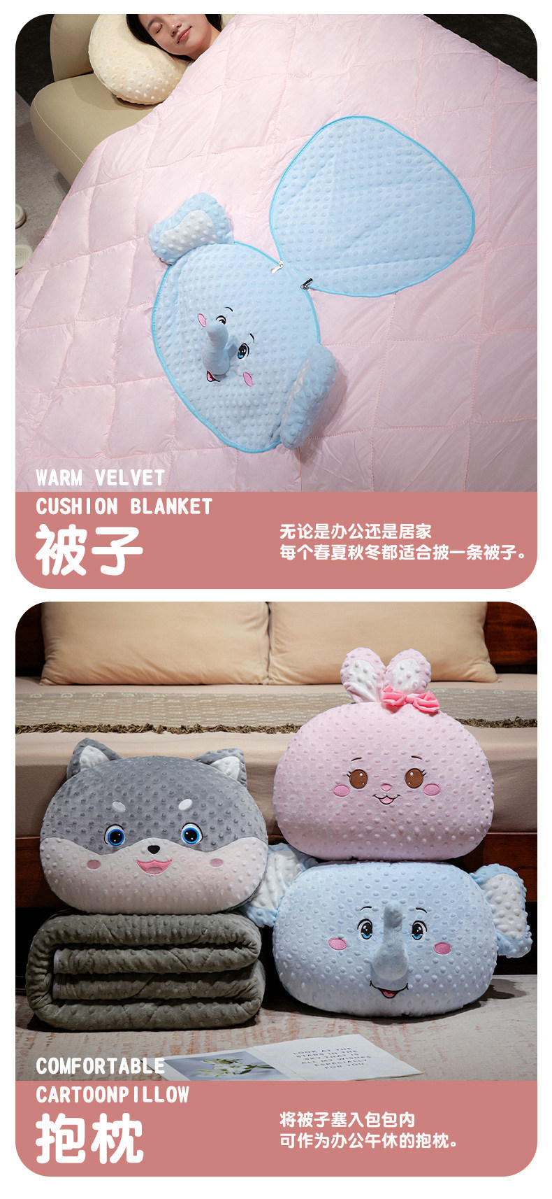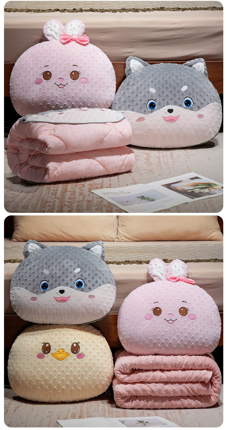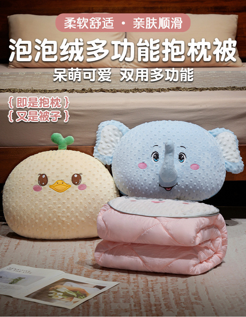 创意泡泡绒卡通动物多功能抱枕被沙发靠枕汽车空调被子午睡盖被批