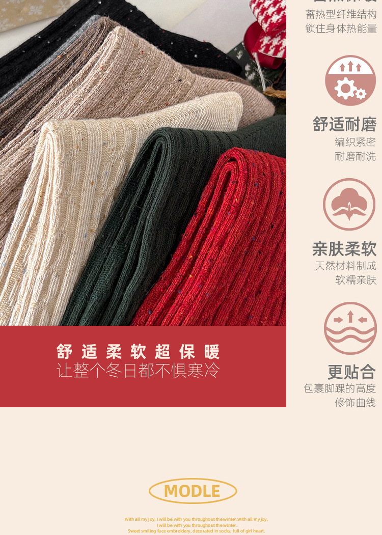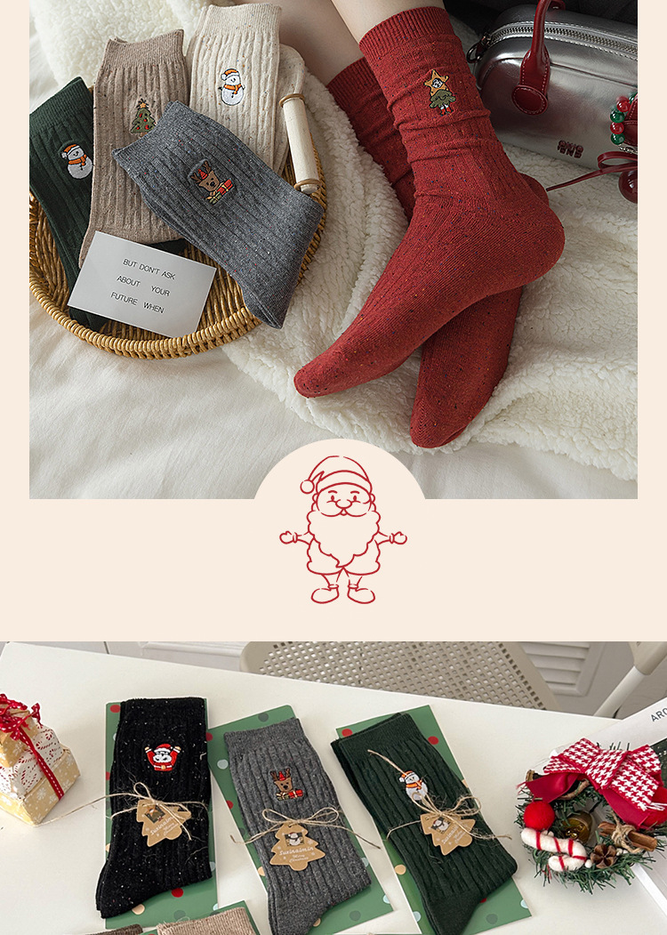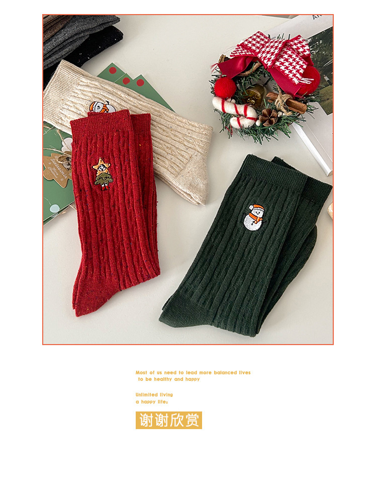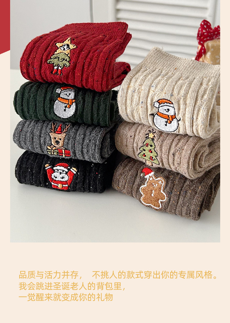 秋冬袜子女点子纱麻花圣诞袜雪人刺绣中筒袜ins潮外穿长筒堆堆袜