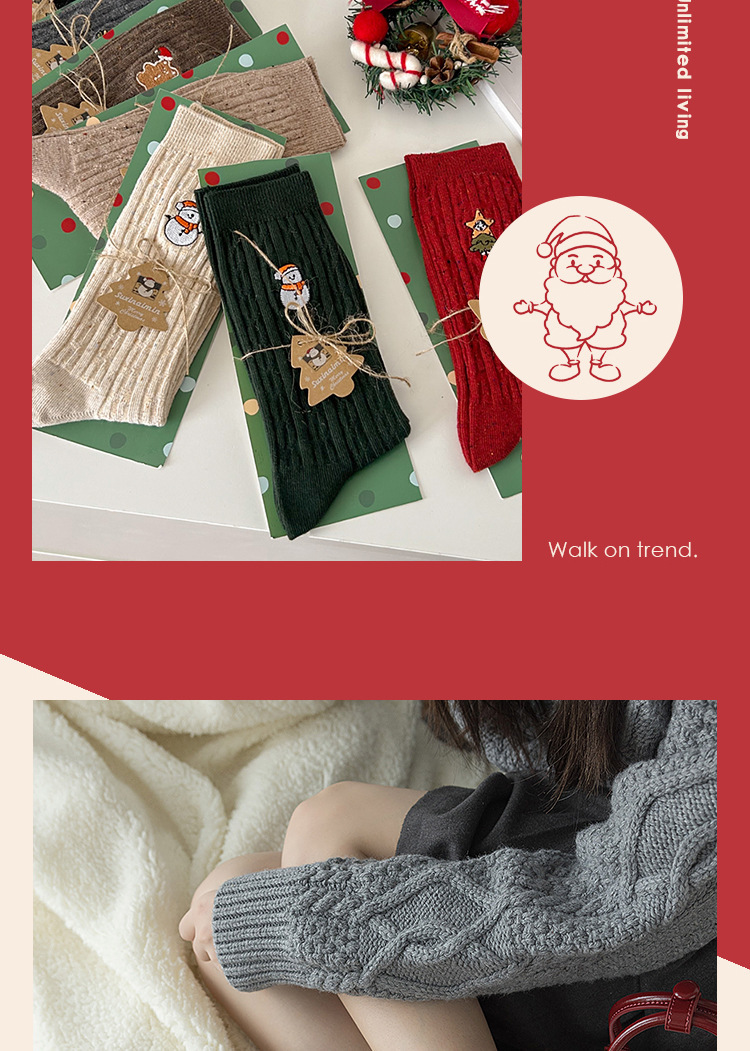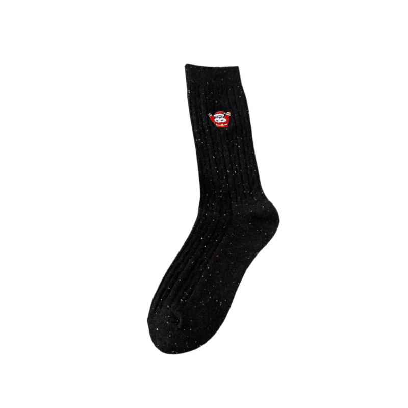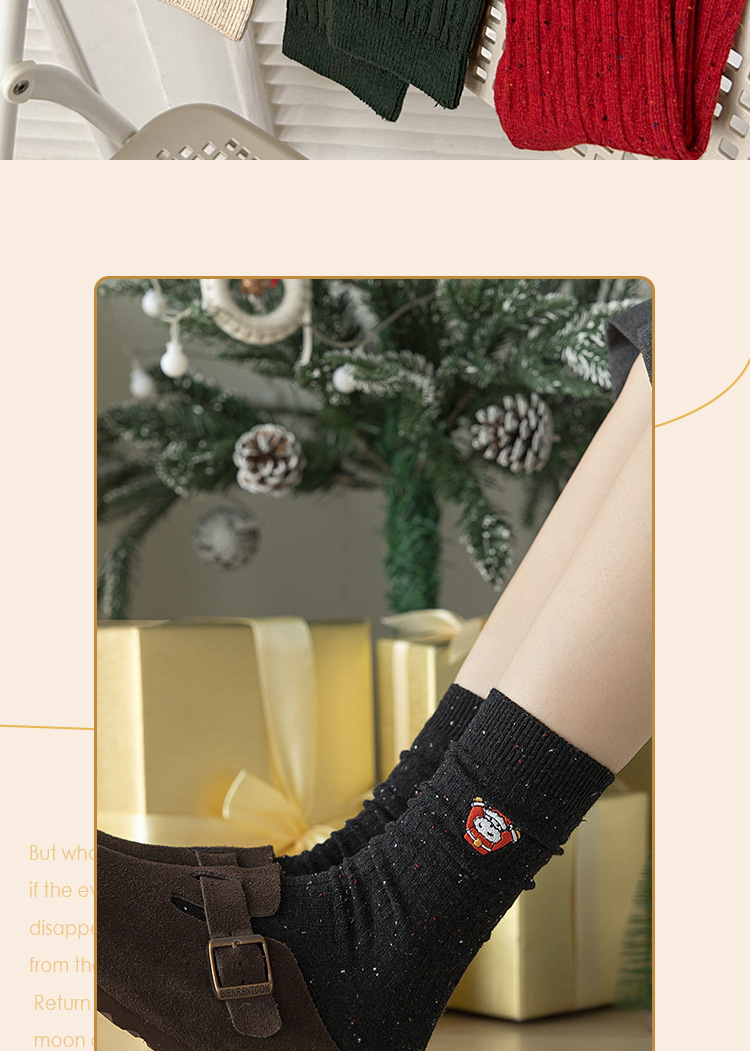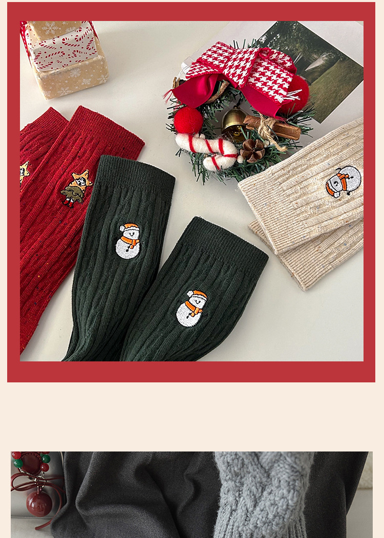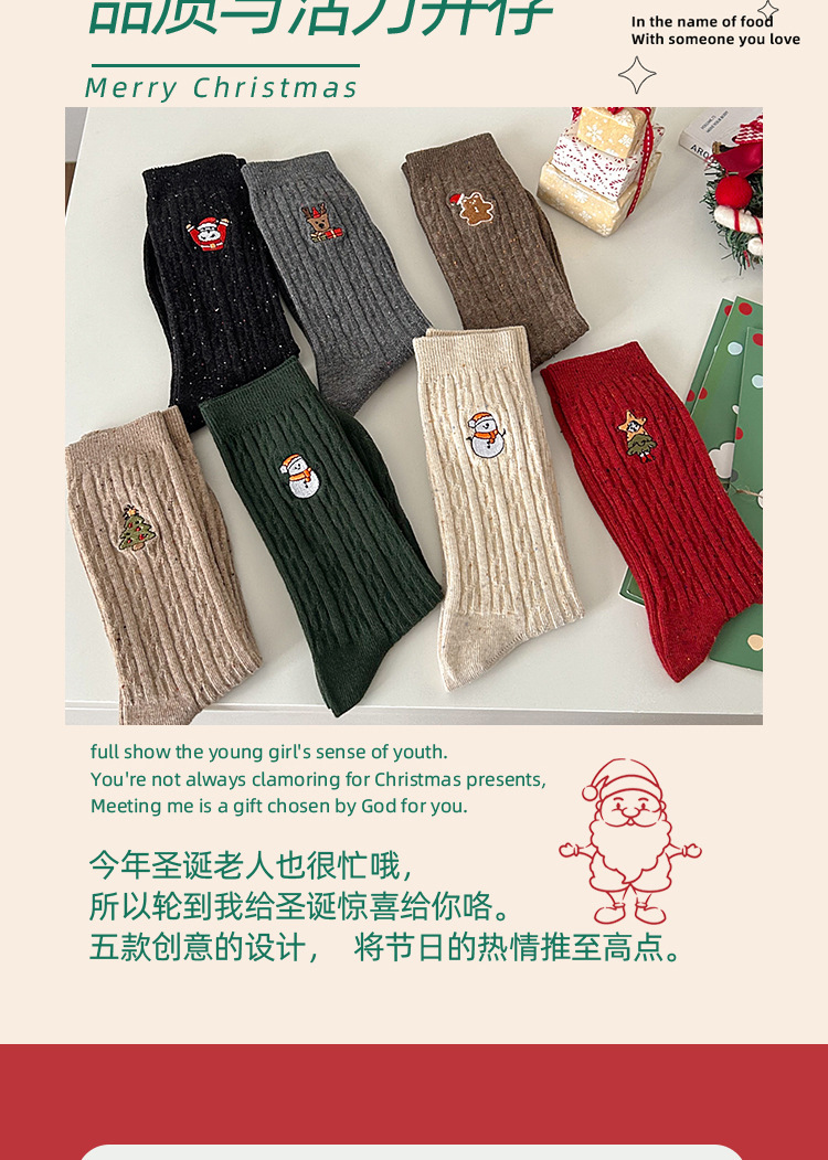 秋冬袜子女点子纱麻花圣诞袜雪人刺绣中筒袜ins潮外穿长筒堆堆袜