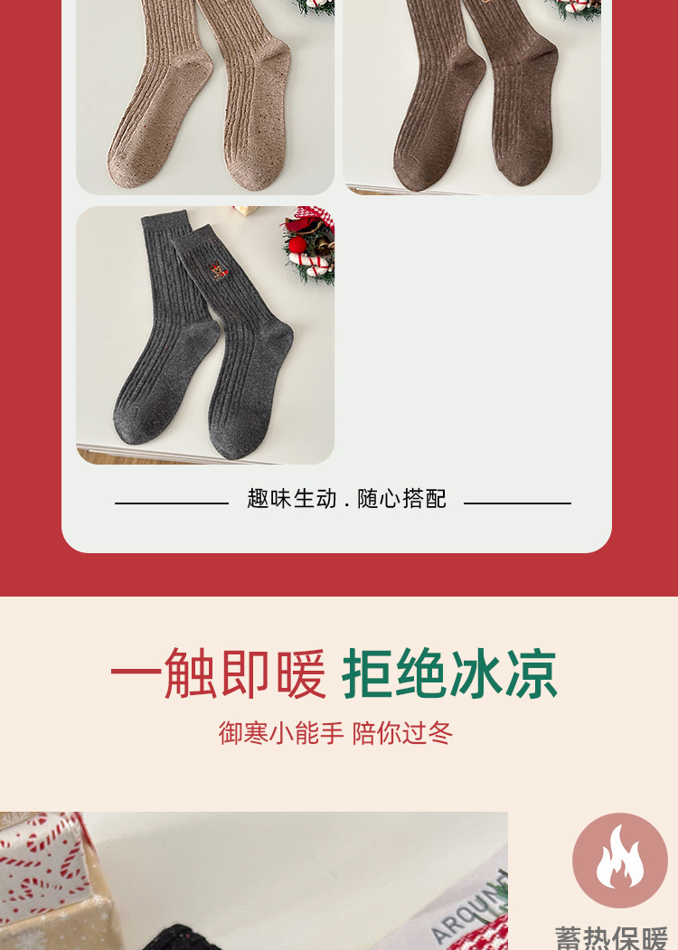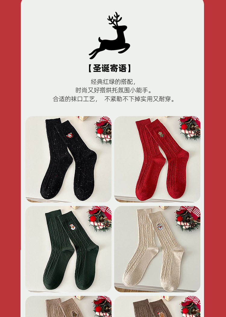 秋冬圣诞袜珊瑚绒中筒袜秋冬加绒加厚女中筒袜可爱麋鹿雪人礼物袜