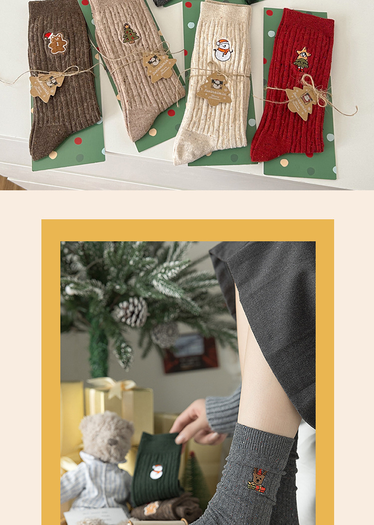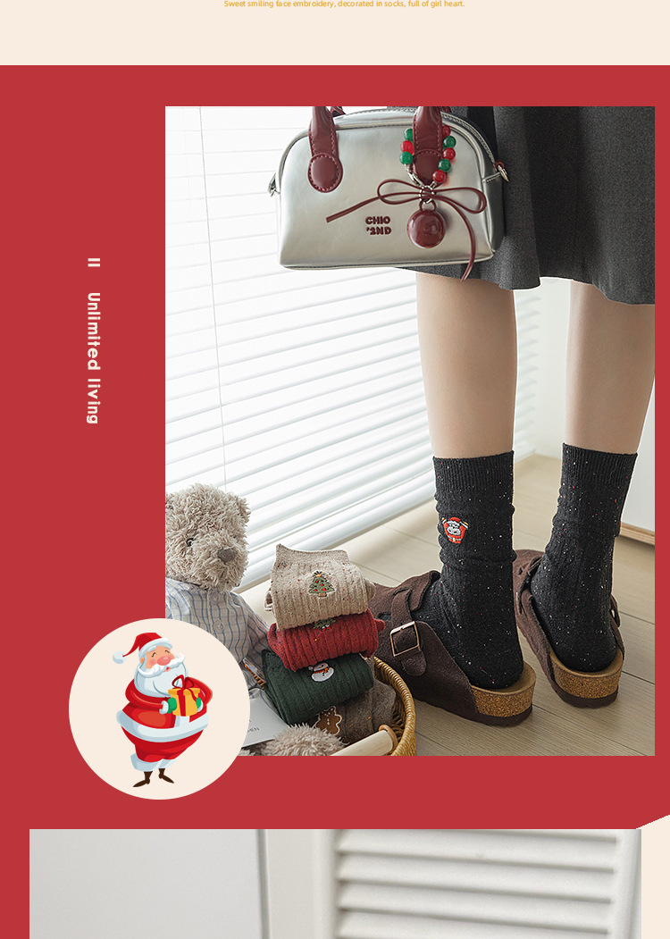 圣诞袜礼盒装秋冬新品卡通立体可爱袜子女中筒红色圣诞袜