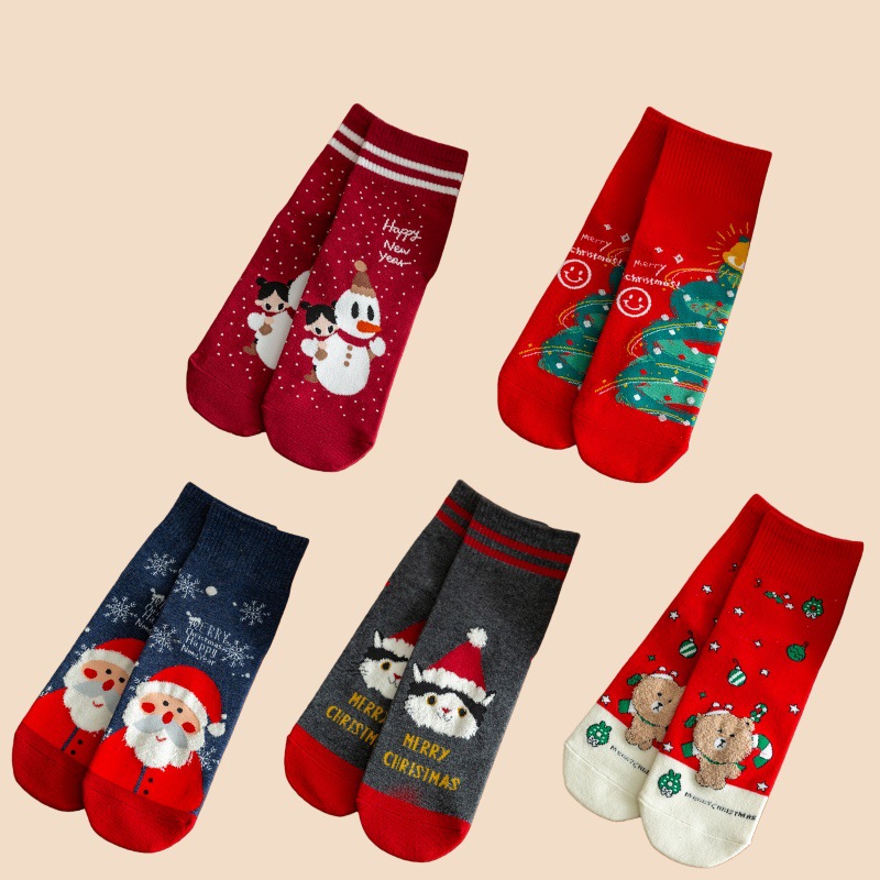 五双装//圣诞老人+圣诞树+小熊+雪人+圣诞猫