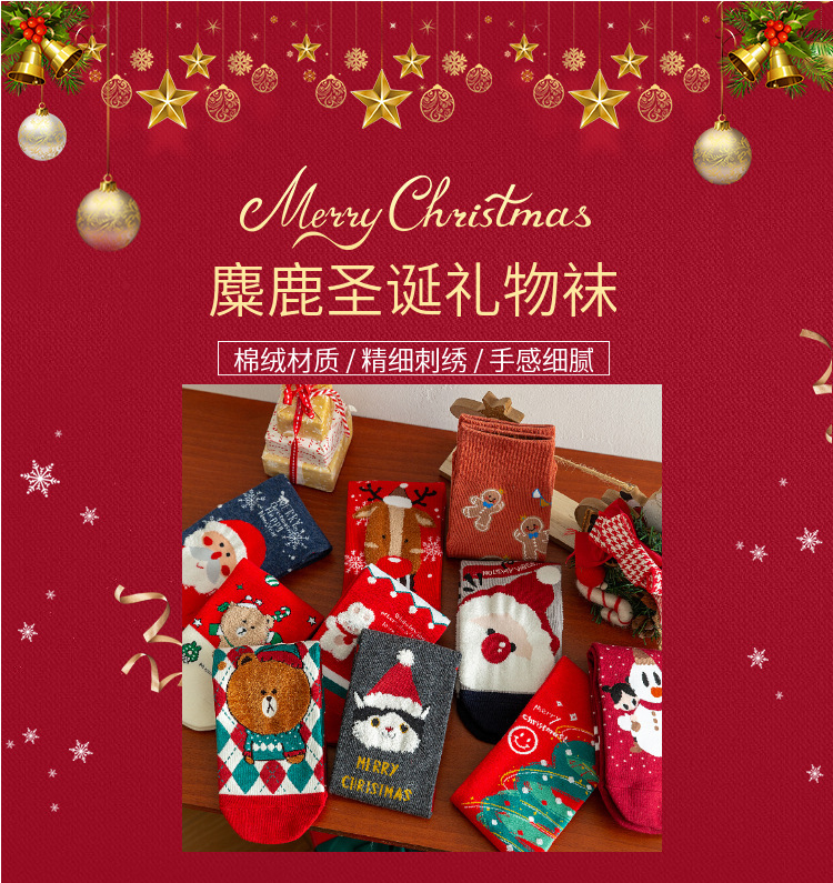 圣诞袜情侣袜礼物可爱秋冬袜子女中筒诸暨圣诞秋冬季圣诞