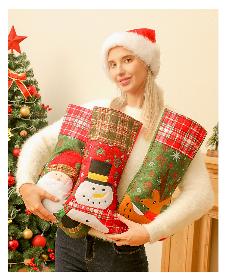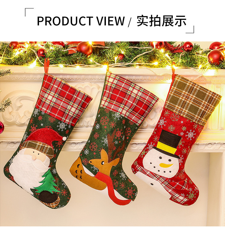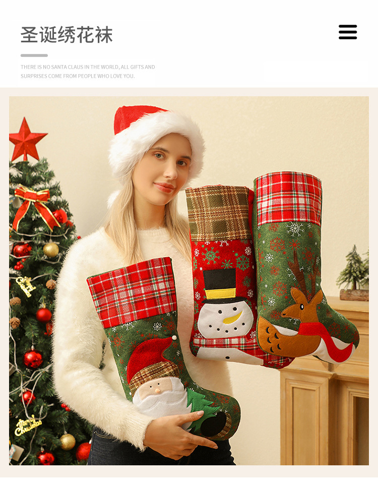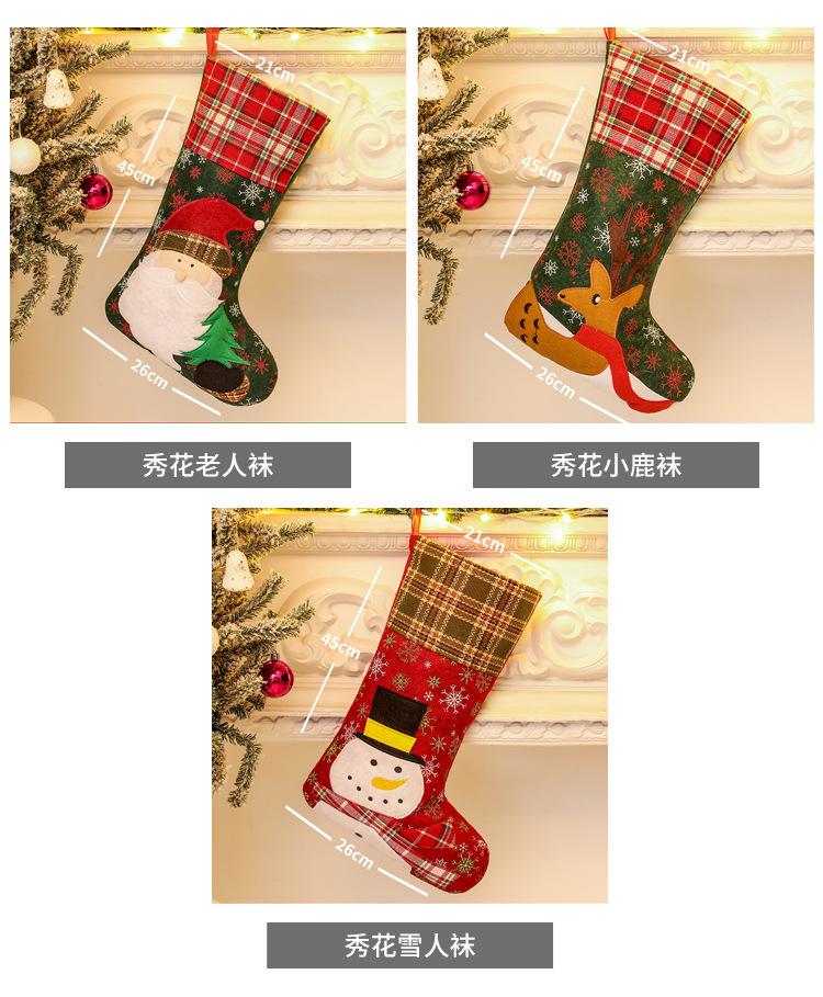 圣诞节绣花袜圣诞袜圣诞老人雪人袜子装饰布置壁挂袋创意圣诞袜