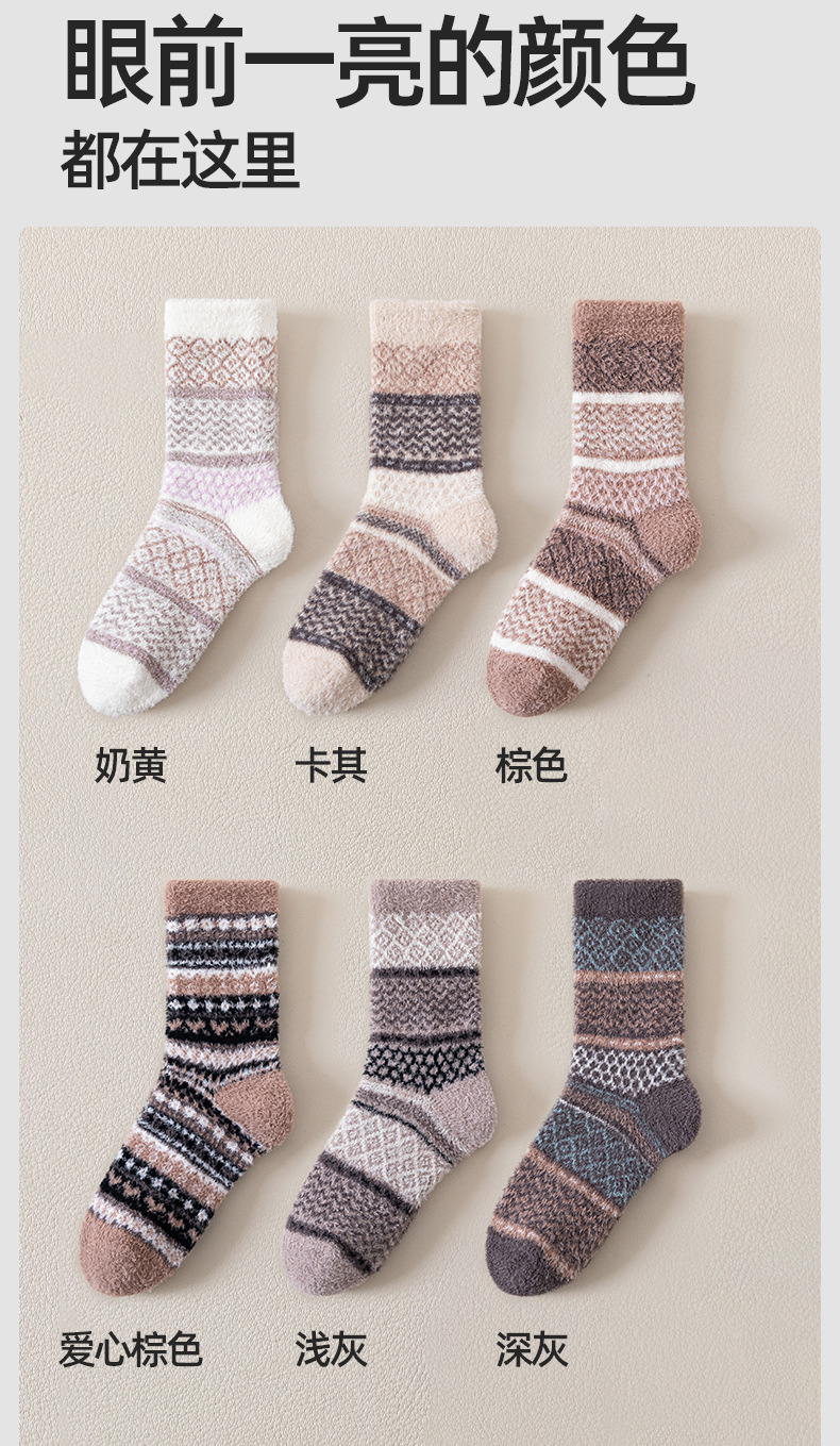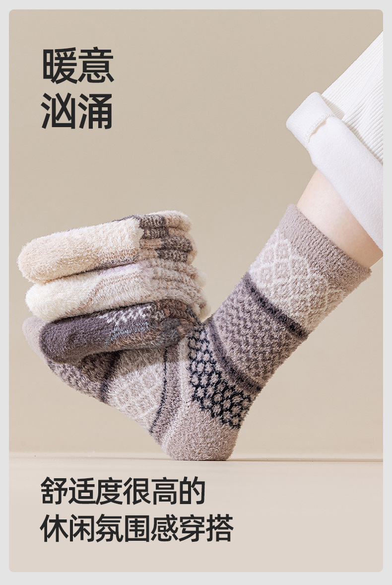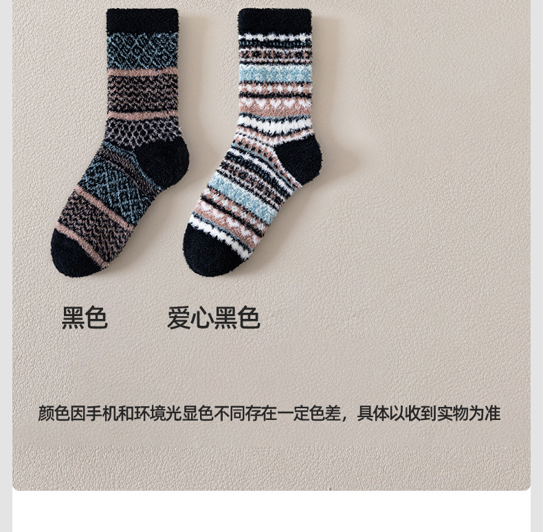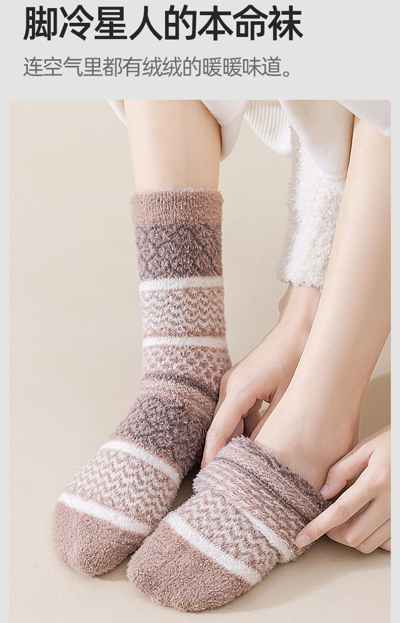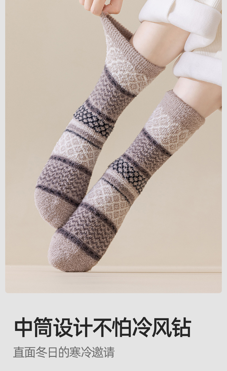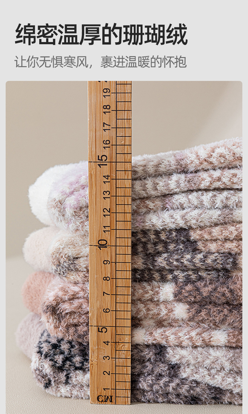 圣诞珊瑚绒袜子地板袜男女半边绒睡眠袜冬季柔软加厚保暖中筒袜