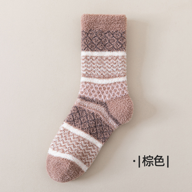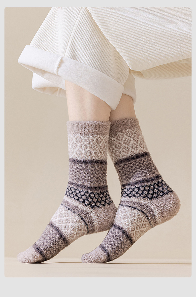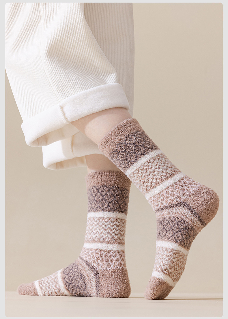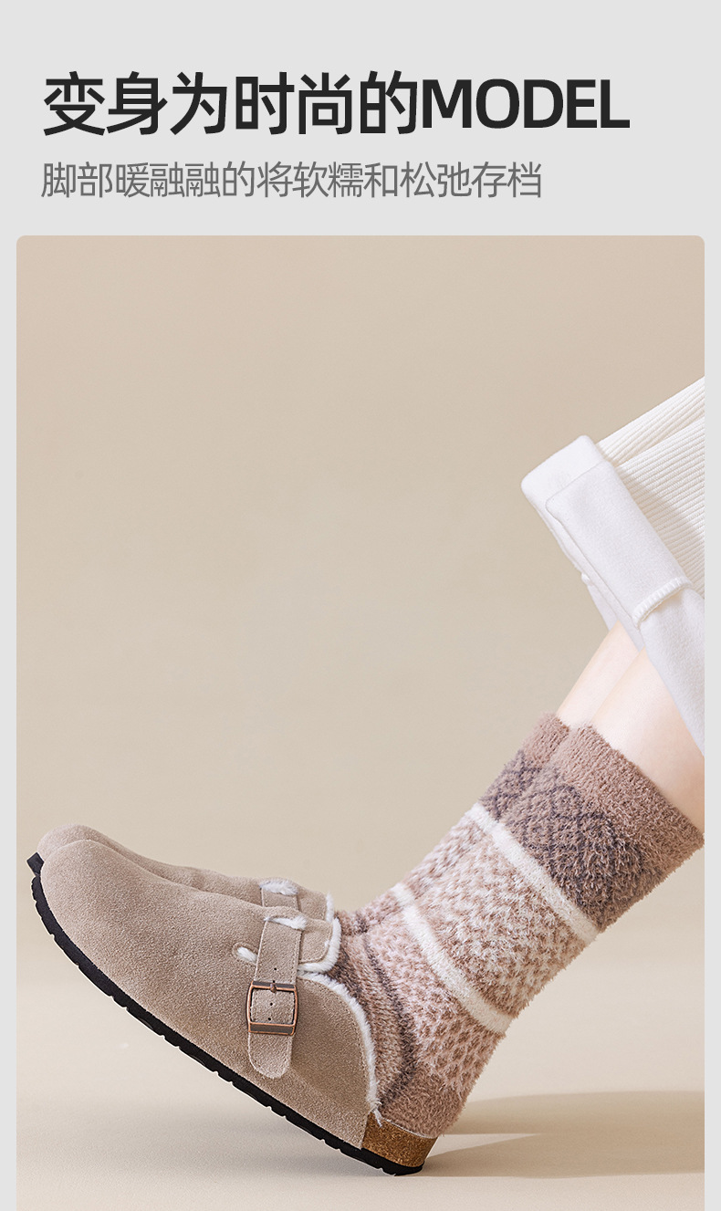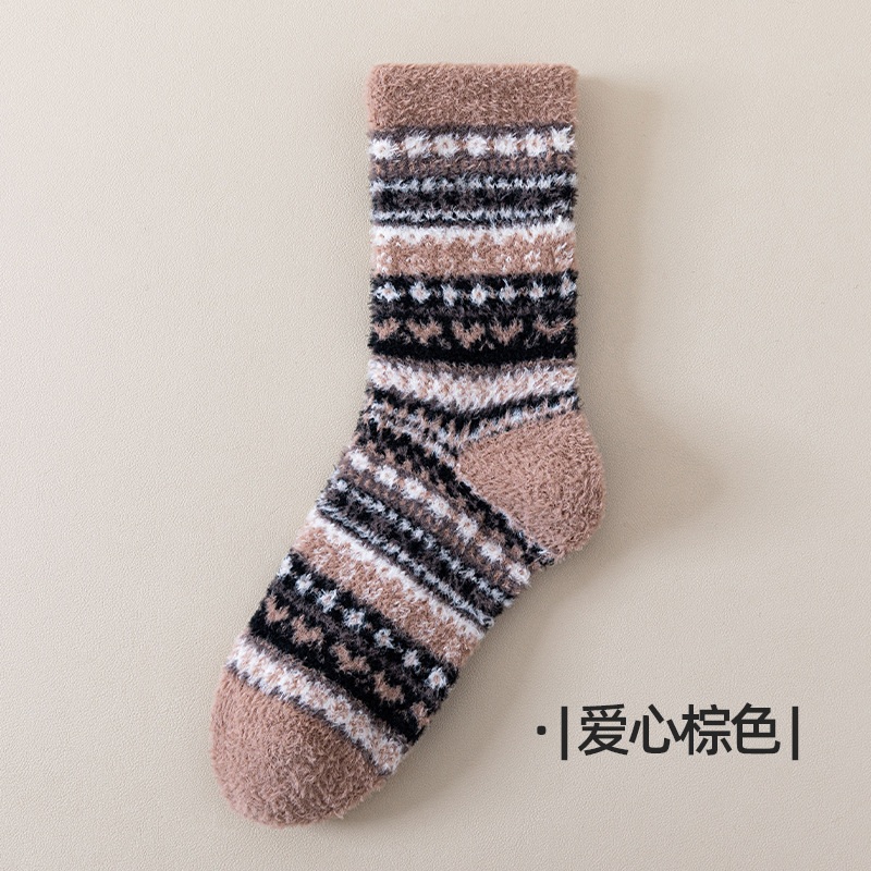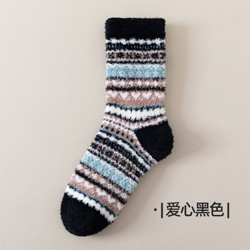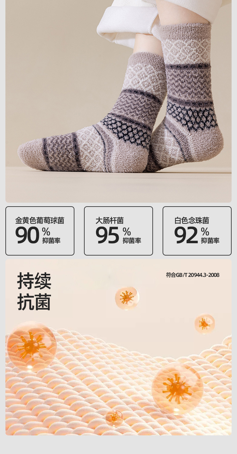 圣诞珊瑚绒袜子地板袜男女半边绒睡眠袜冬季柔软加厚保暖中筒袜