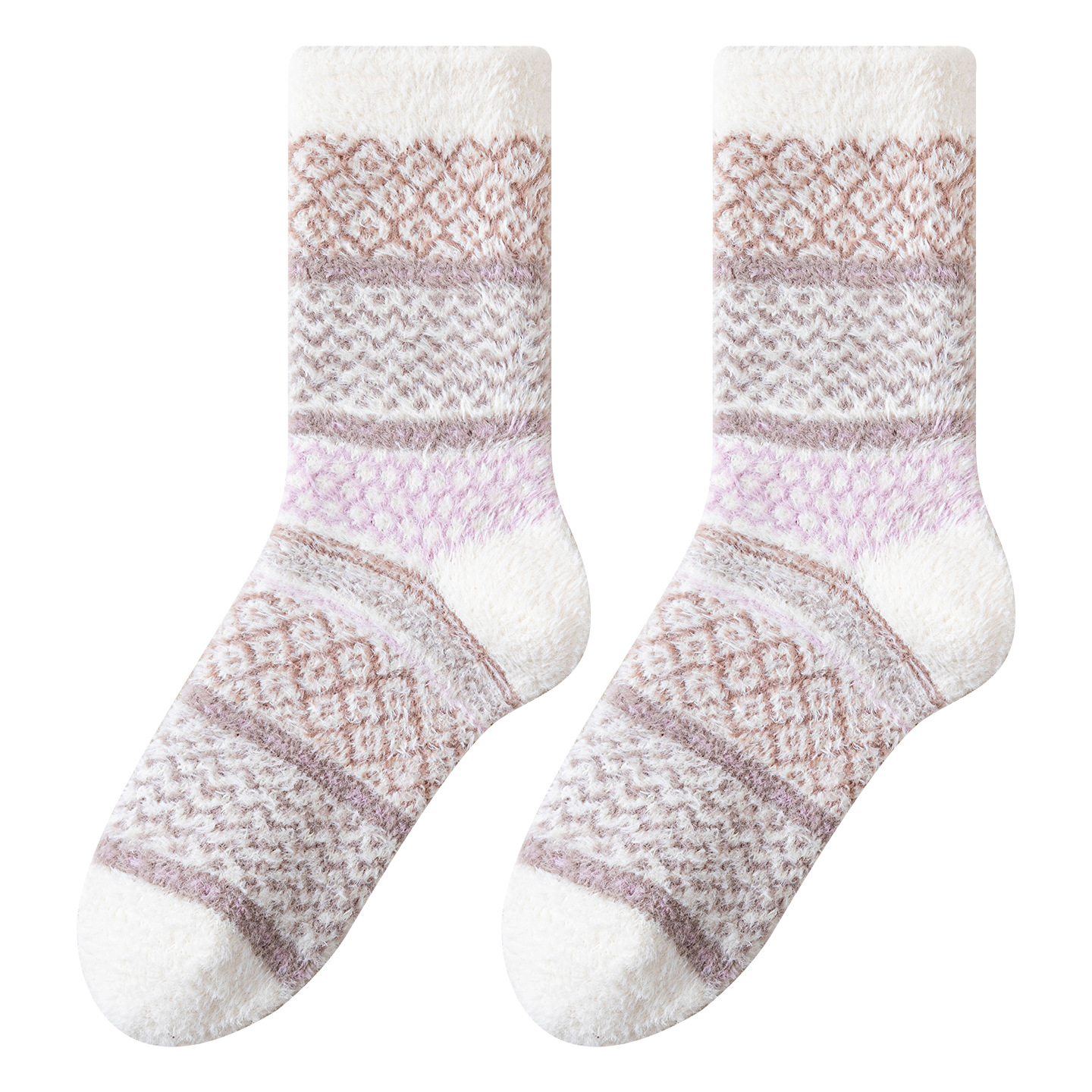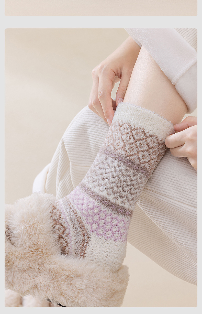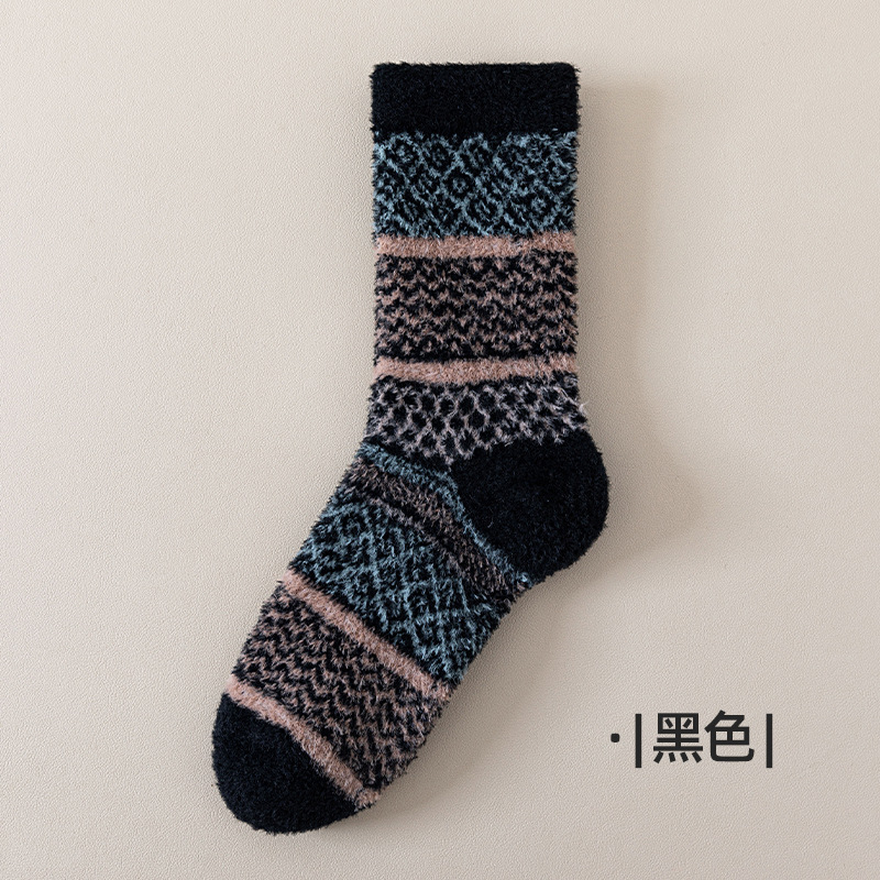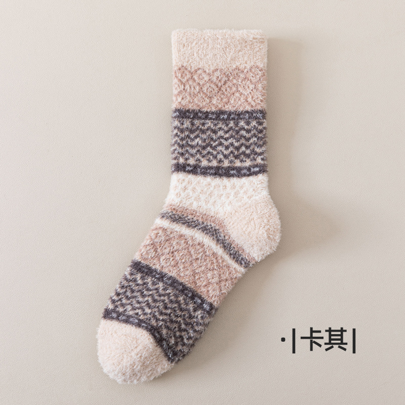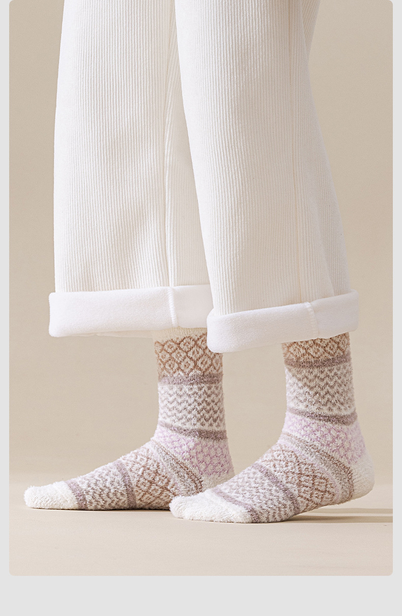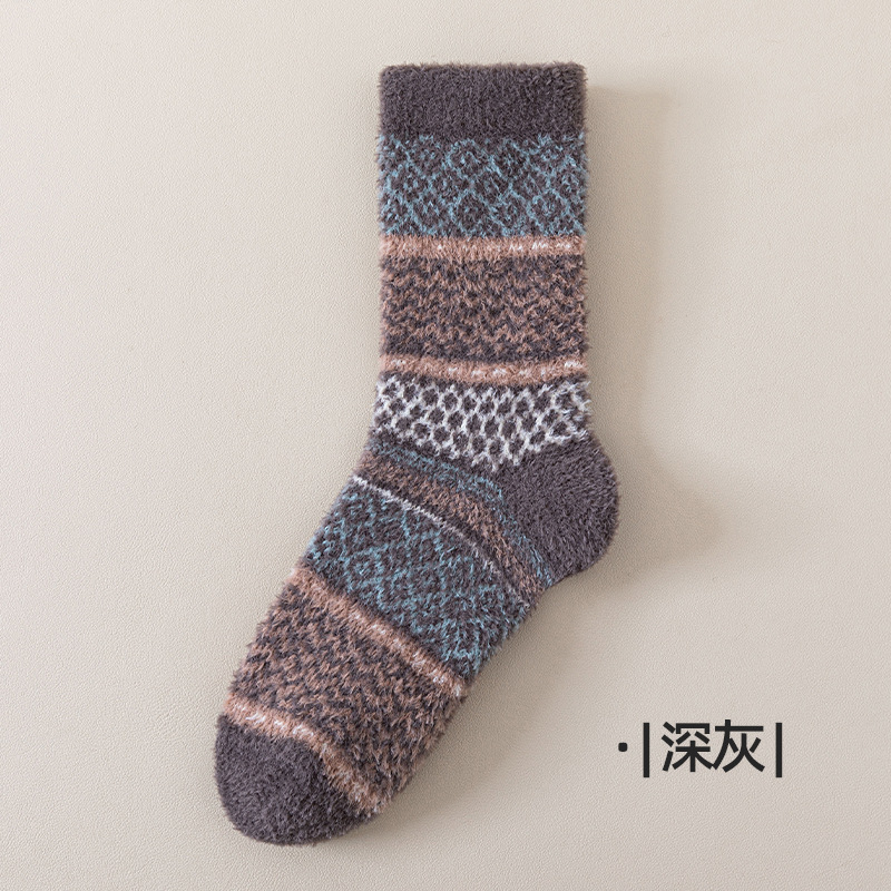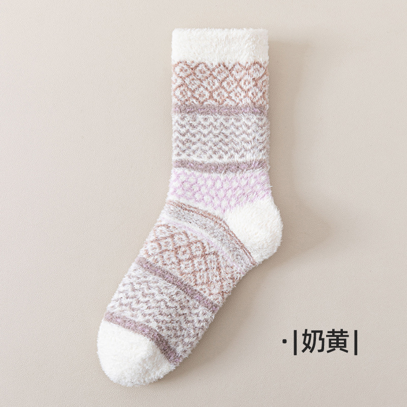 圣诞珊瑚绒袜子地板袜男女半边绒睡眠袜冬季柔软加厚保暖中筒袜