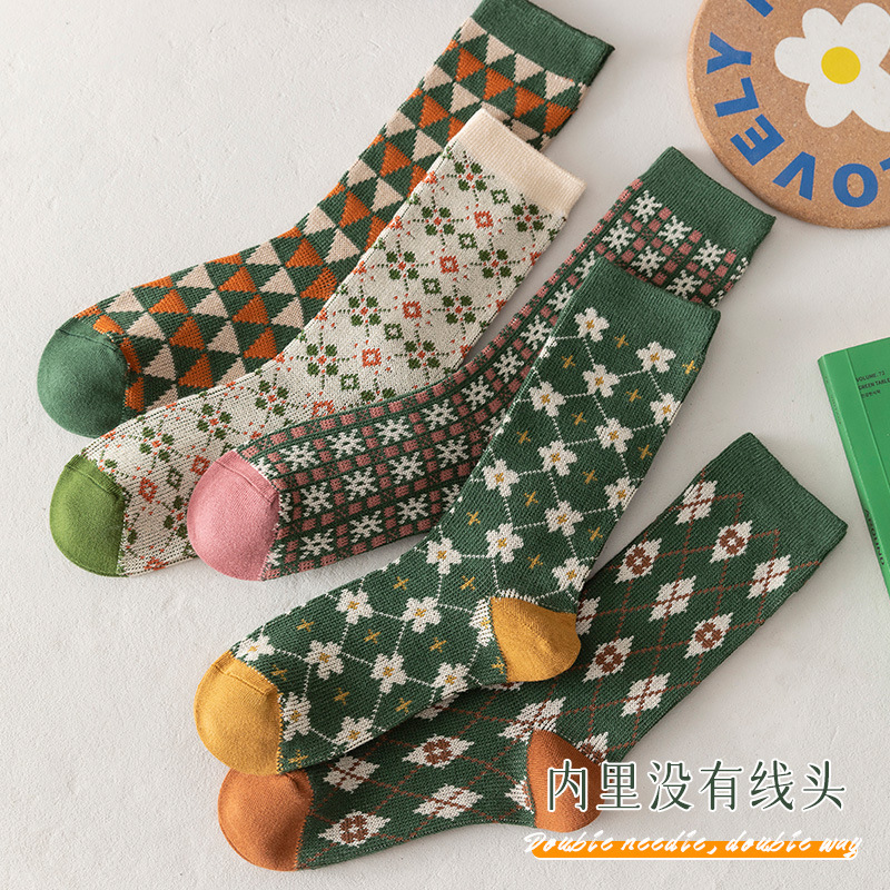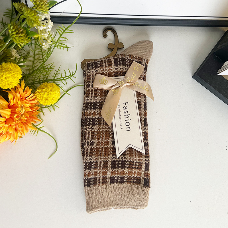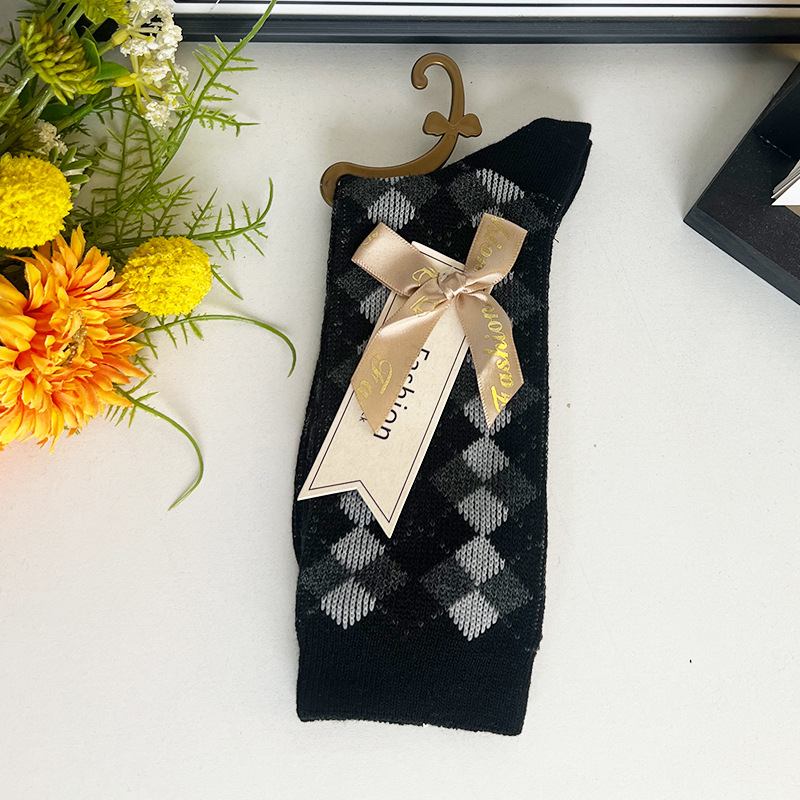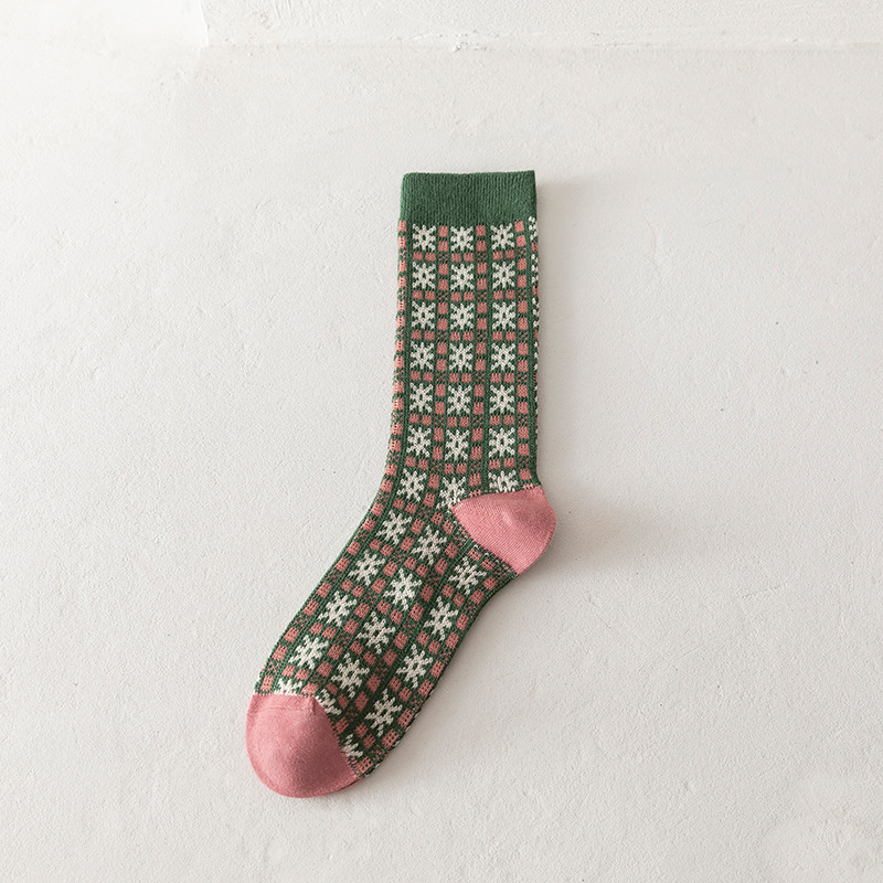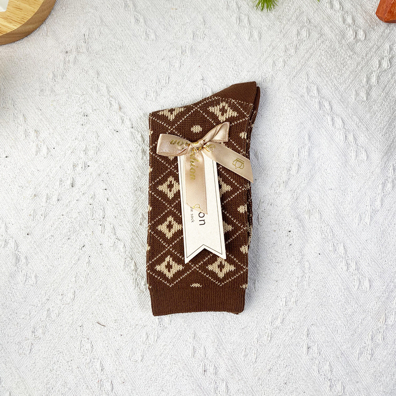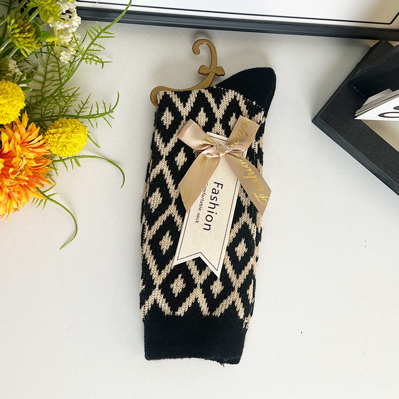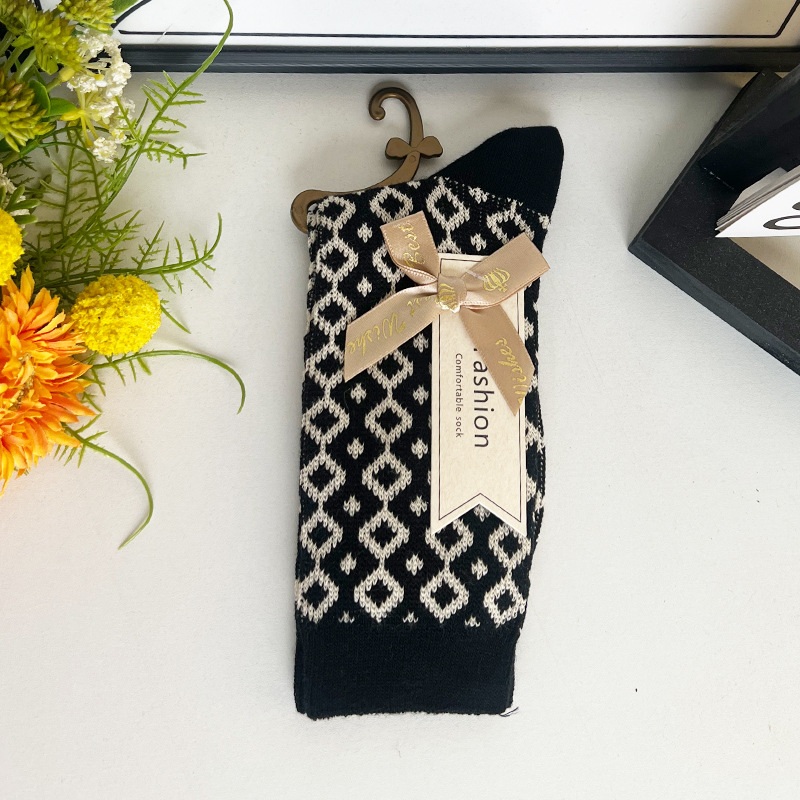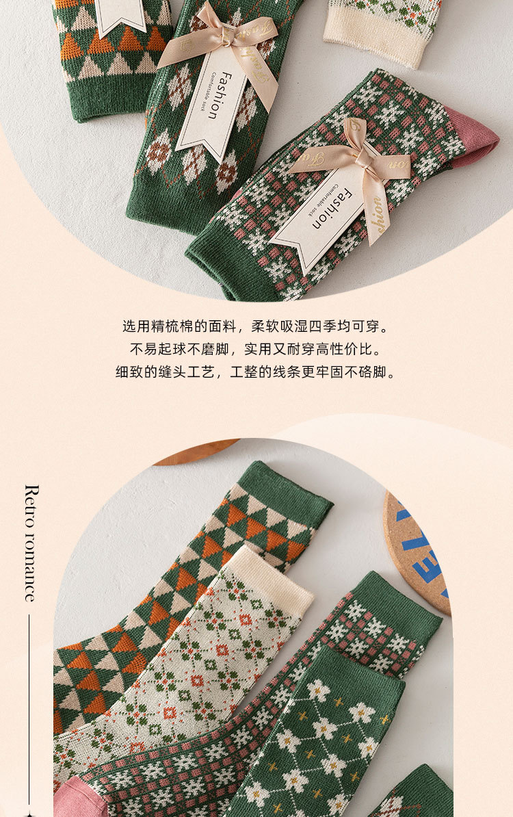 圣诞袜子女中筒袜秋冬季双针双路圣诞礼物无线头冬天高筒长袜