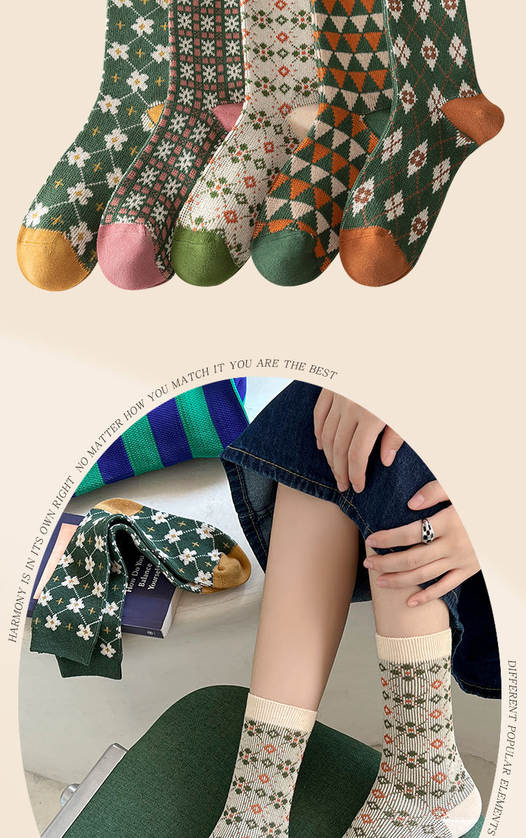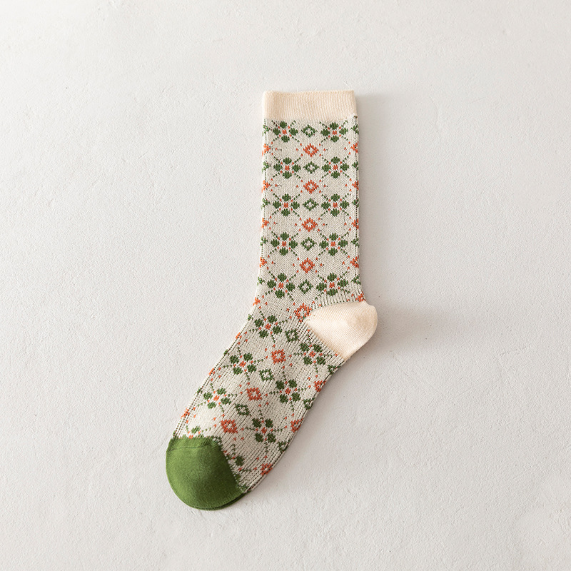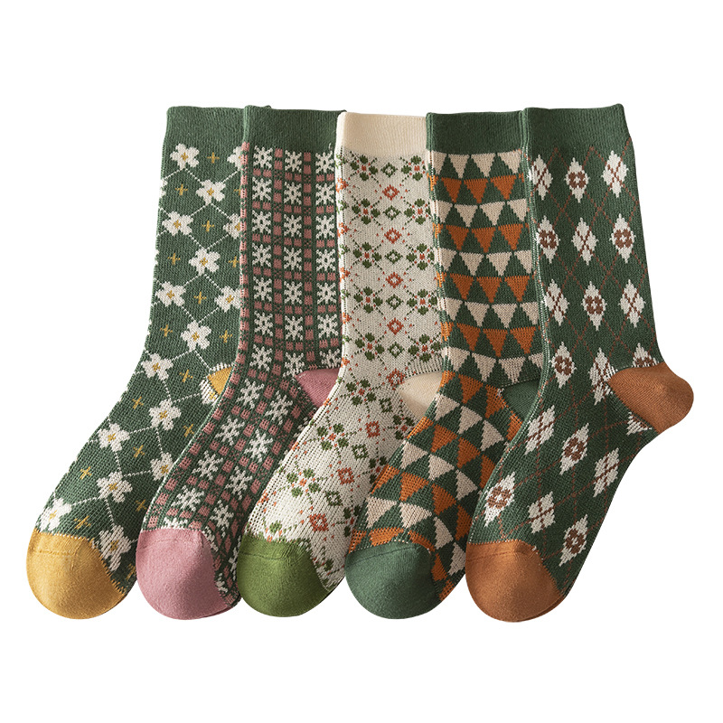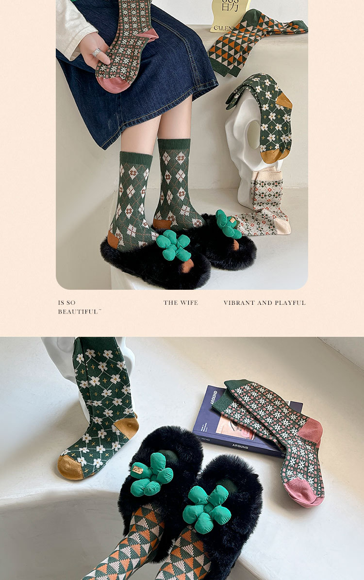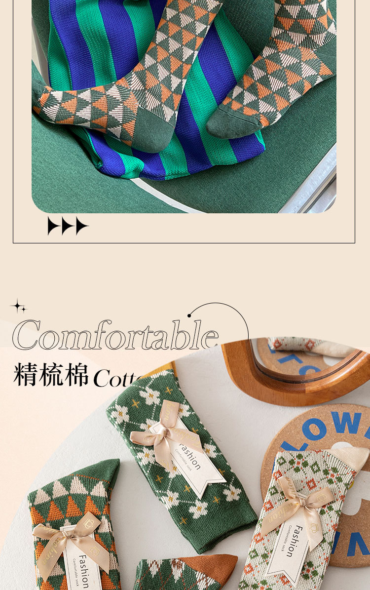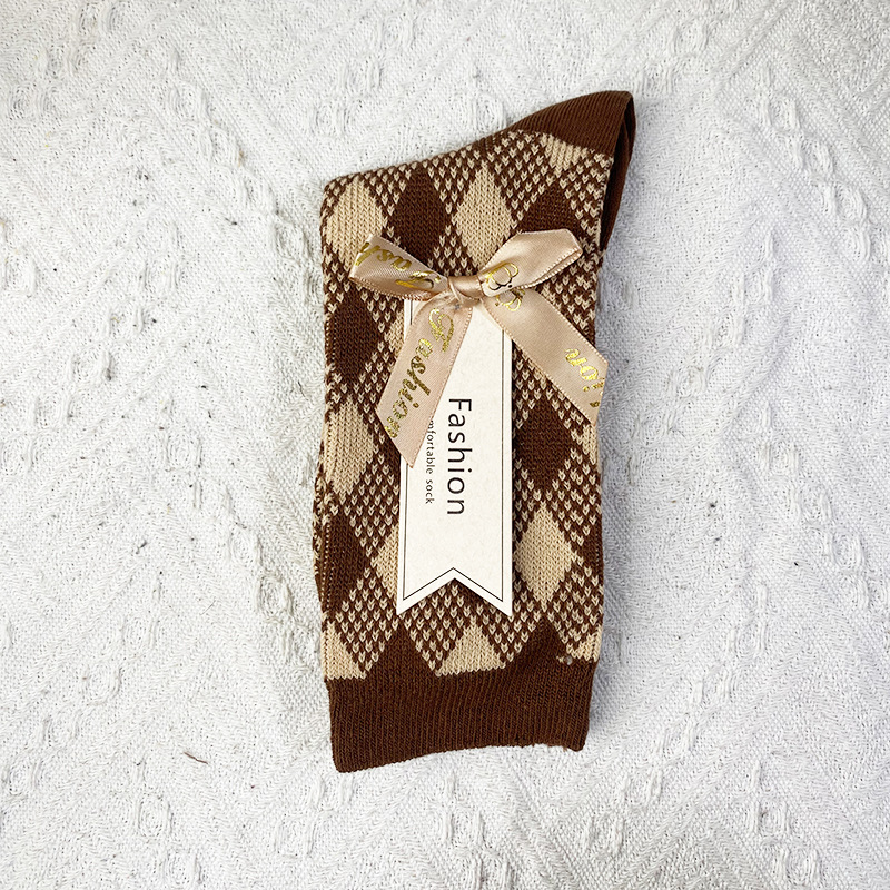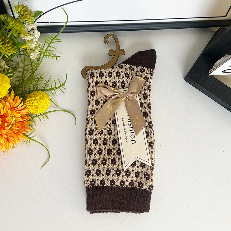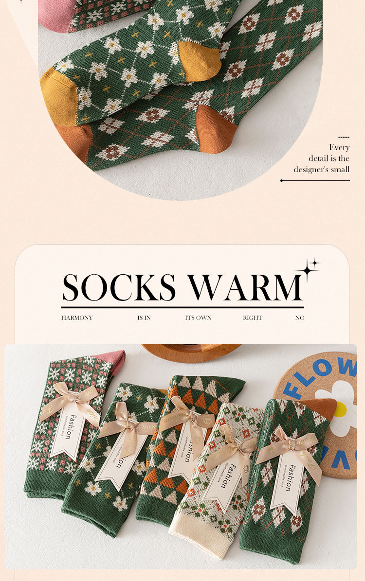 圣诞袜子女中筒袜秋冬季双针双路圣诞礼物无线头冬天高筒长袜