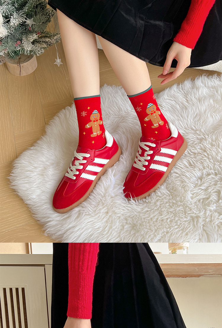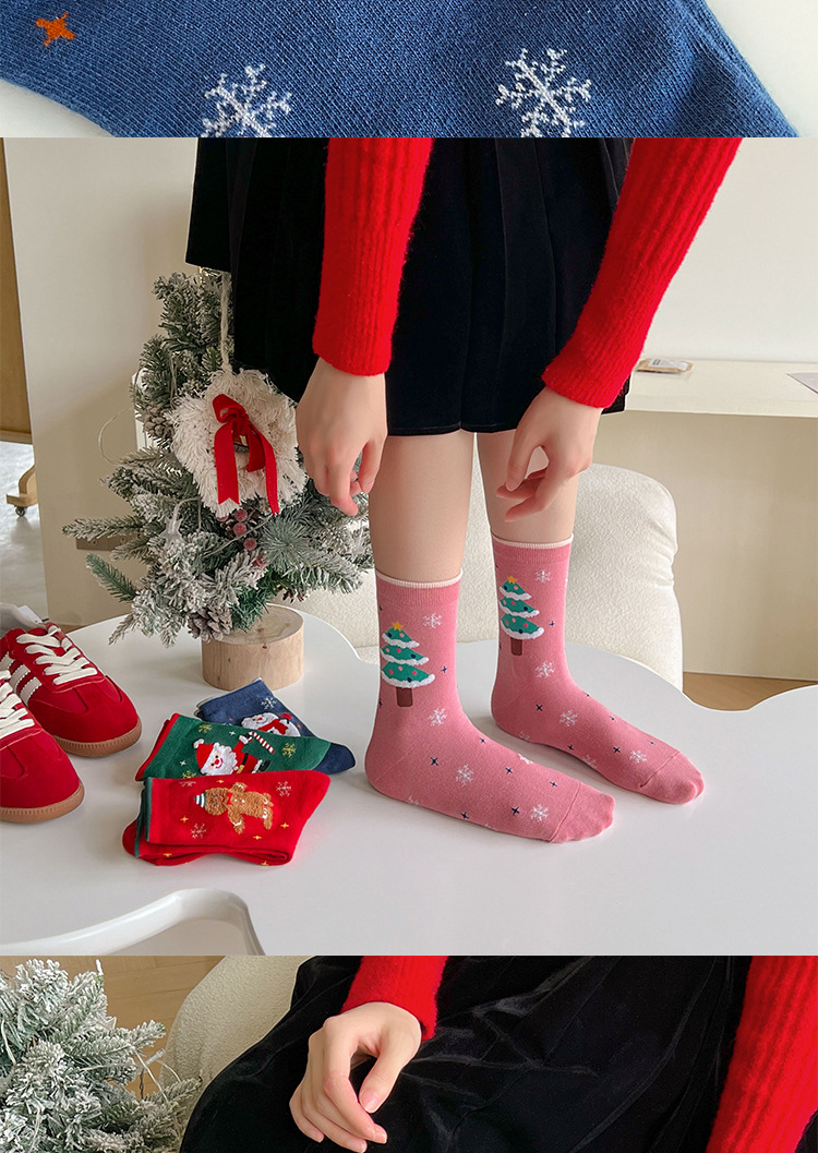 圣诞袜子女中筒袜秋冬季双针双路圣诞礼物无线头冬天高筒长袜
