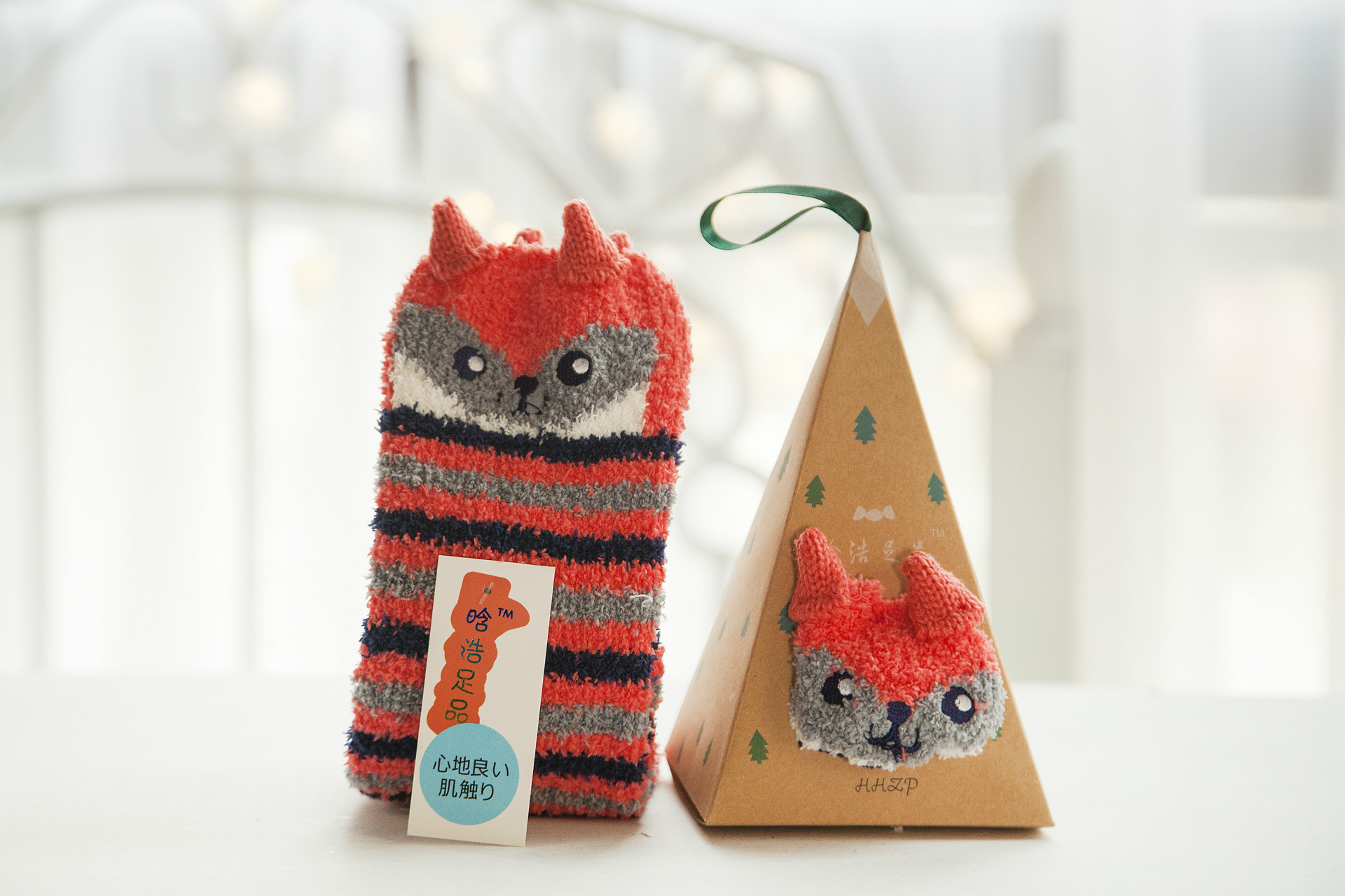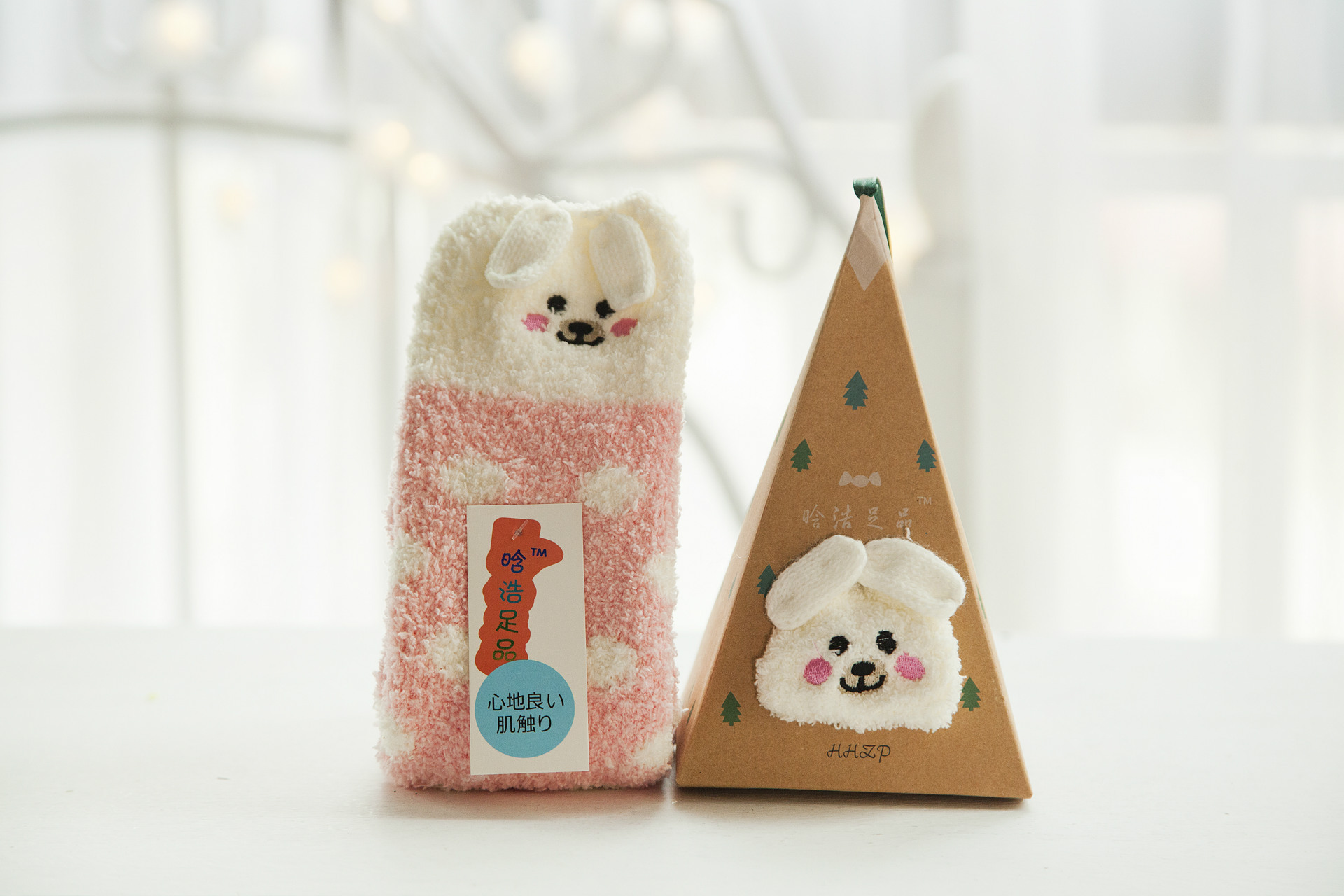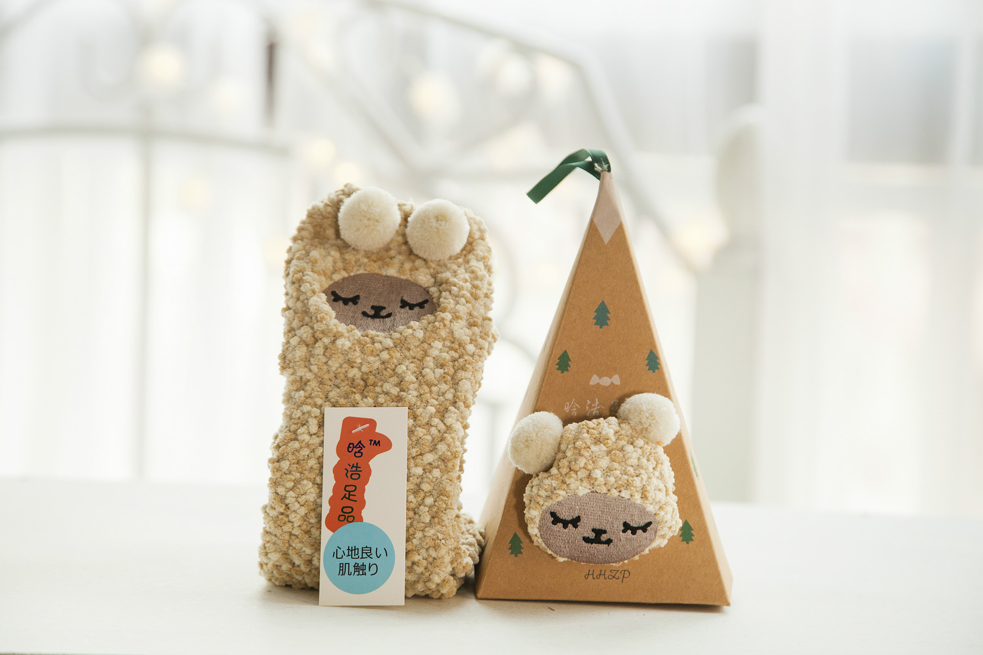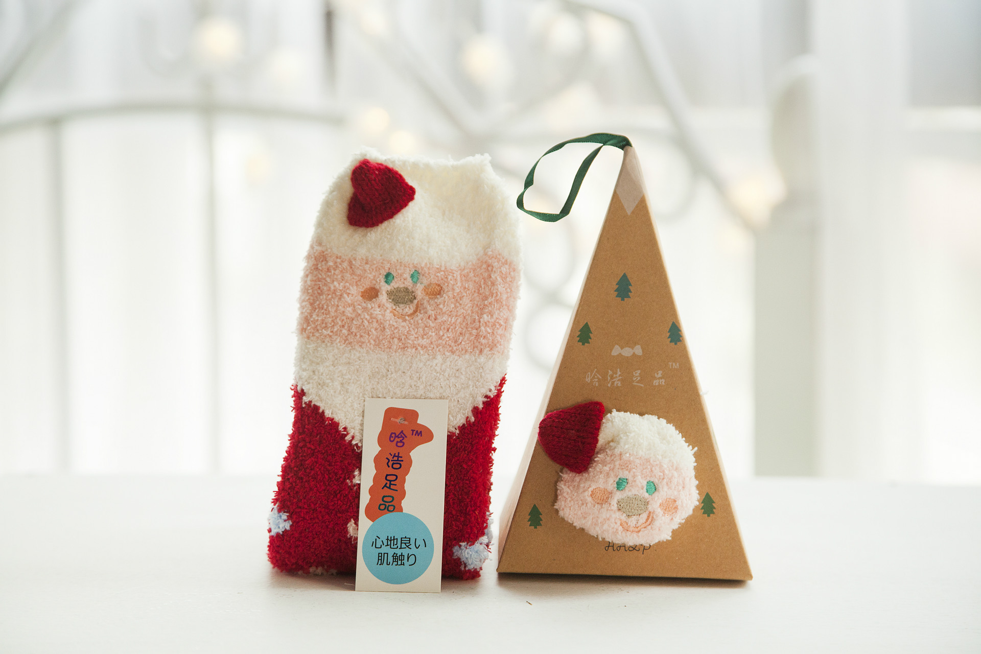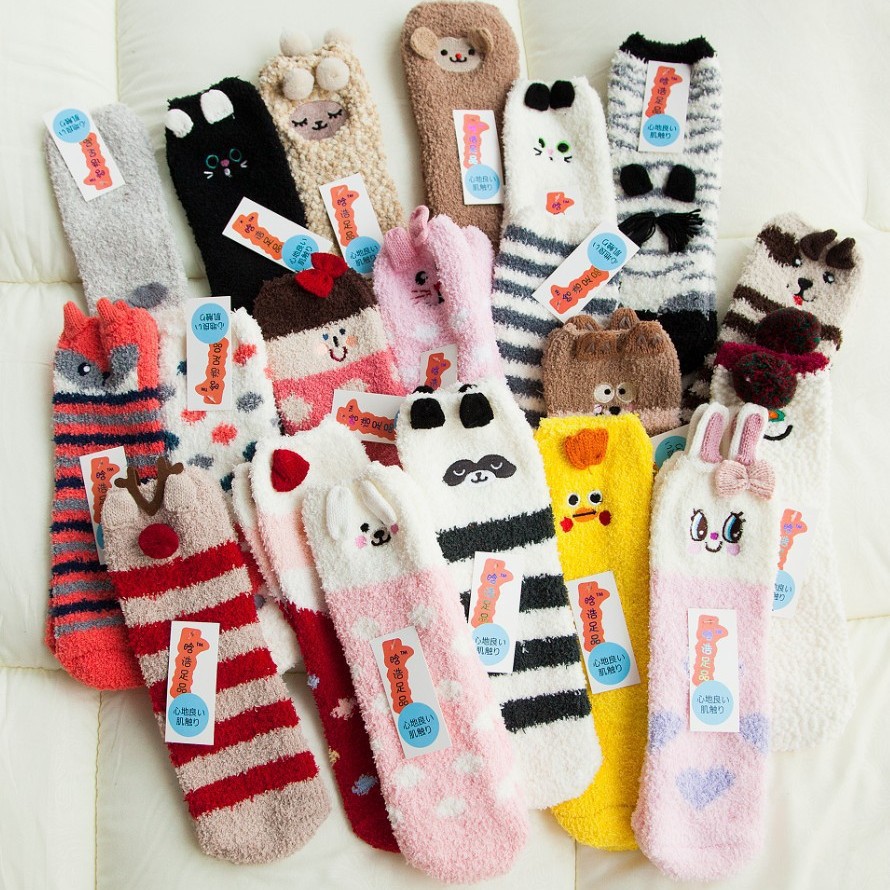 日系圣诞地摊袜子刺绣立体家居珊瑚绒卡通加厚毛巾地板半边绒女袜