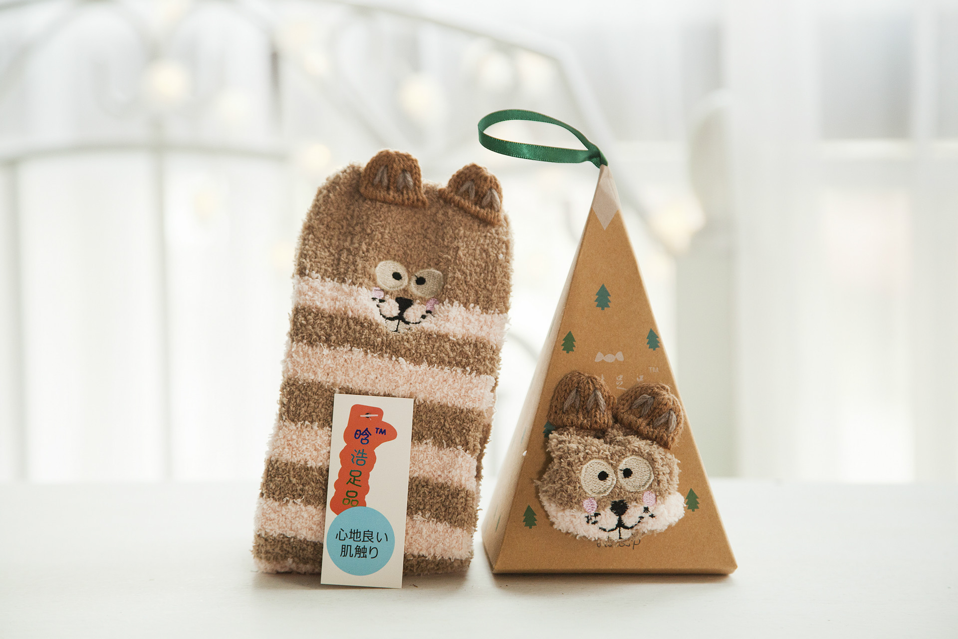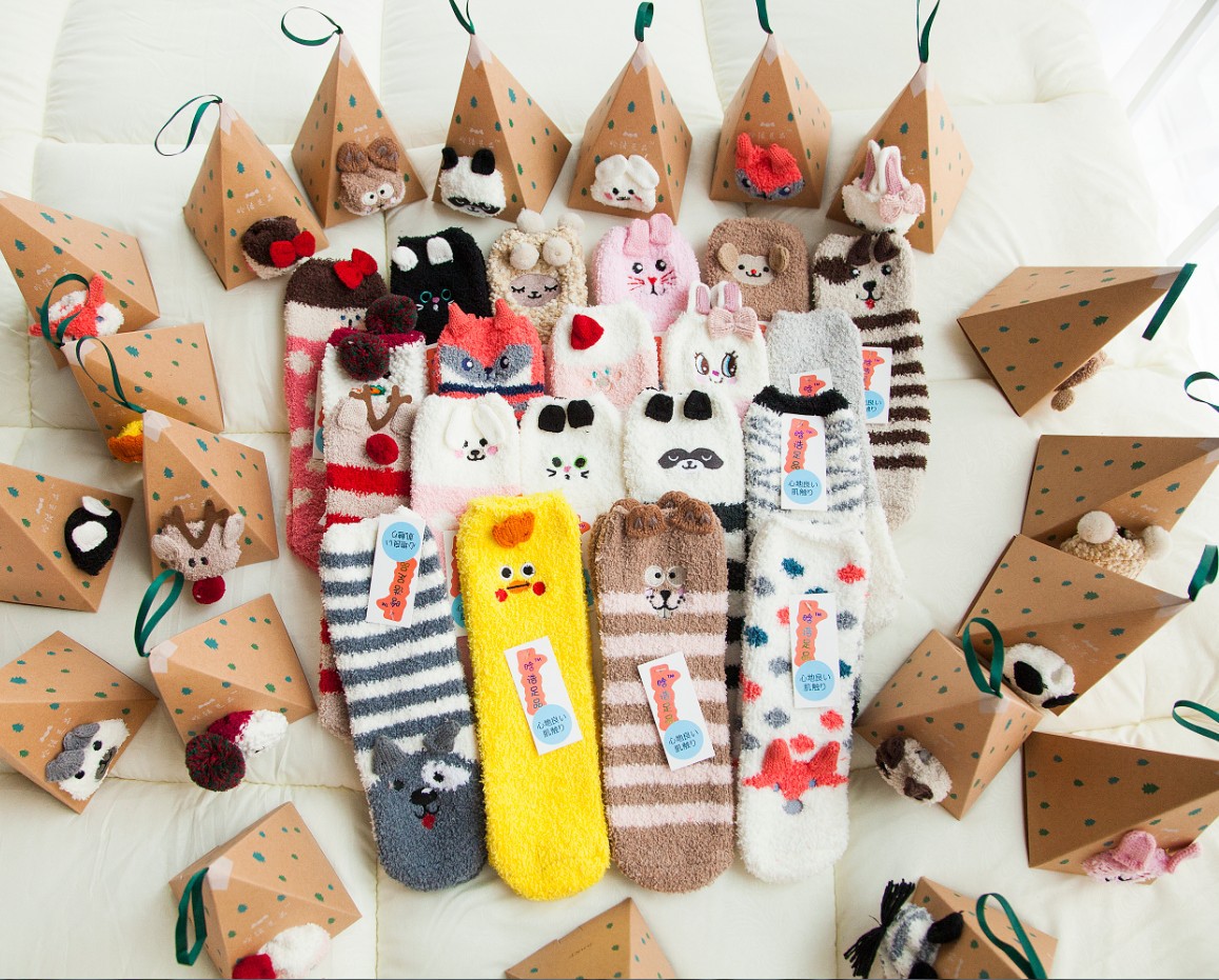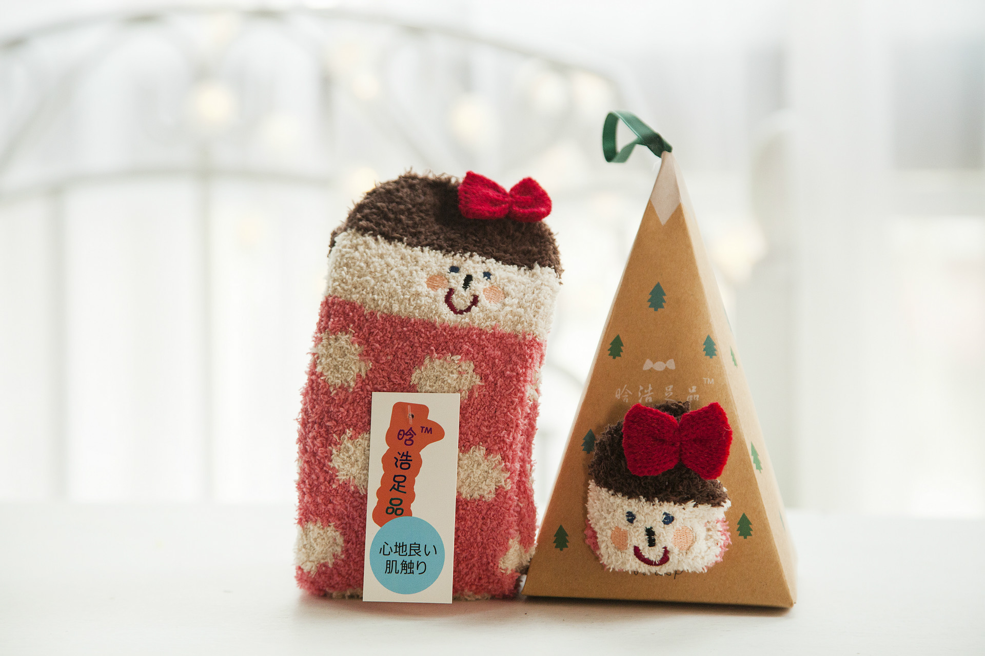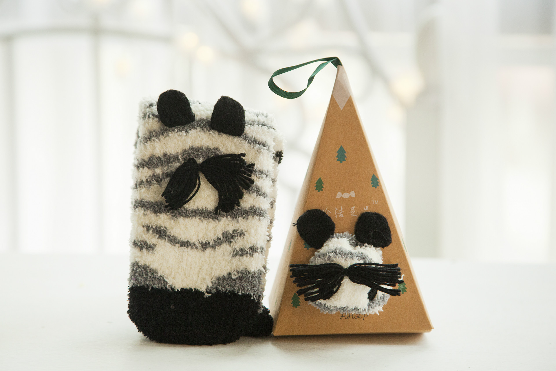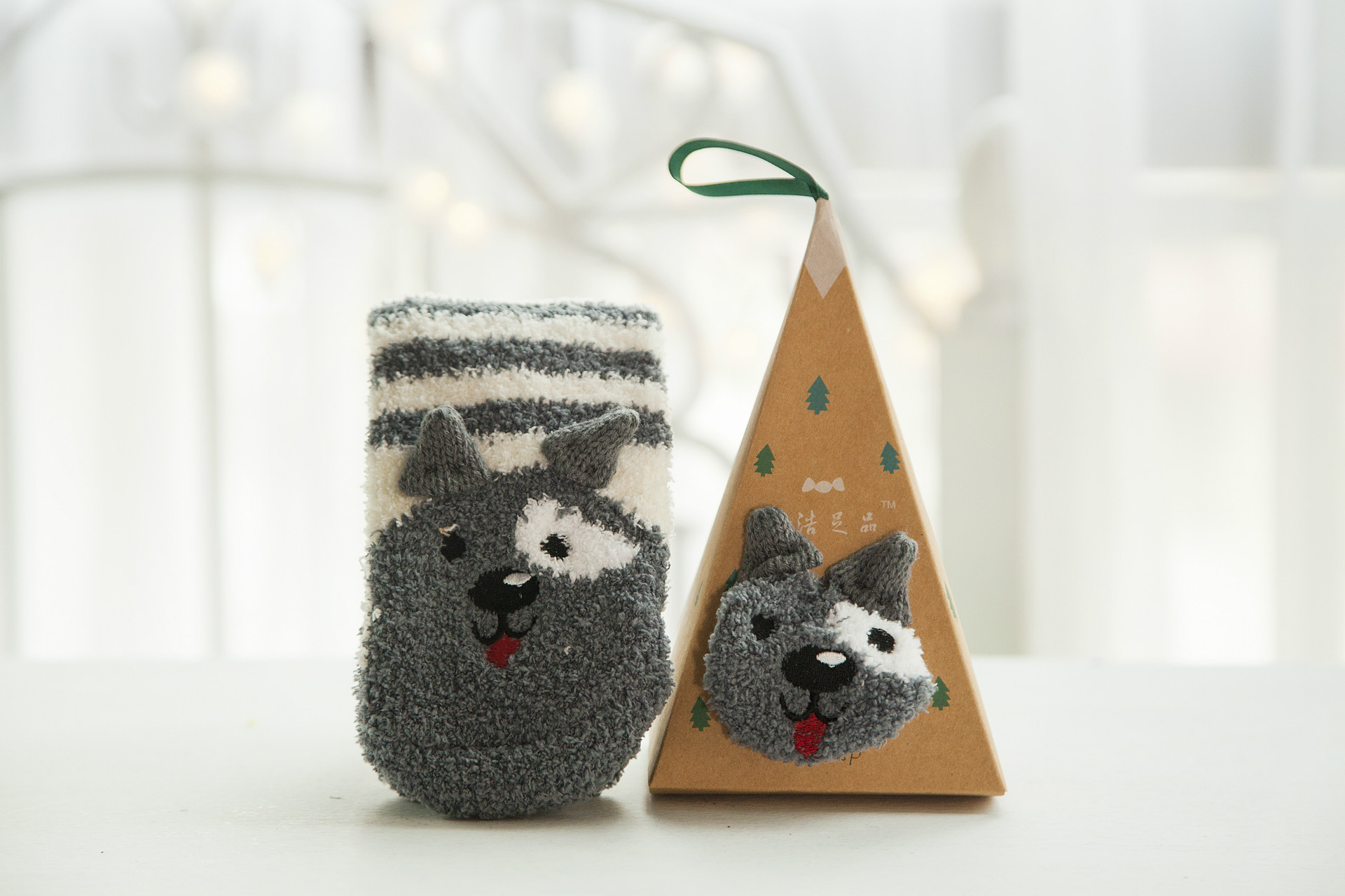 日系圣诞地摊袜子刺绣立体家居珊瑚绒卡通加厚毛巾地板半边绒女袜