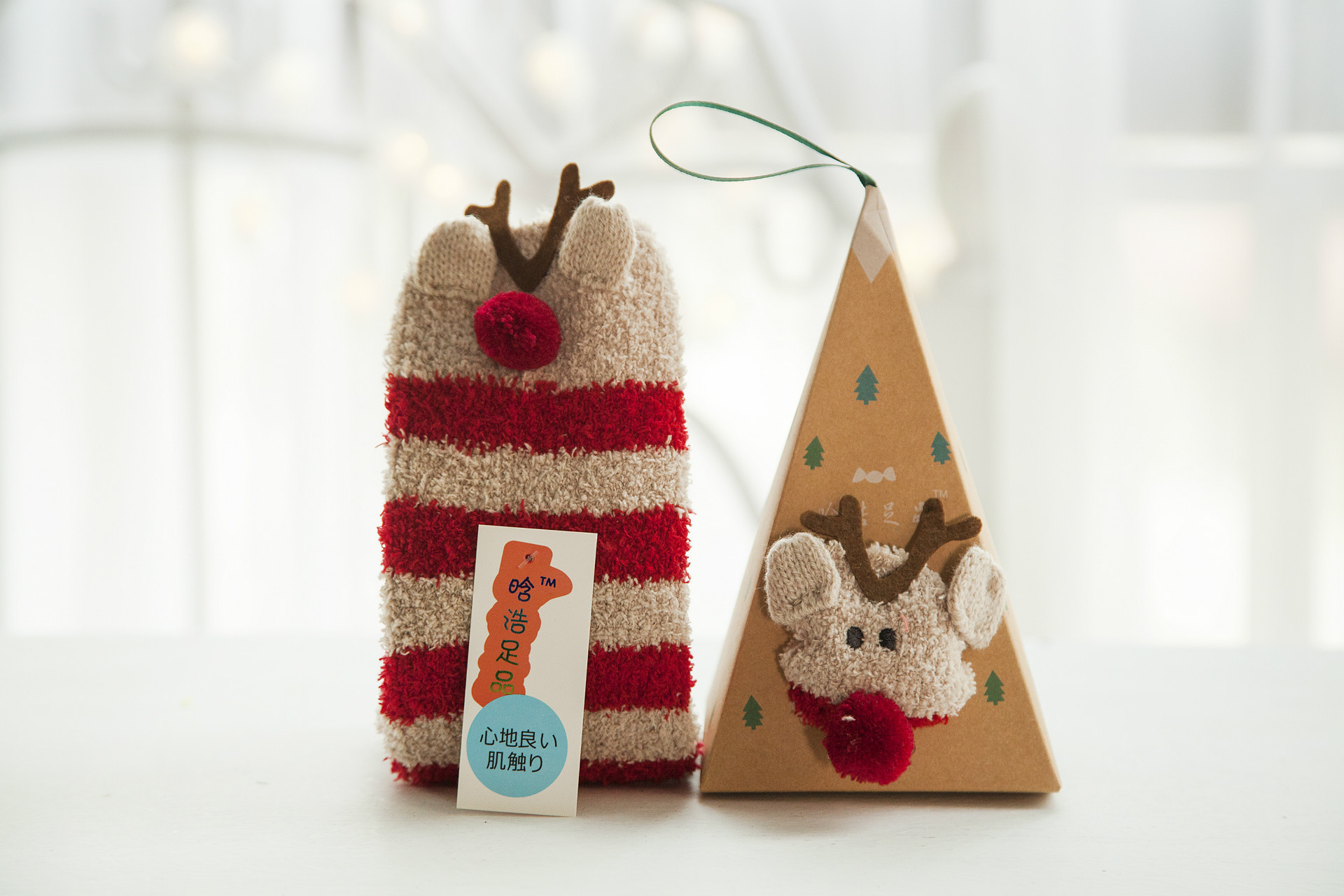 秋冬圣诞袜珊瑚绒中筒袜秋冬加绒加厚女中筒袜可爱麋鹿雪人礼物袜