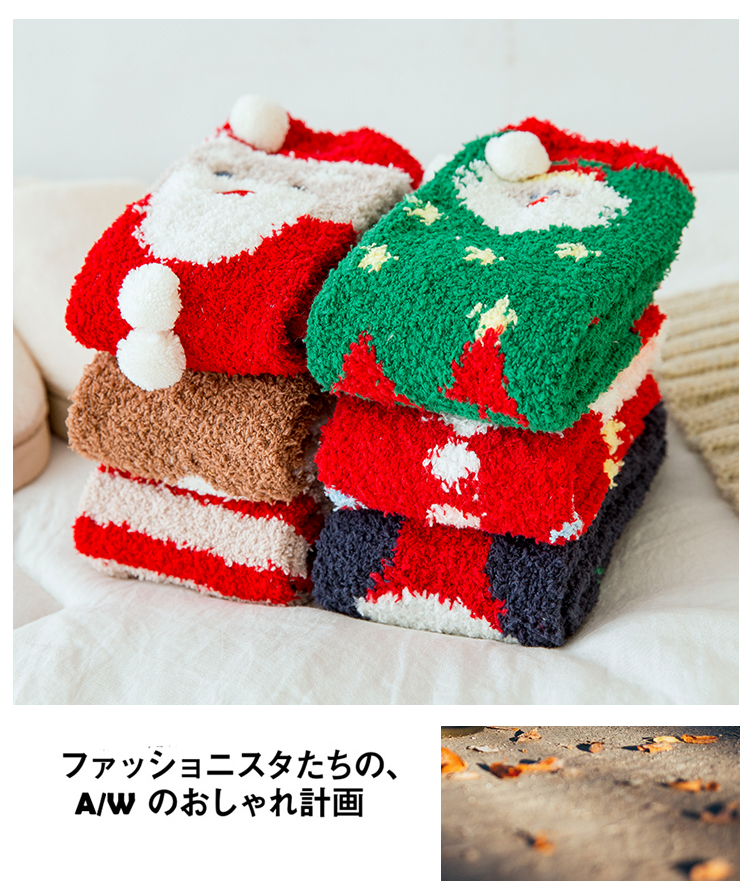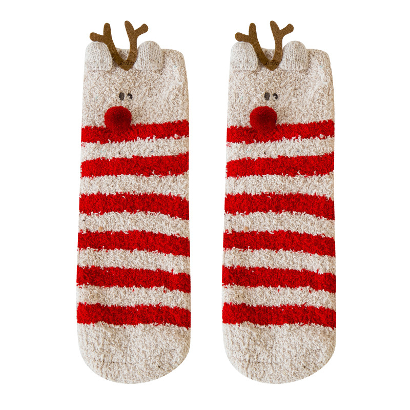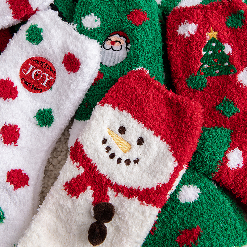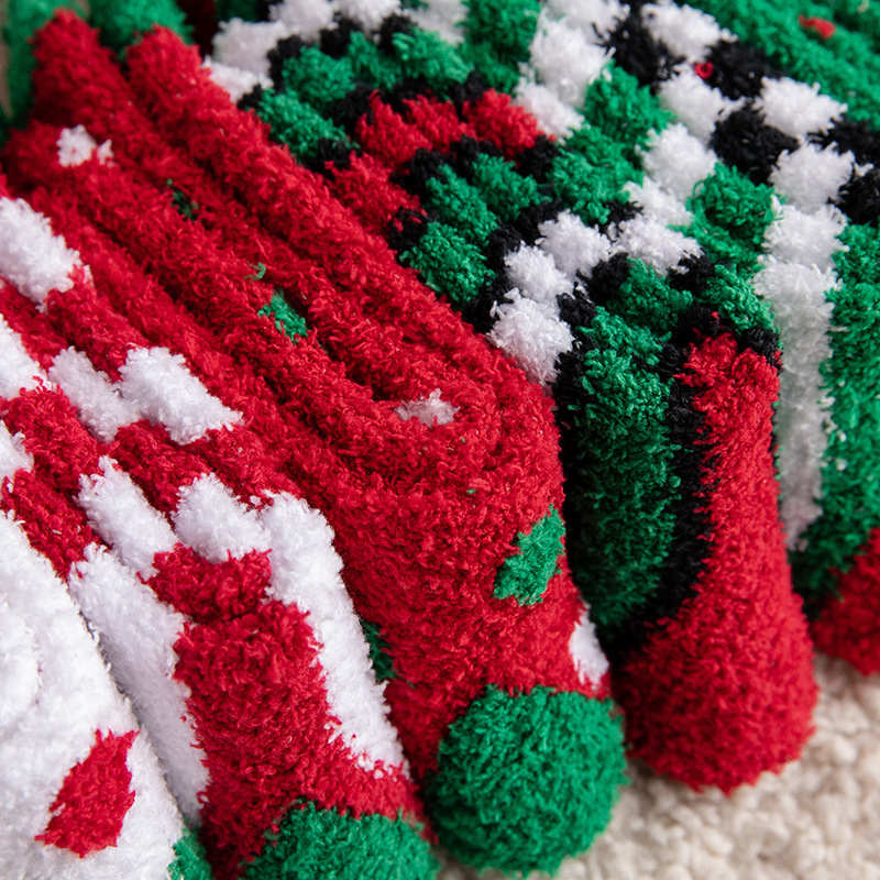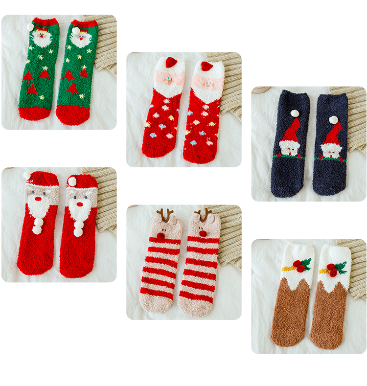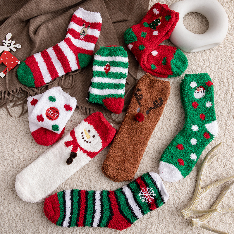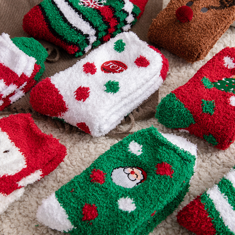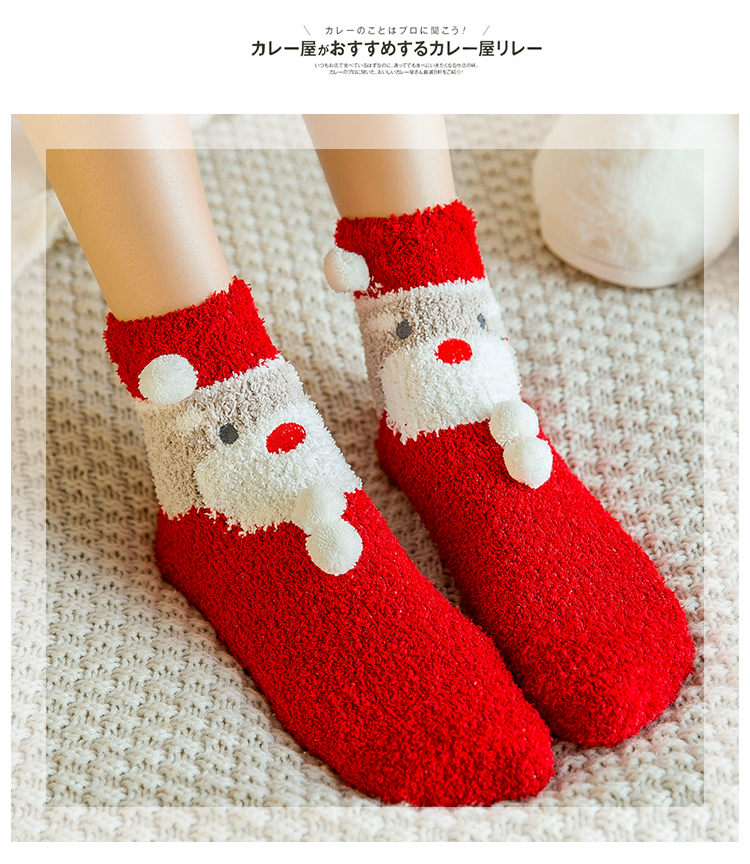 圣诞袜子女秋冬季中筒袜棉质加绒加厚睡眠袜珊瑚绒保暖可爱绒短袜