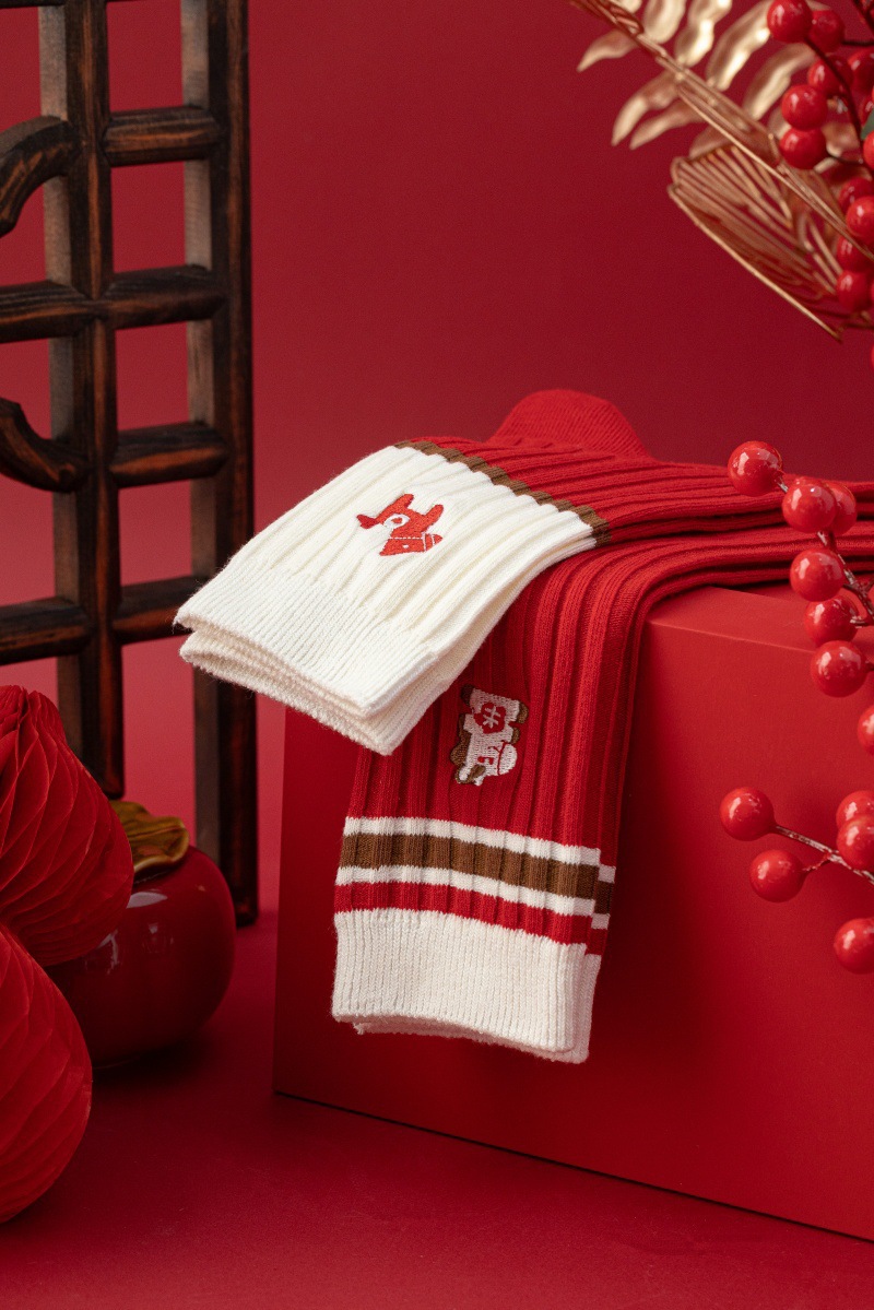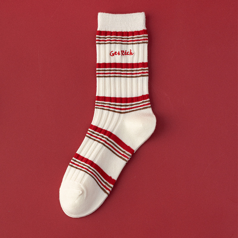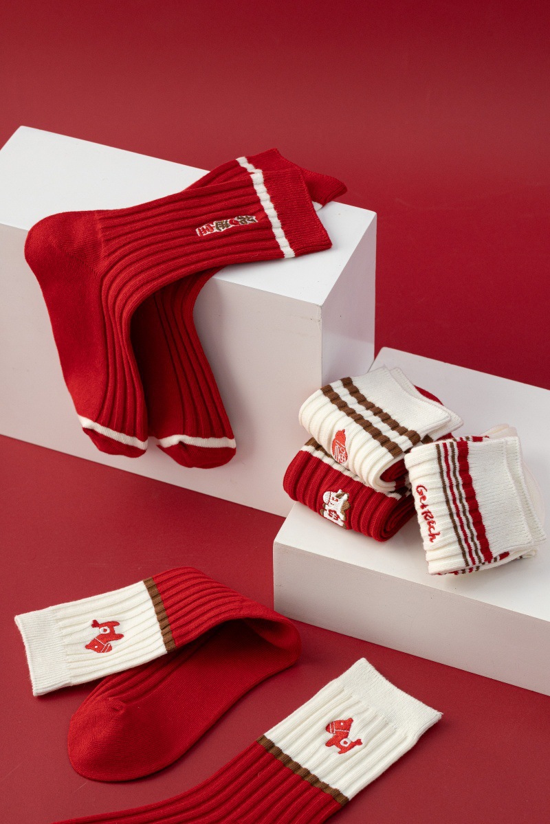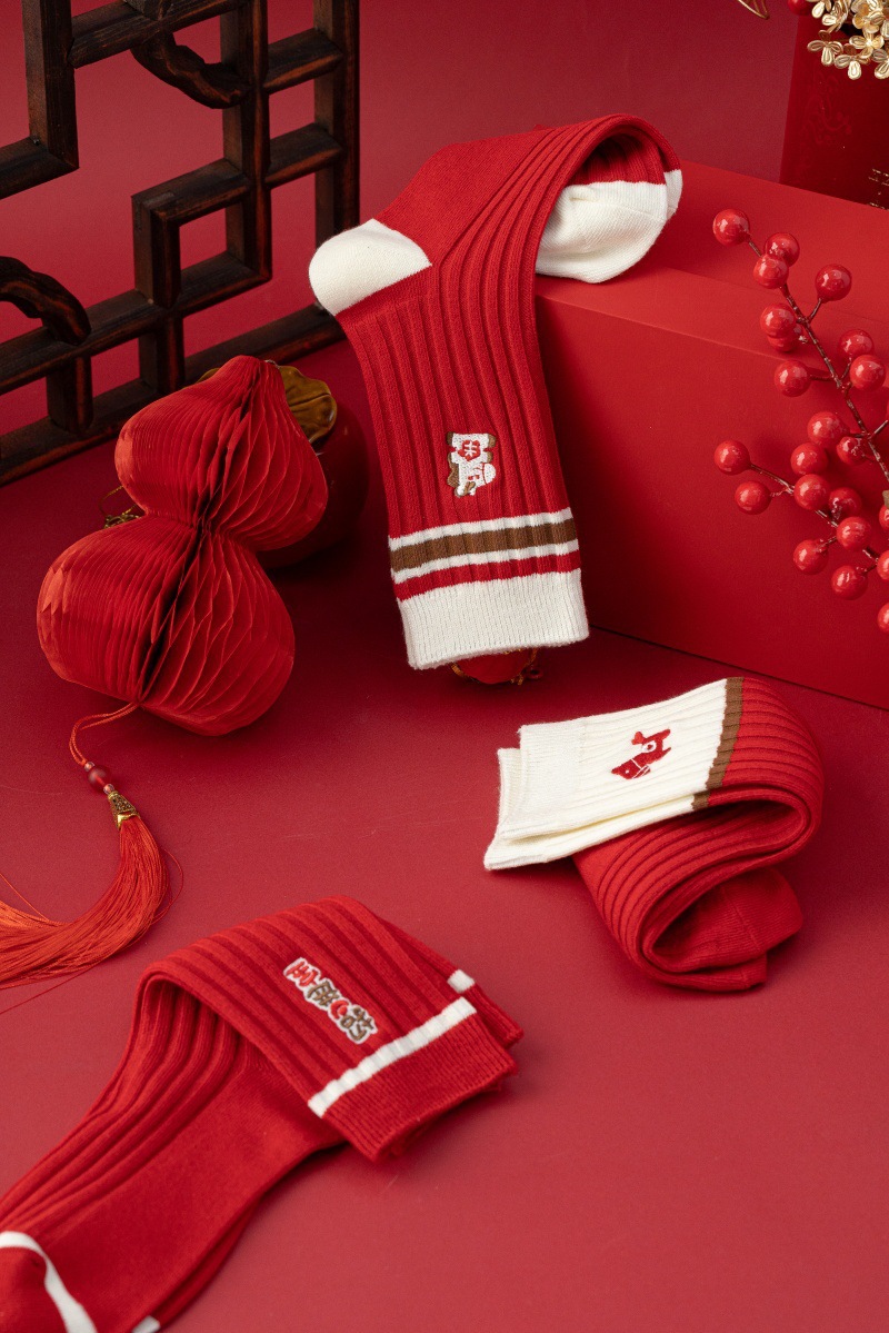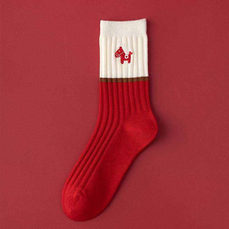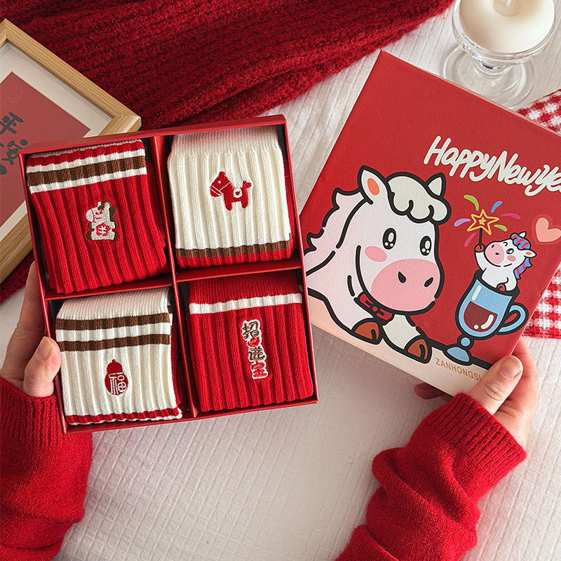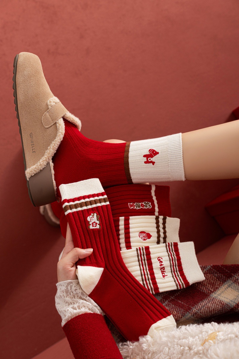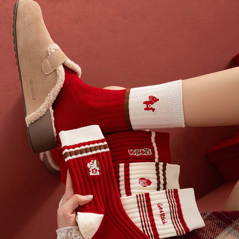 新年圣诞袜子女秋冬季礼盒刺绣袜子礼物情侣中筒袜子男结婚大红袜
