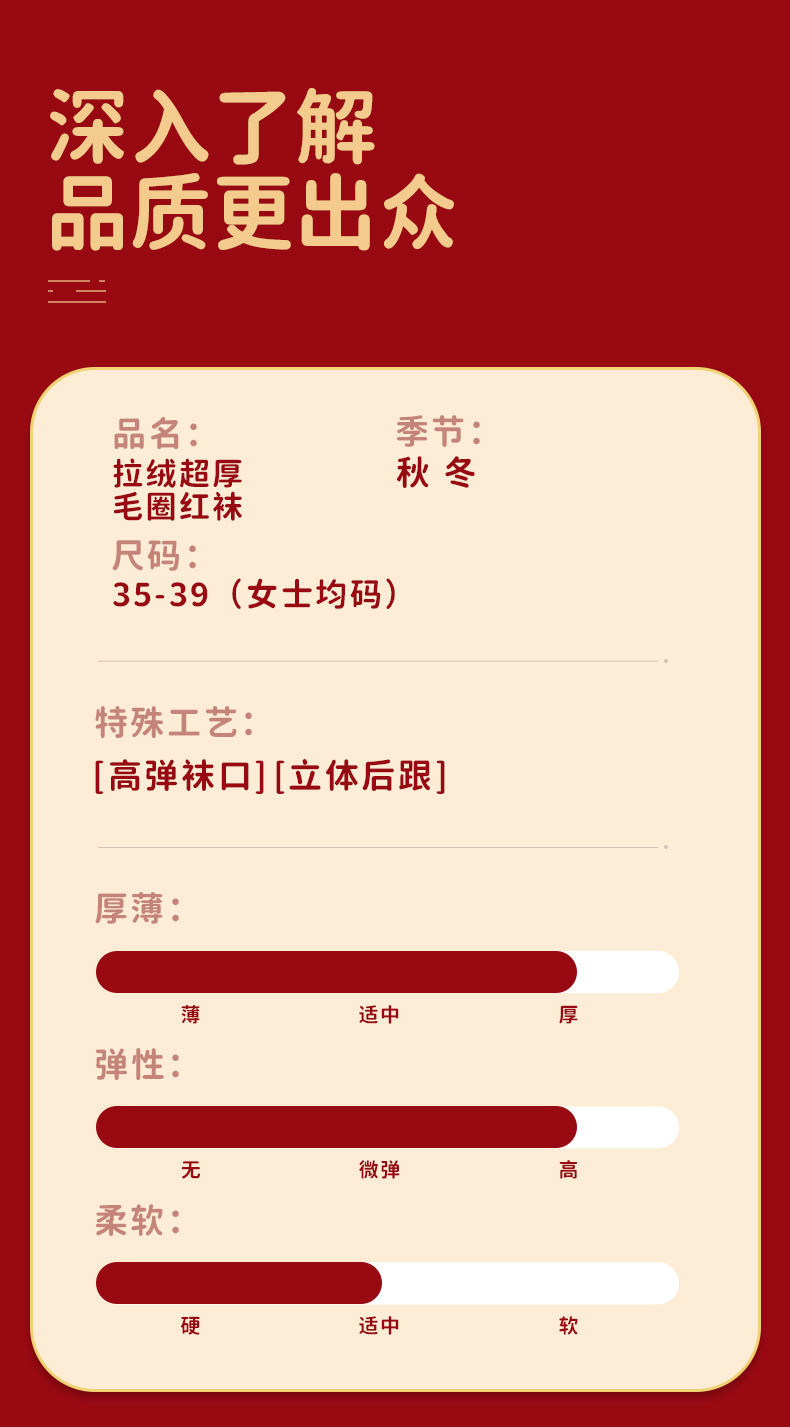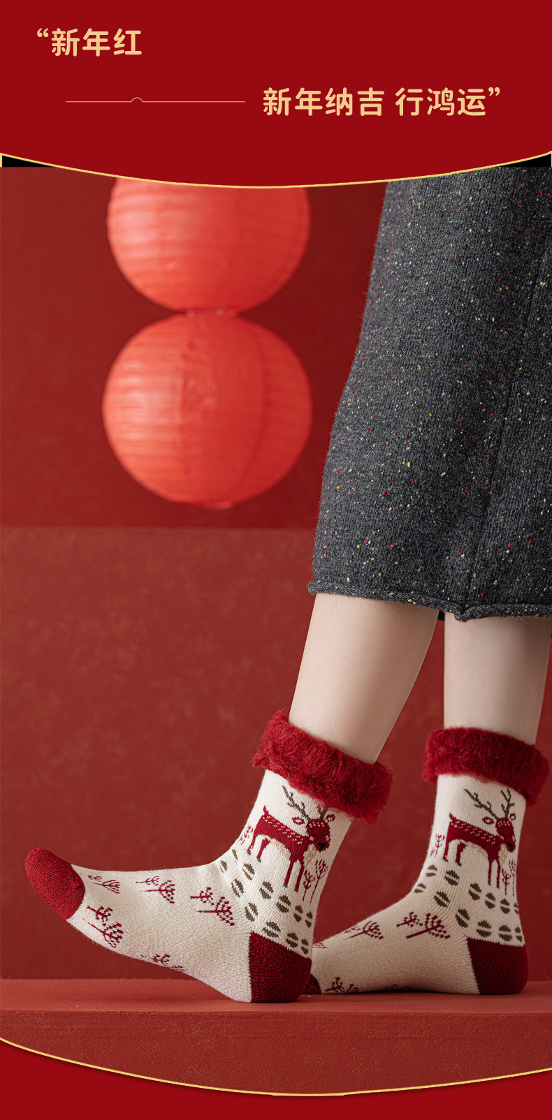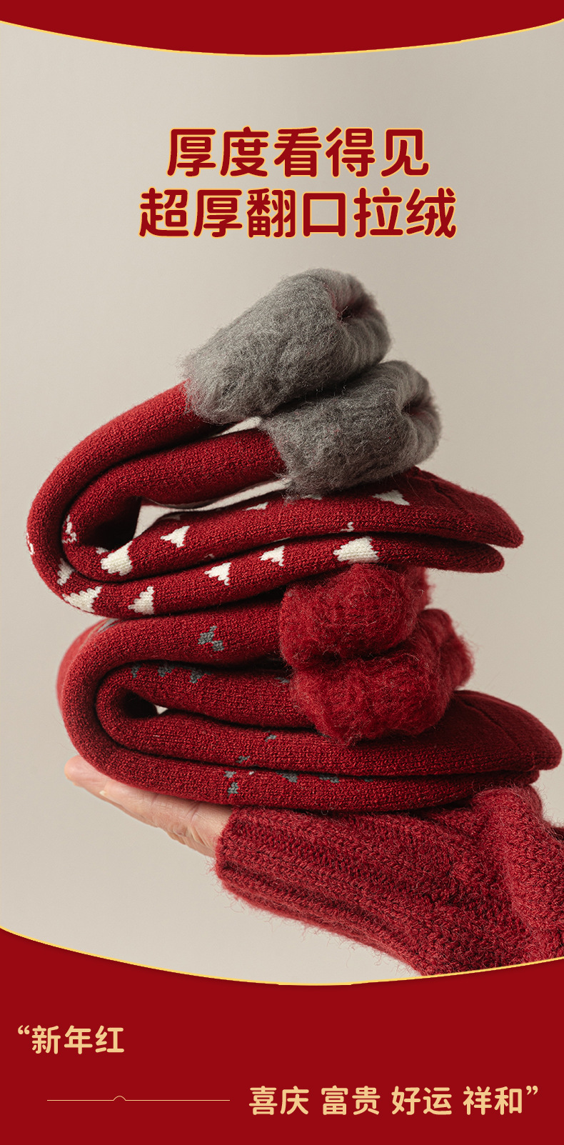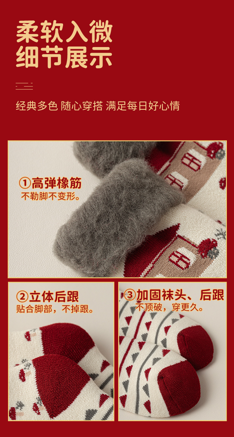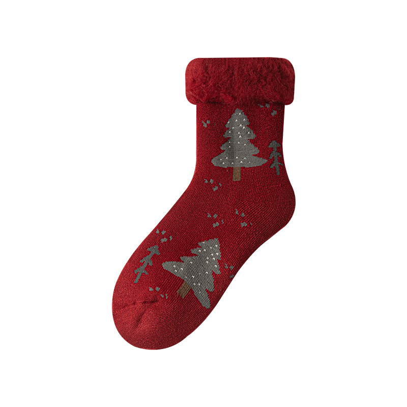 拉绒超厚毛圈大红袜冬季保暖新年袜圣诞中筒袜子女月子睡眠地板袜