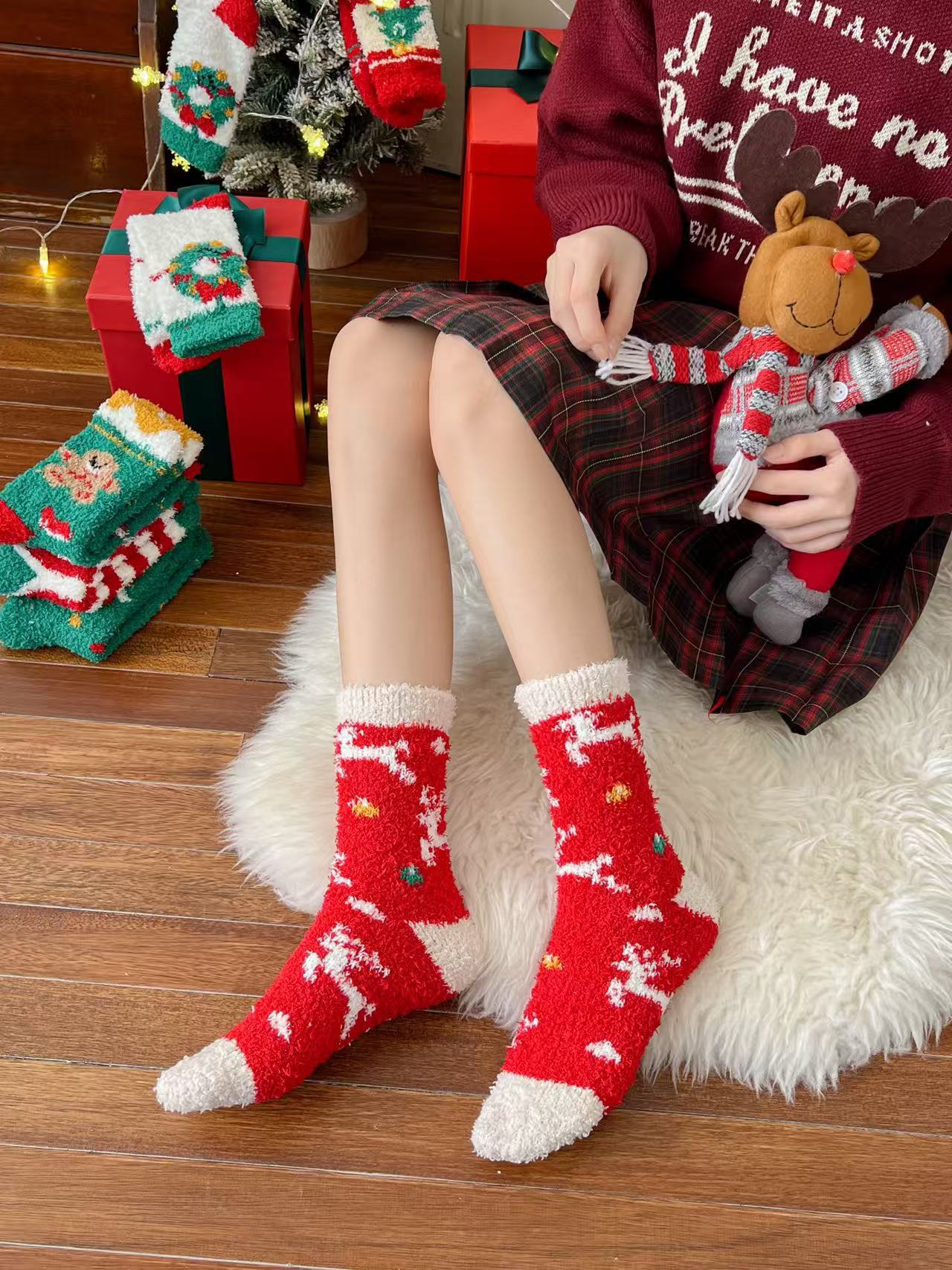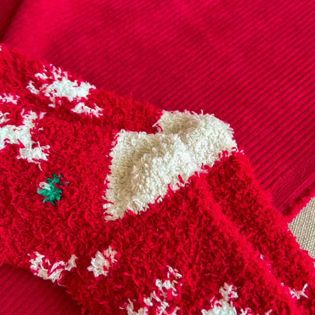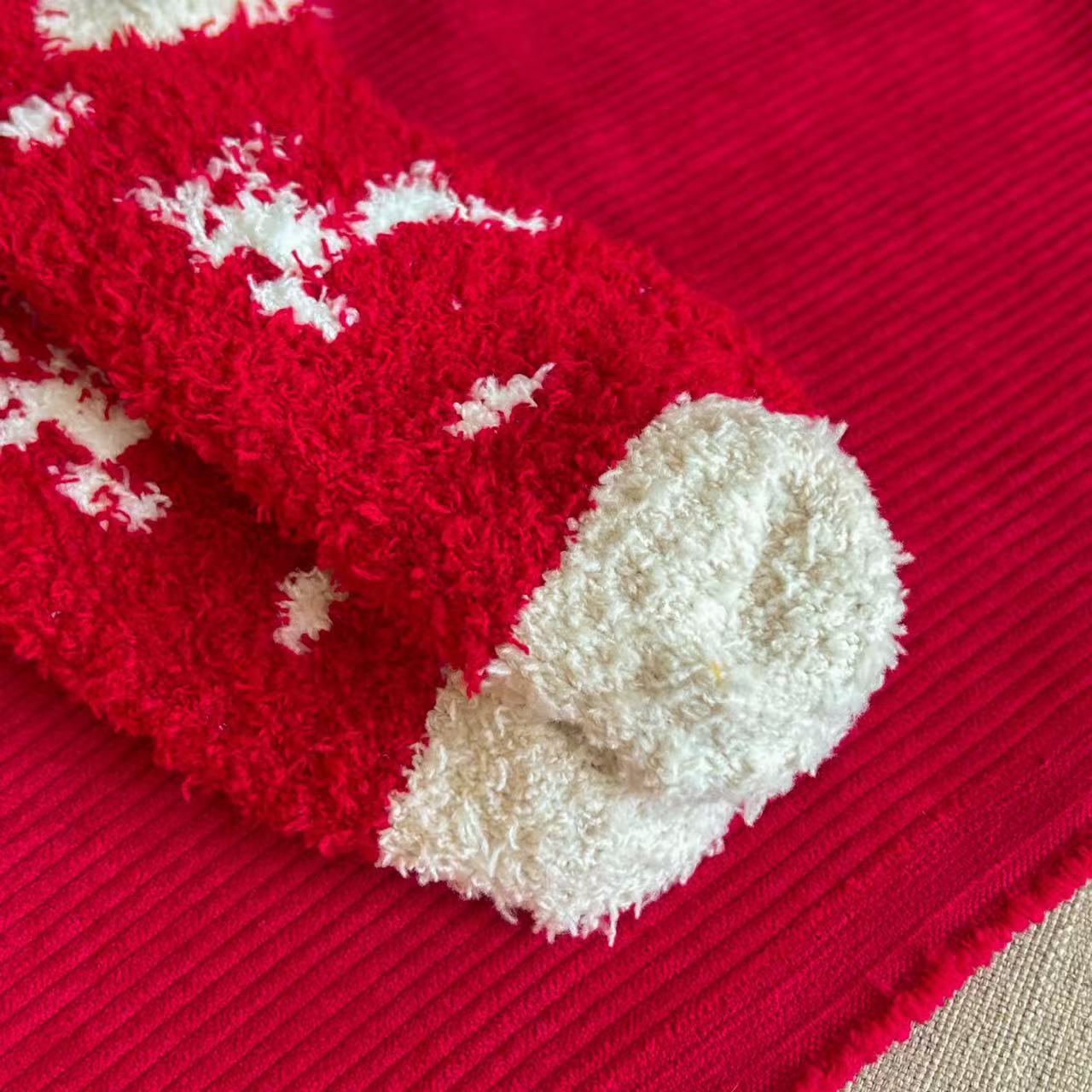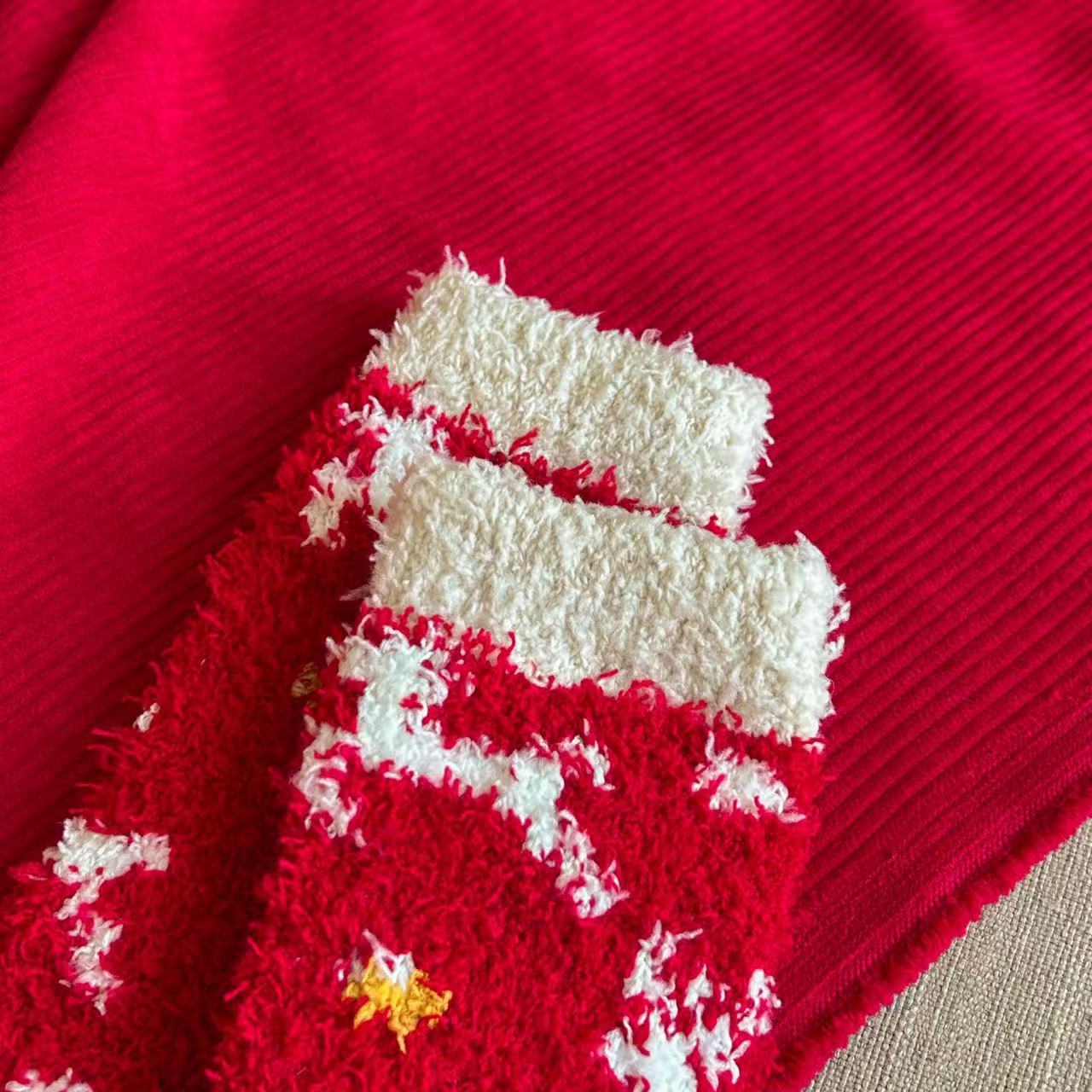 珊瑚绒圣诞袜子居家卡通可爱红色礼品长筒袜秋冬季潮