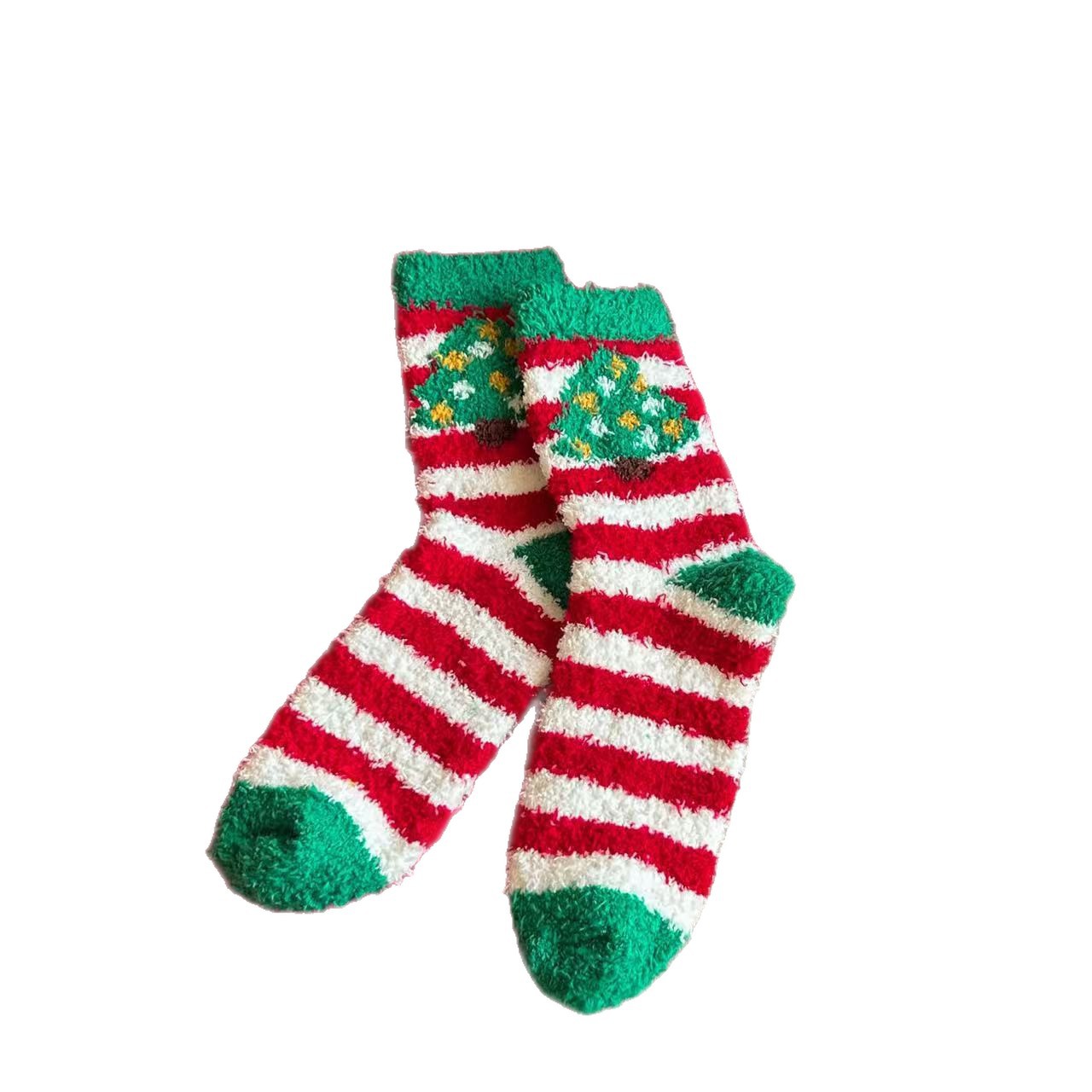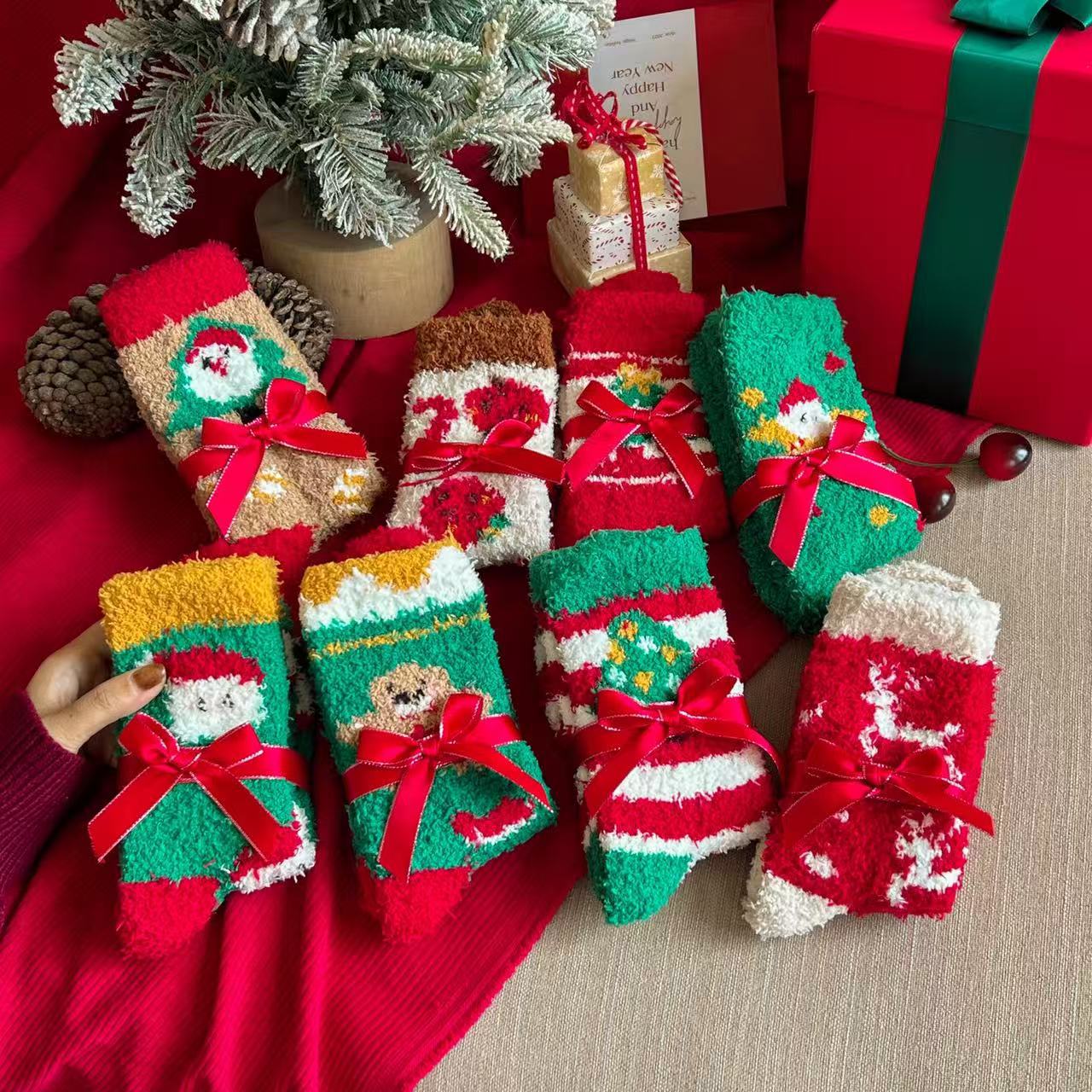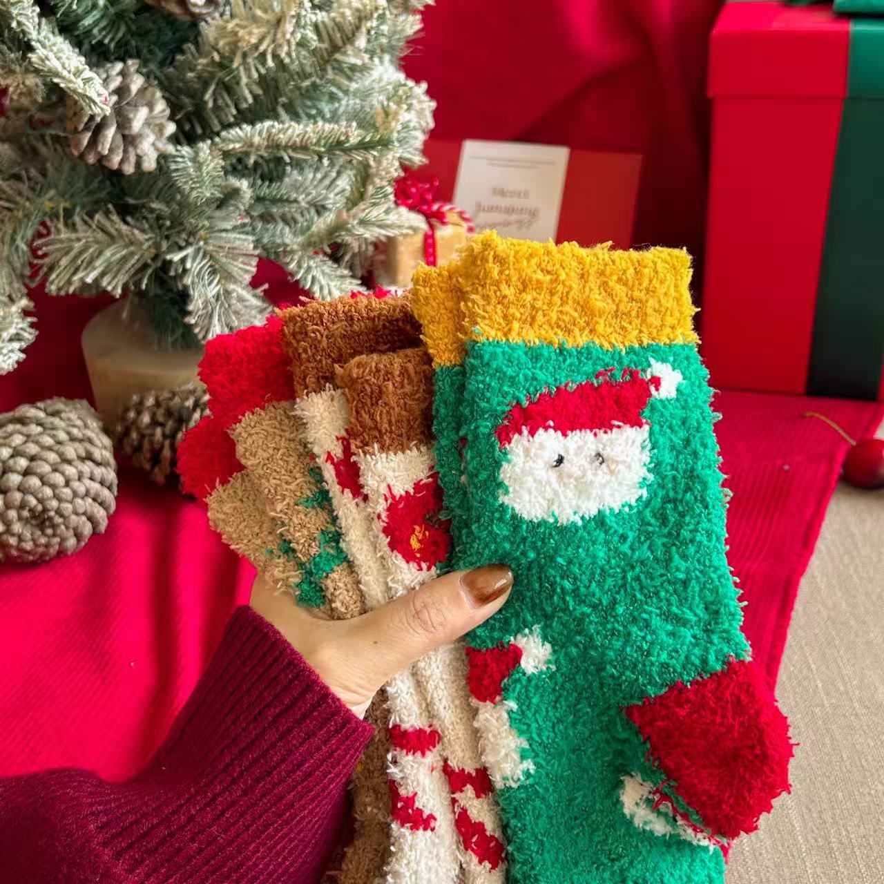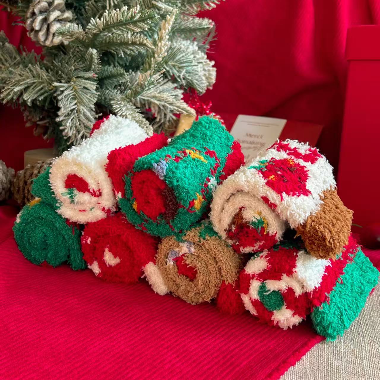 珊瑚绒圣诞袜子居家卡通可爱红色礼品长筒袜秋冬季潮
