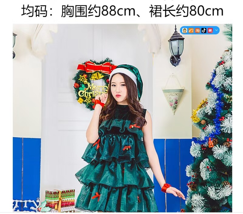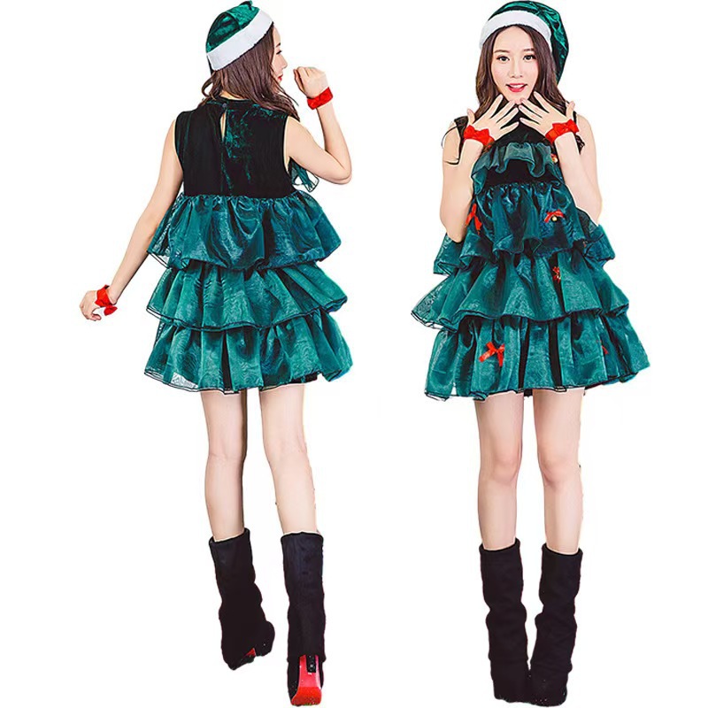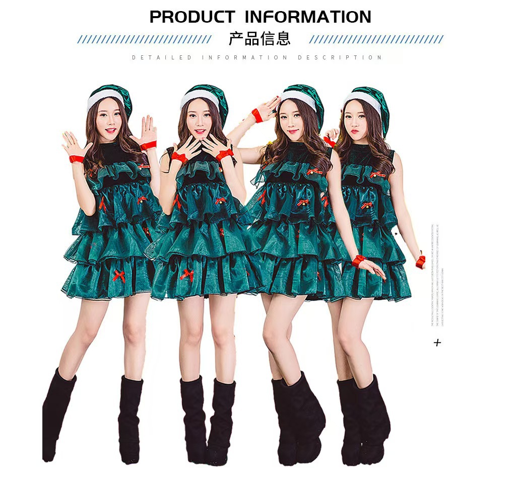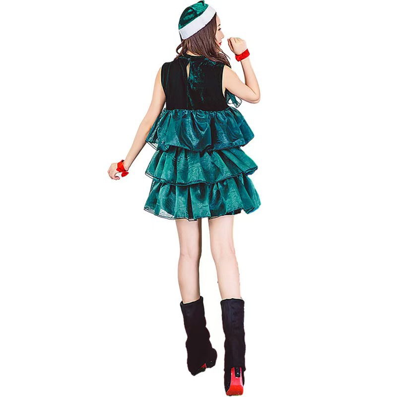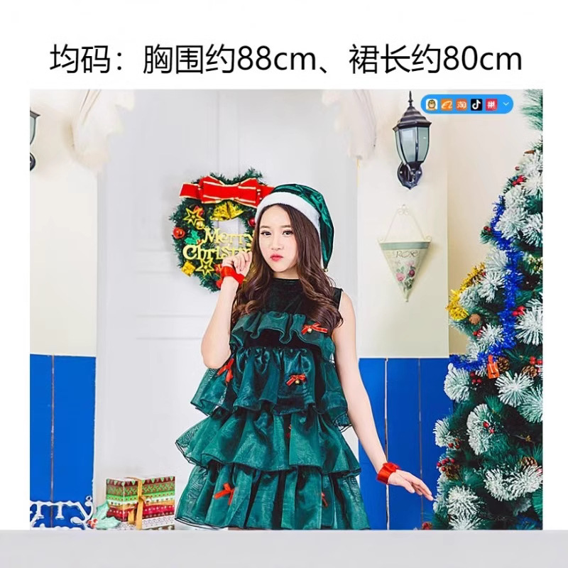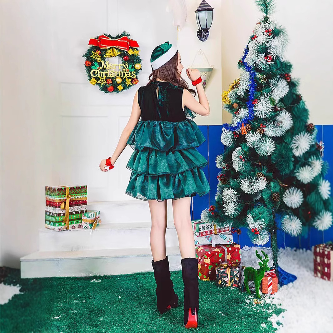 狂欢圣诞节派对聚会演出服绿色圣诞树服装可爱蓬蓬裙无袖连衣裙
