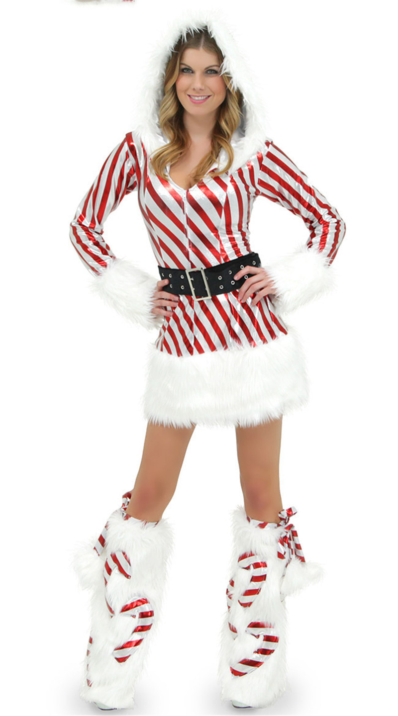圣诞节服装成人圣诞服条纹圣诞装节日圣诞老人服性感圣诞节连体衣