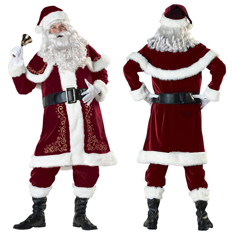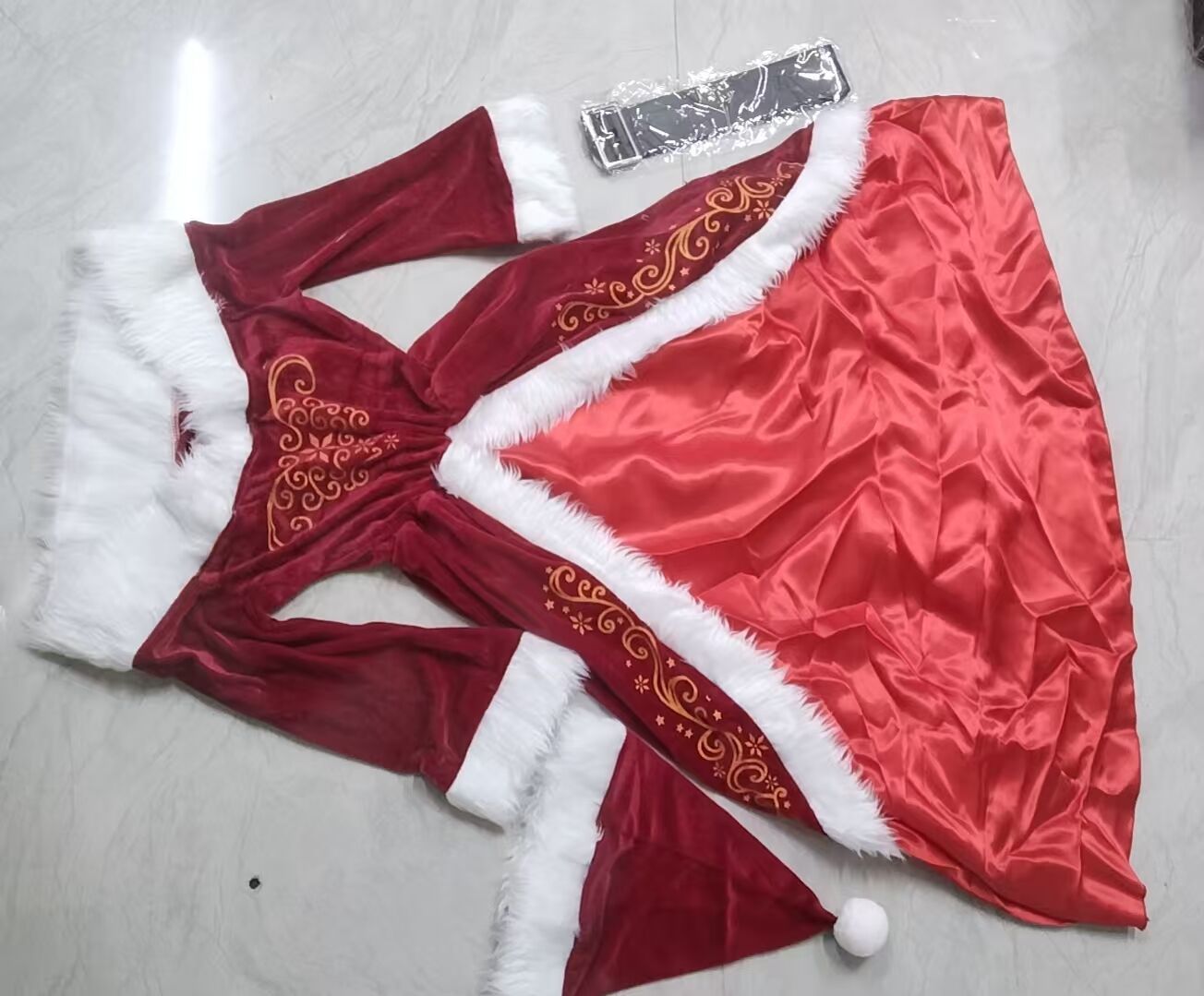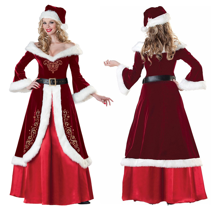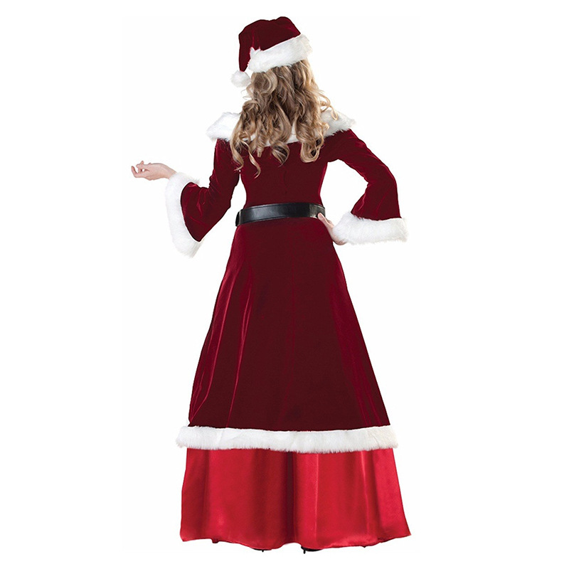 欧美圣诞节复古圣诞裙宫廷长裙情侣圣诞老人绒面圣诞装