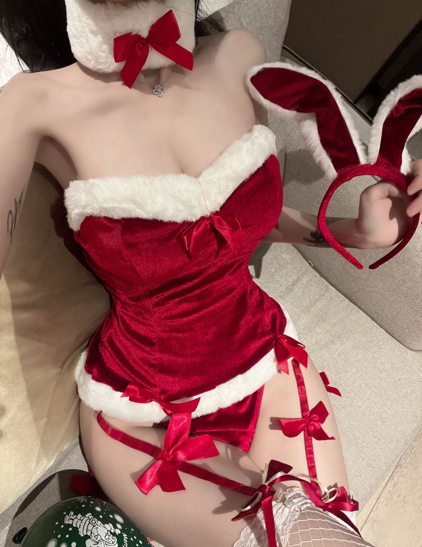 圣诞节红色樱桃蝴蝶结毛绒圣诞帽女氛围感拍照帽子儿童宝宝头饰冬