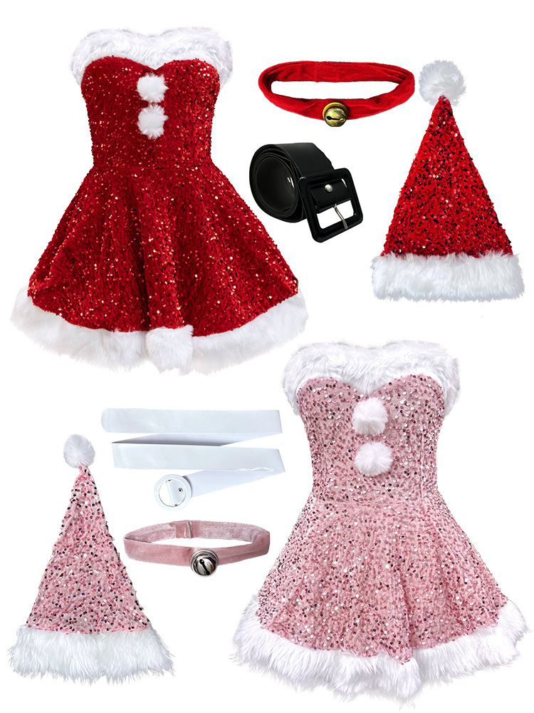 圣诞亮片抹胸裙 亮片圣诞裙 辣妹舞台派对服女