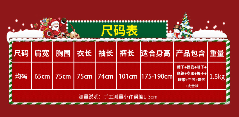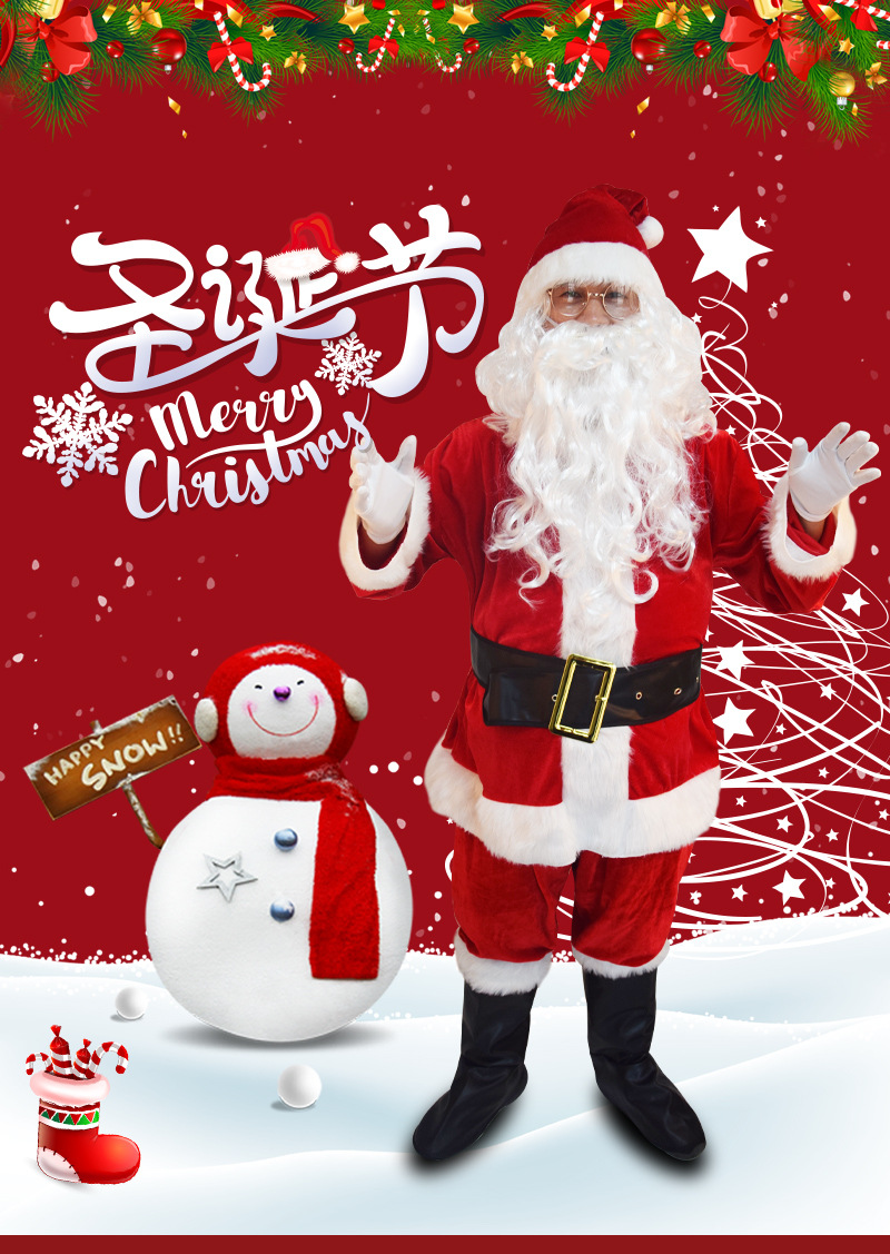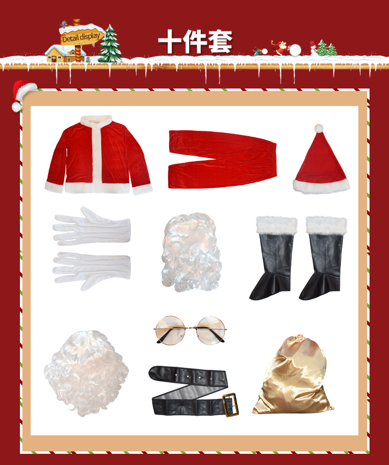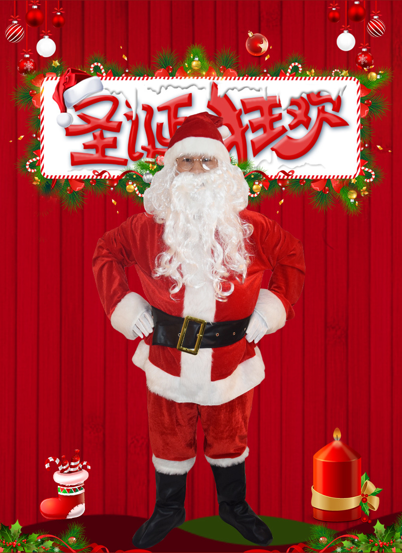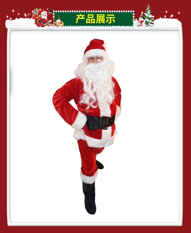 圣诞节服饰老人衣服金丝绒套装圣诞老爷爷假肚子角色扮演服装