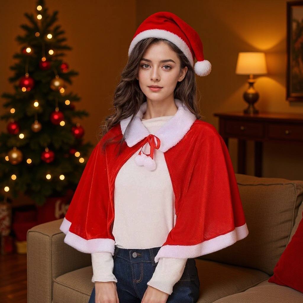 成人圣诞披肩演出服圣诞老人服圣诞披风儿童圣诞斗篷扮演圣诞服