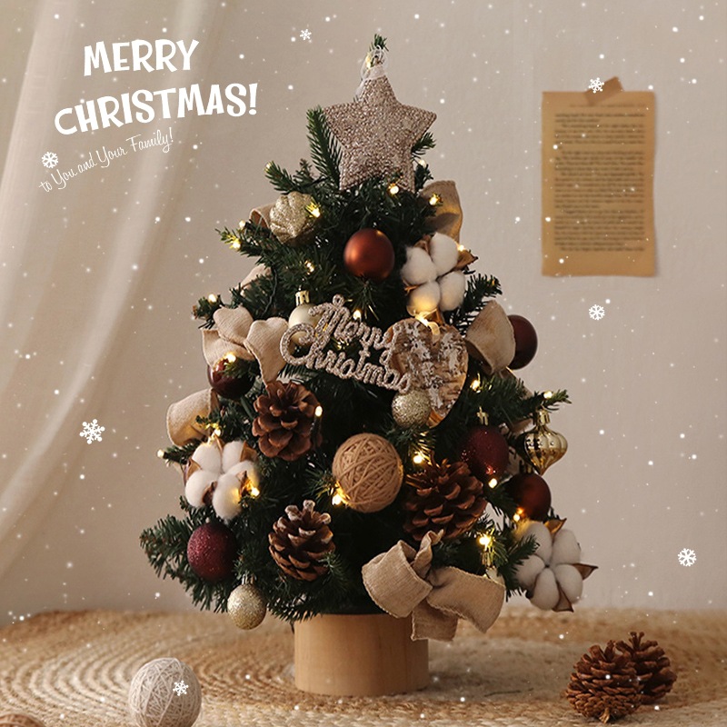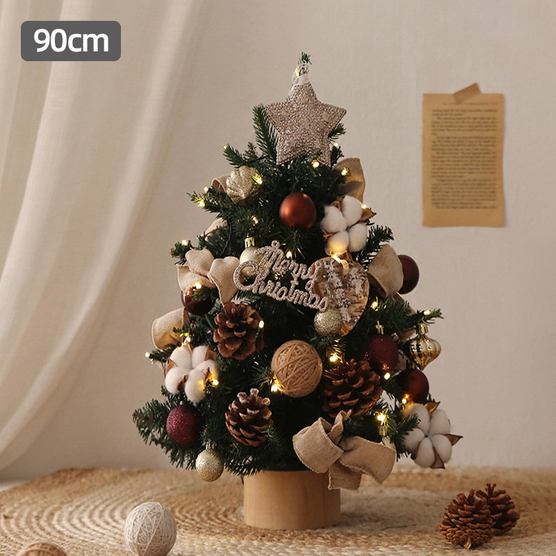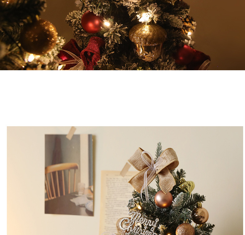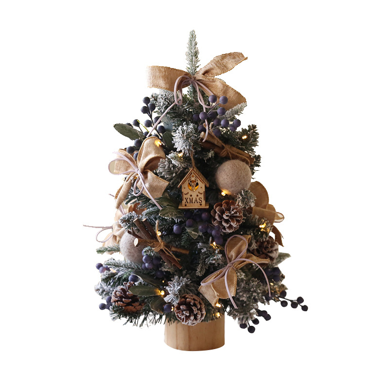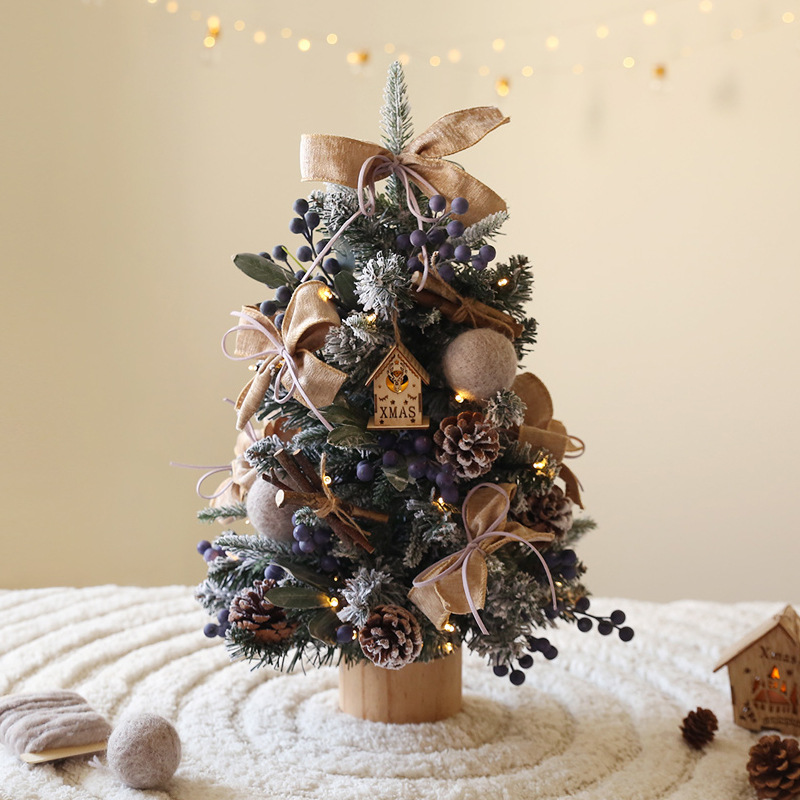 2025新款圣诞树家用装饰品小型摆件DIY小套餐橡果带灯桌面风格