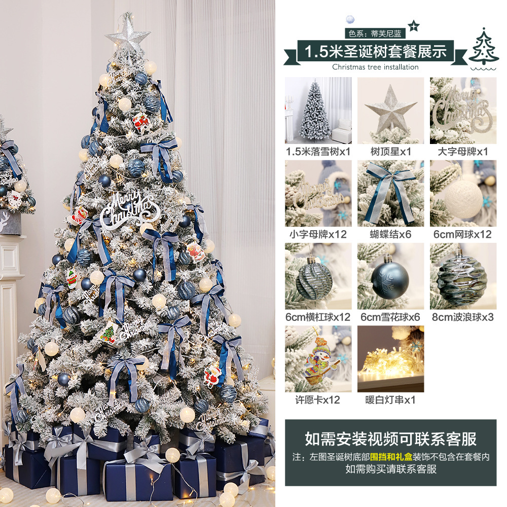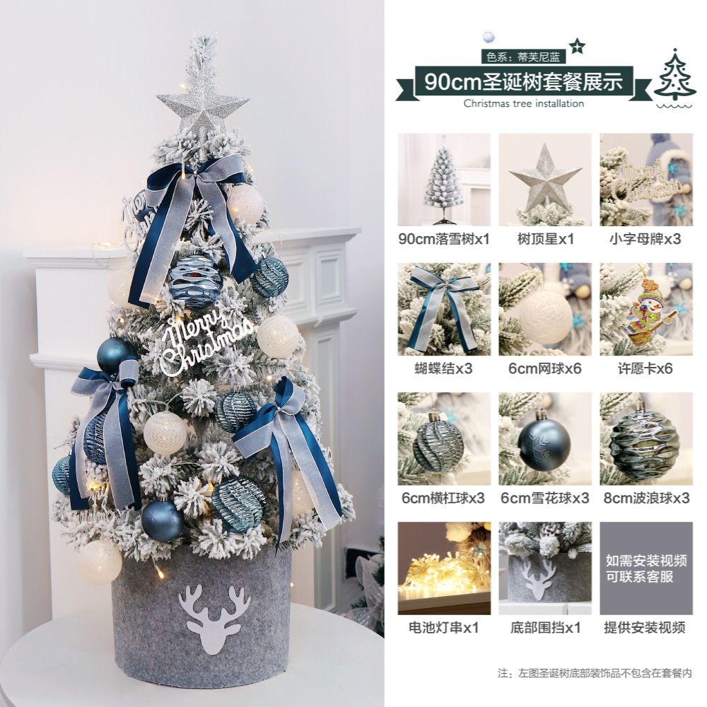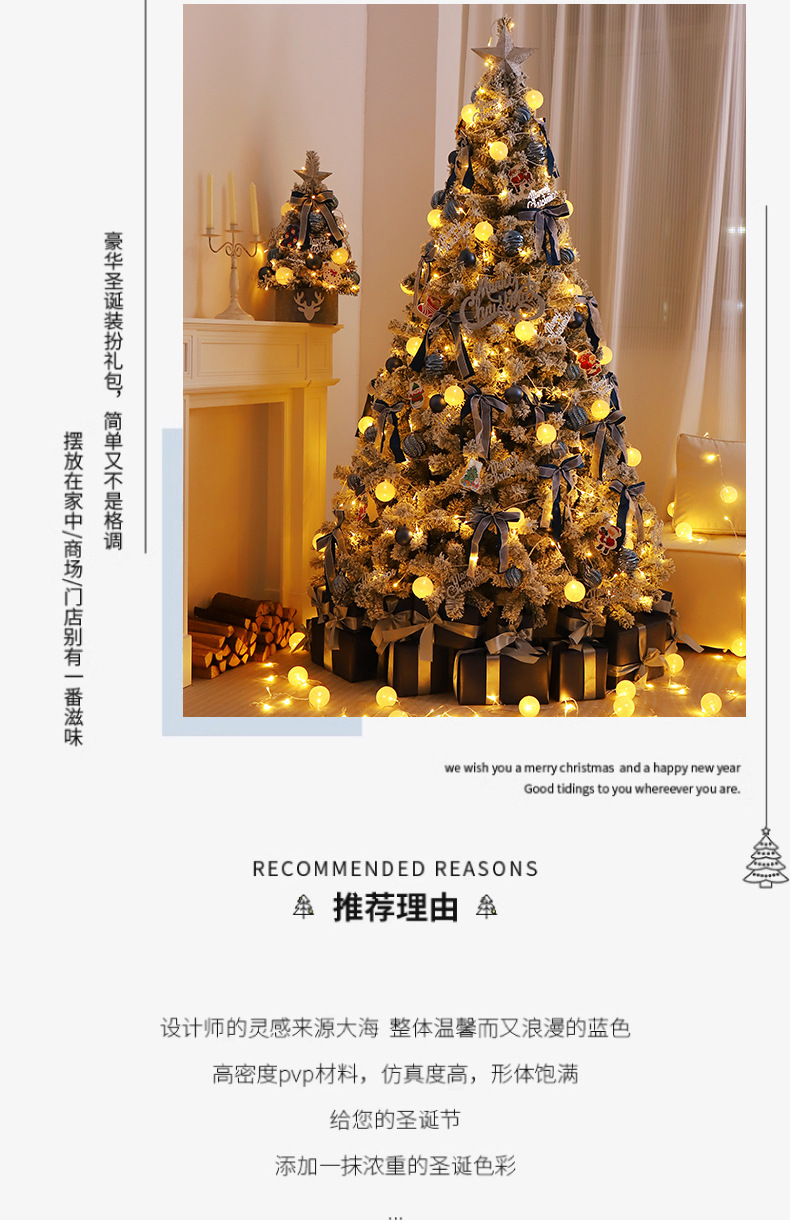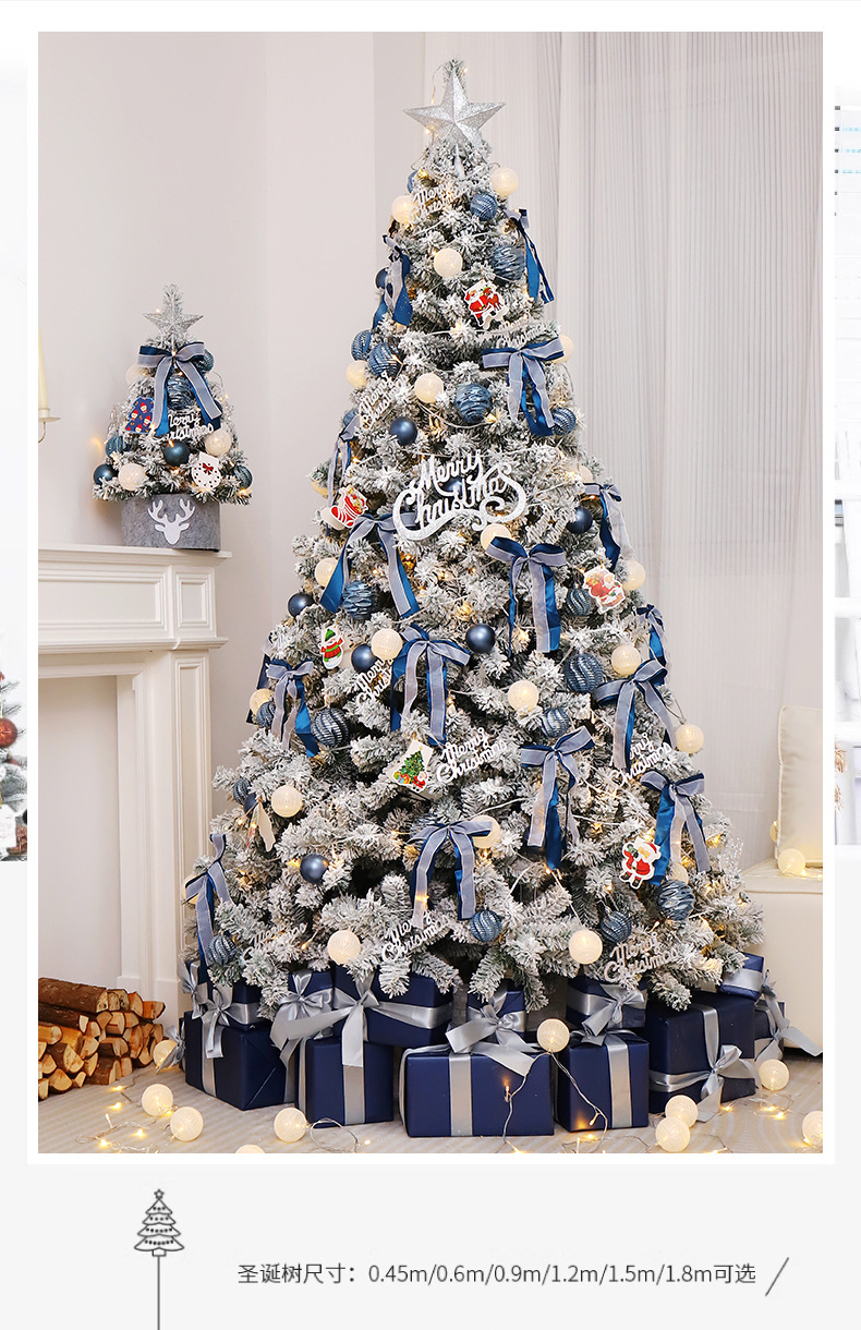 圣诞树新款家用套餐蓝色diy白色落雪PVC植绒树圣诞节布置装饰品