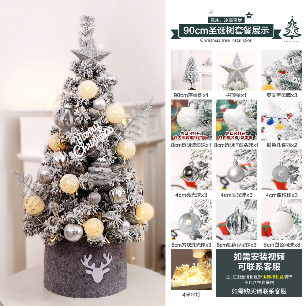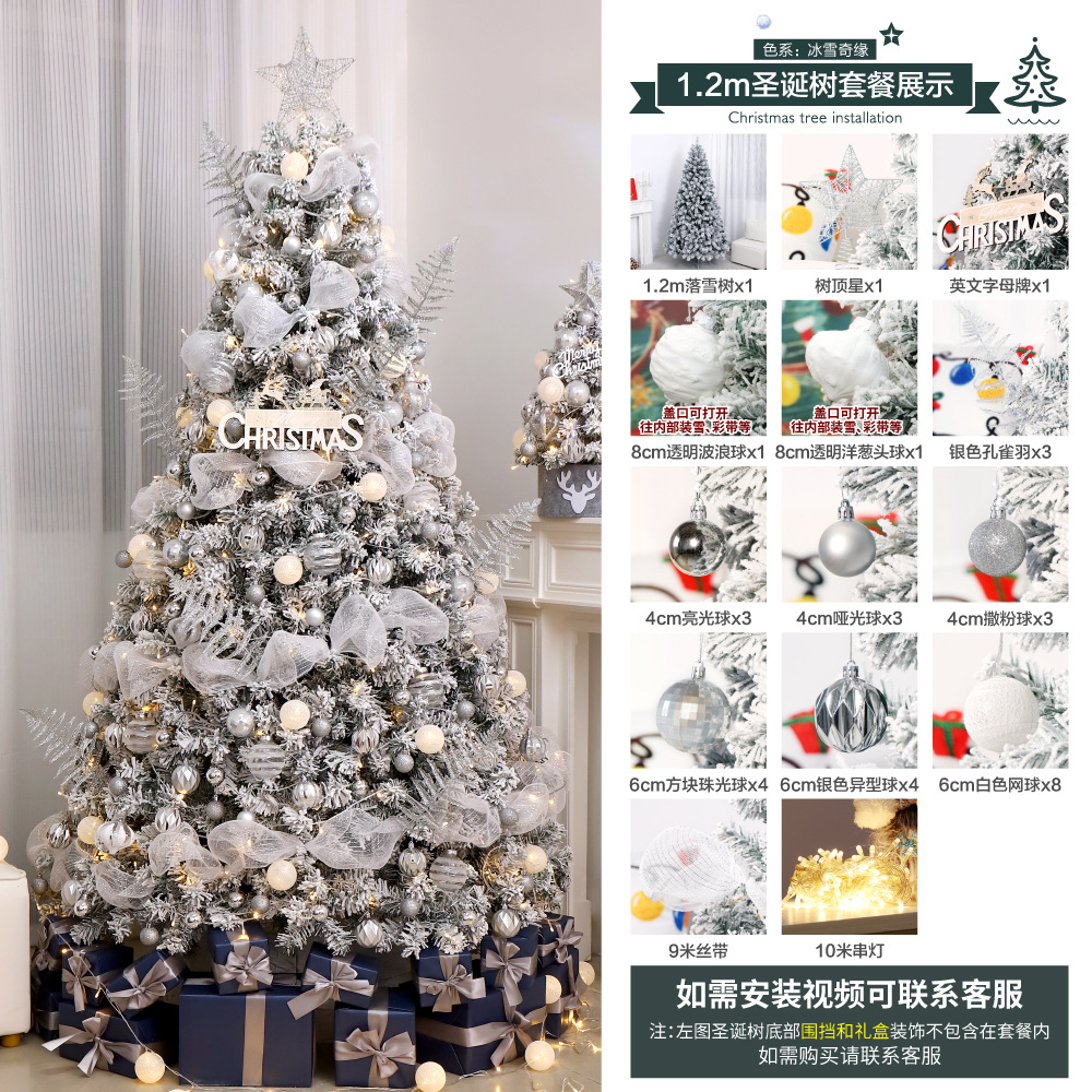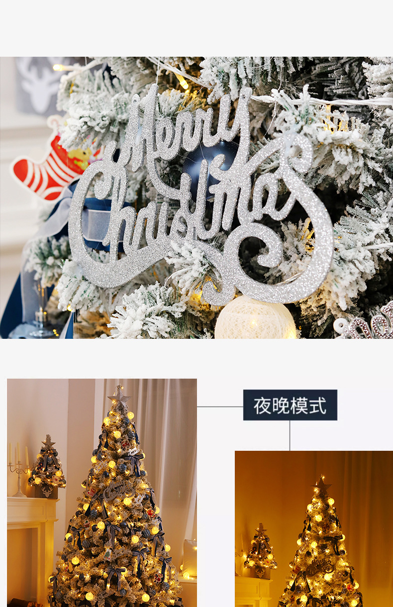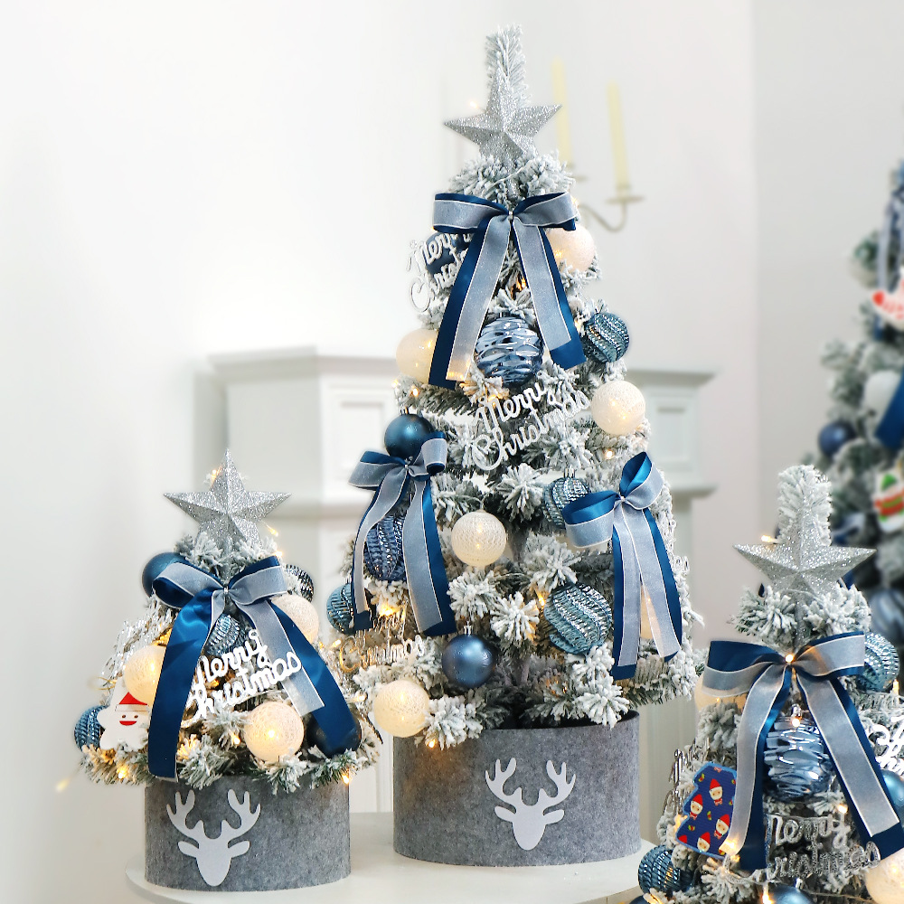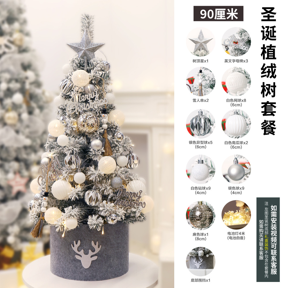 圣诞树新款家用套餐蓝色diy白色落雪PVC植绒树圣诞节布置装饰品