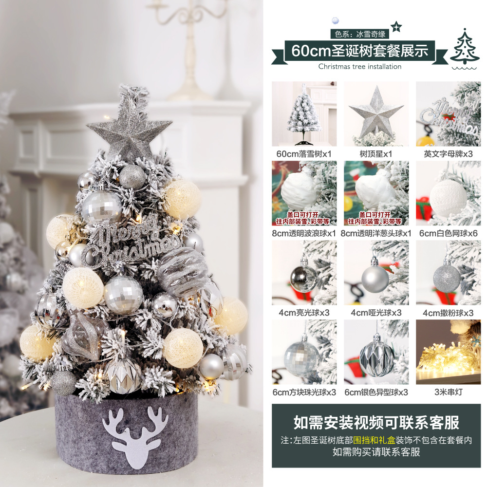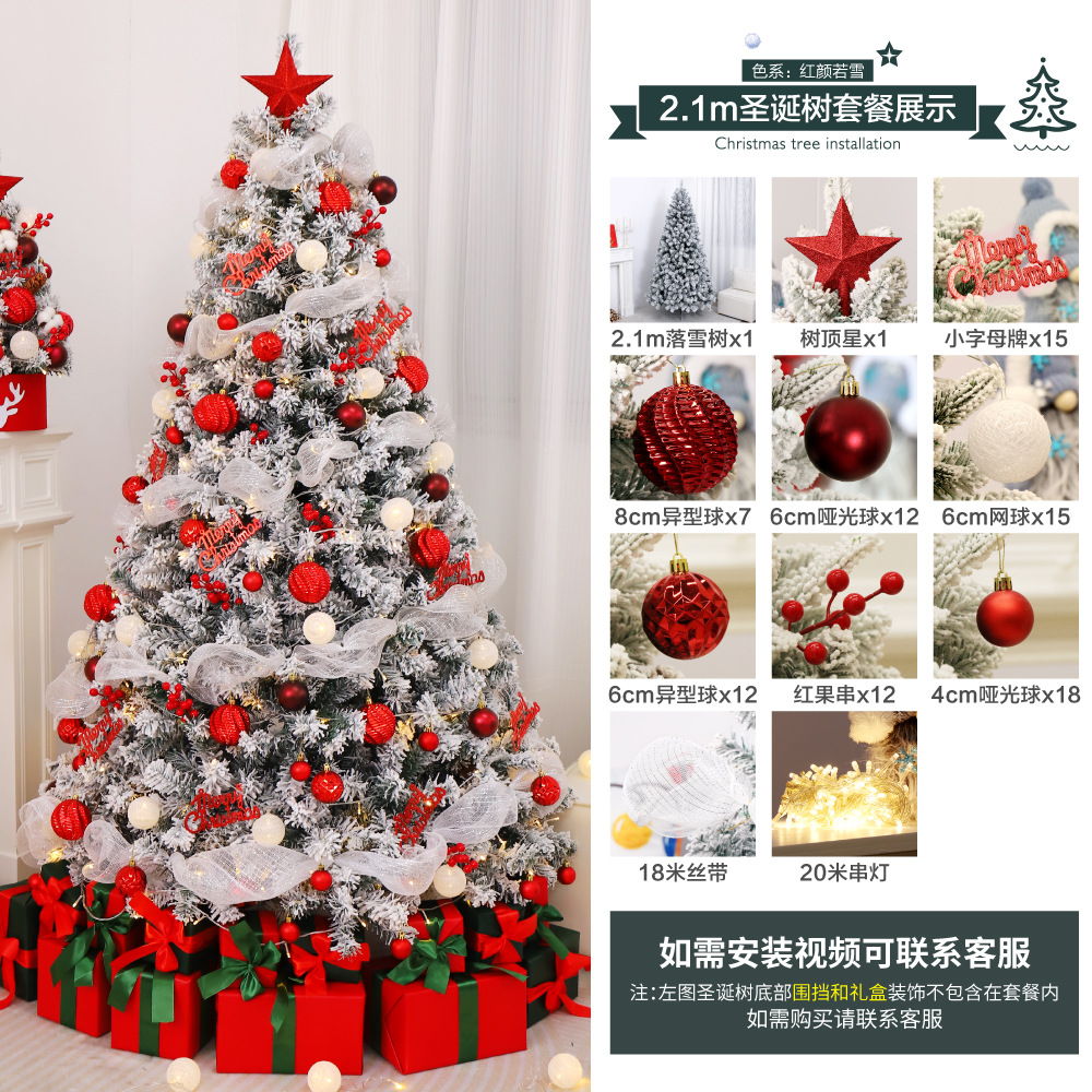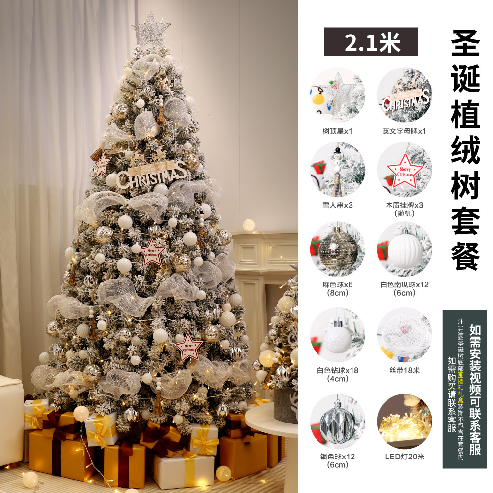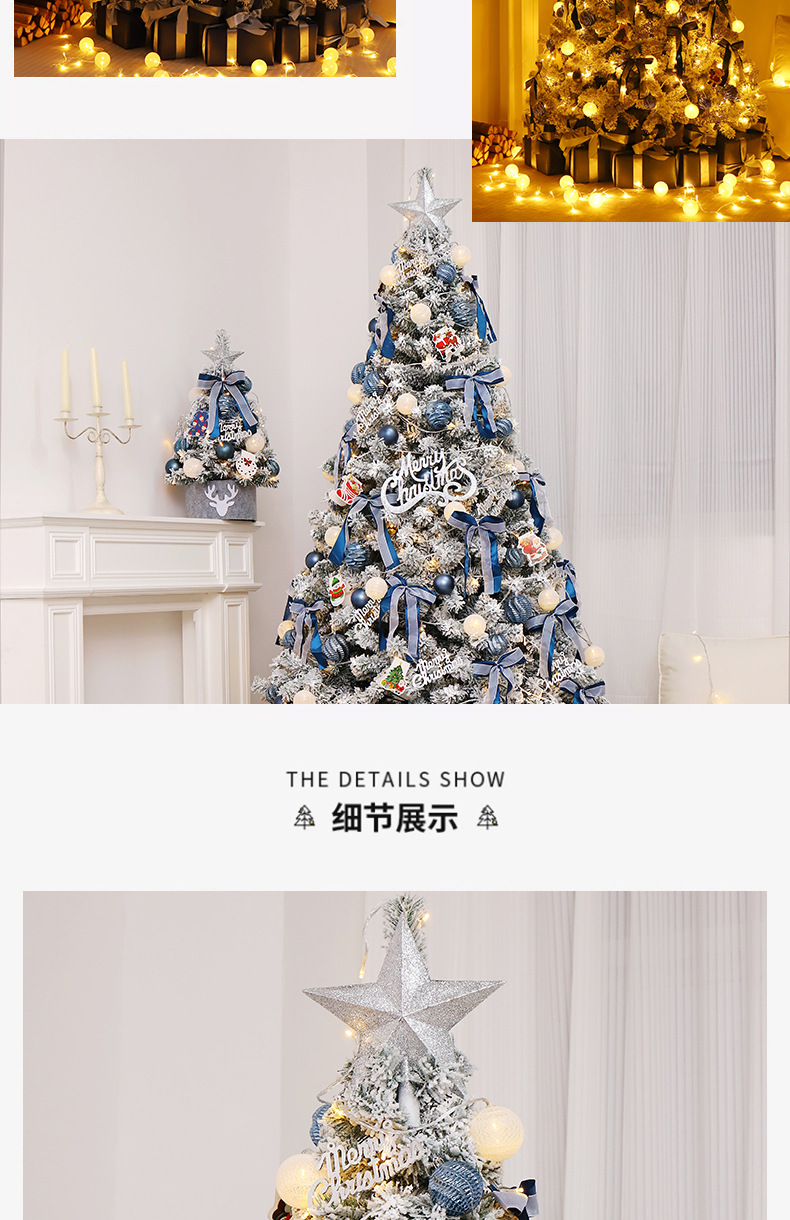 圣诞树新款家用套餐蓝色diy白色落雪PVC植绒树圣诞节布置装饰品