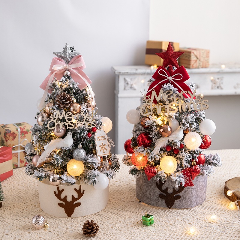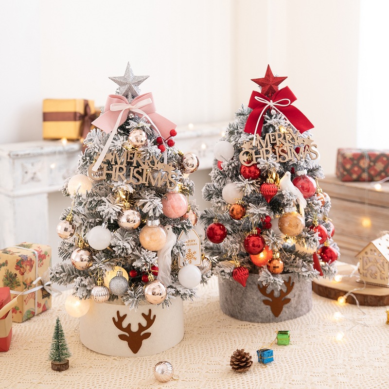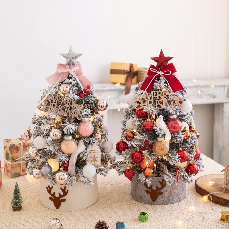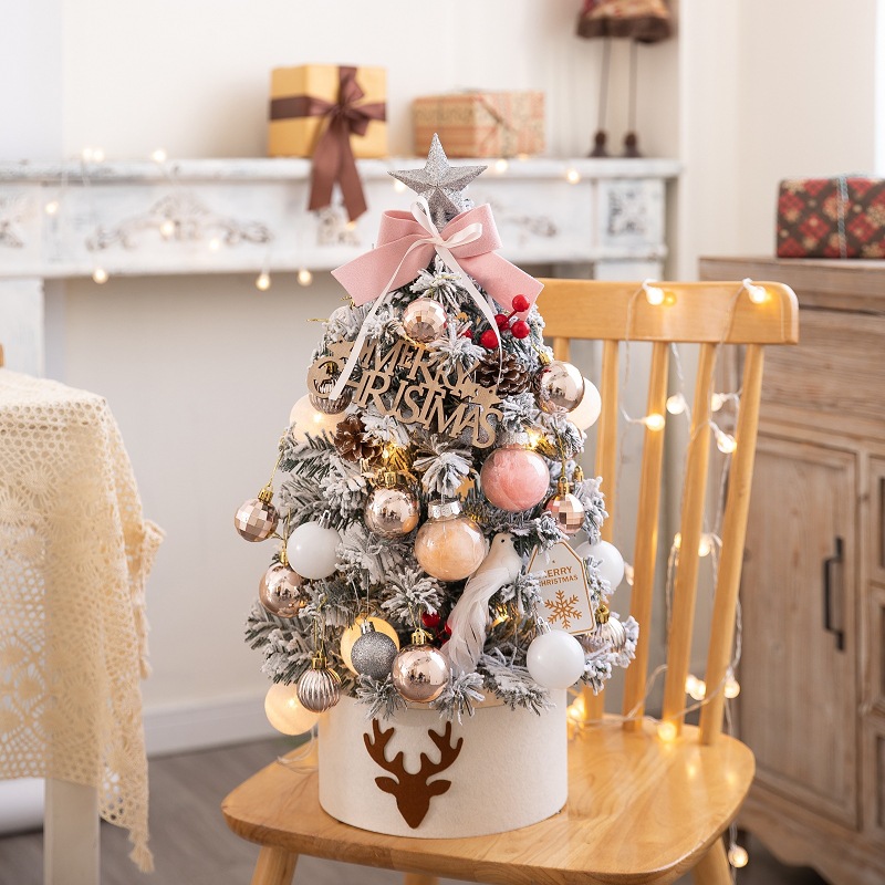 圣诞树christmastree迷你聖誕樹粉色仿真圣诞树套装新款带灯桌面