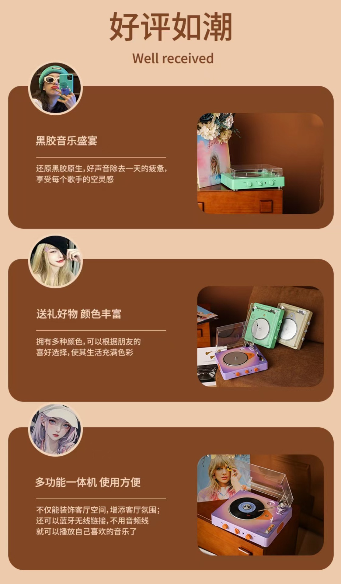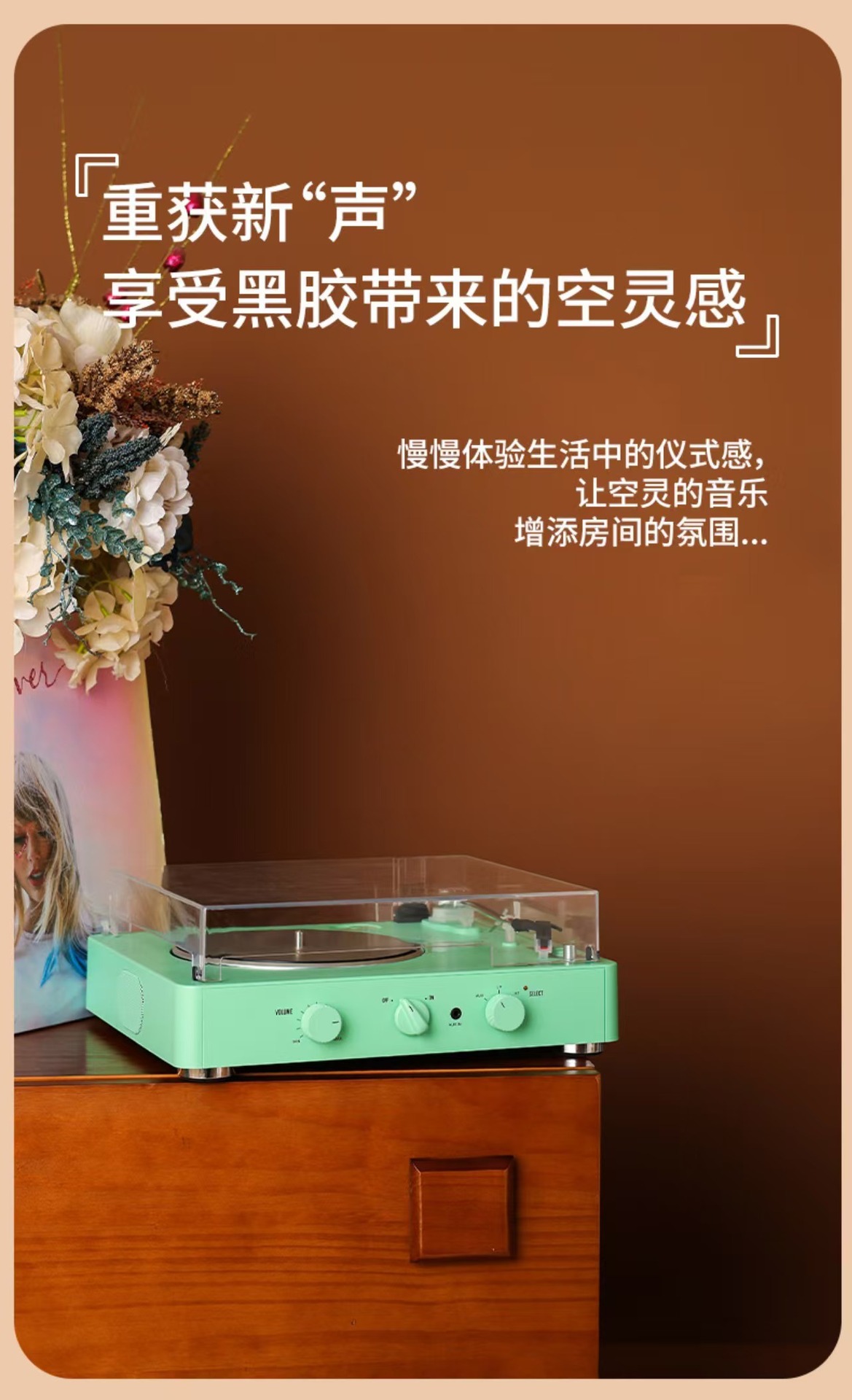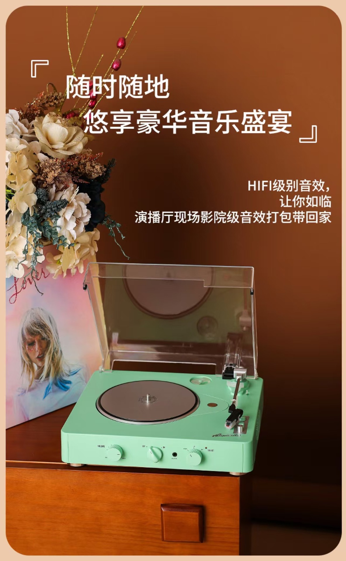 巴音盒多功能黑胶唱片机复古留声机客厅LP摆件无线蓝牙音箱播放器