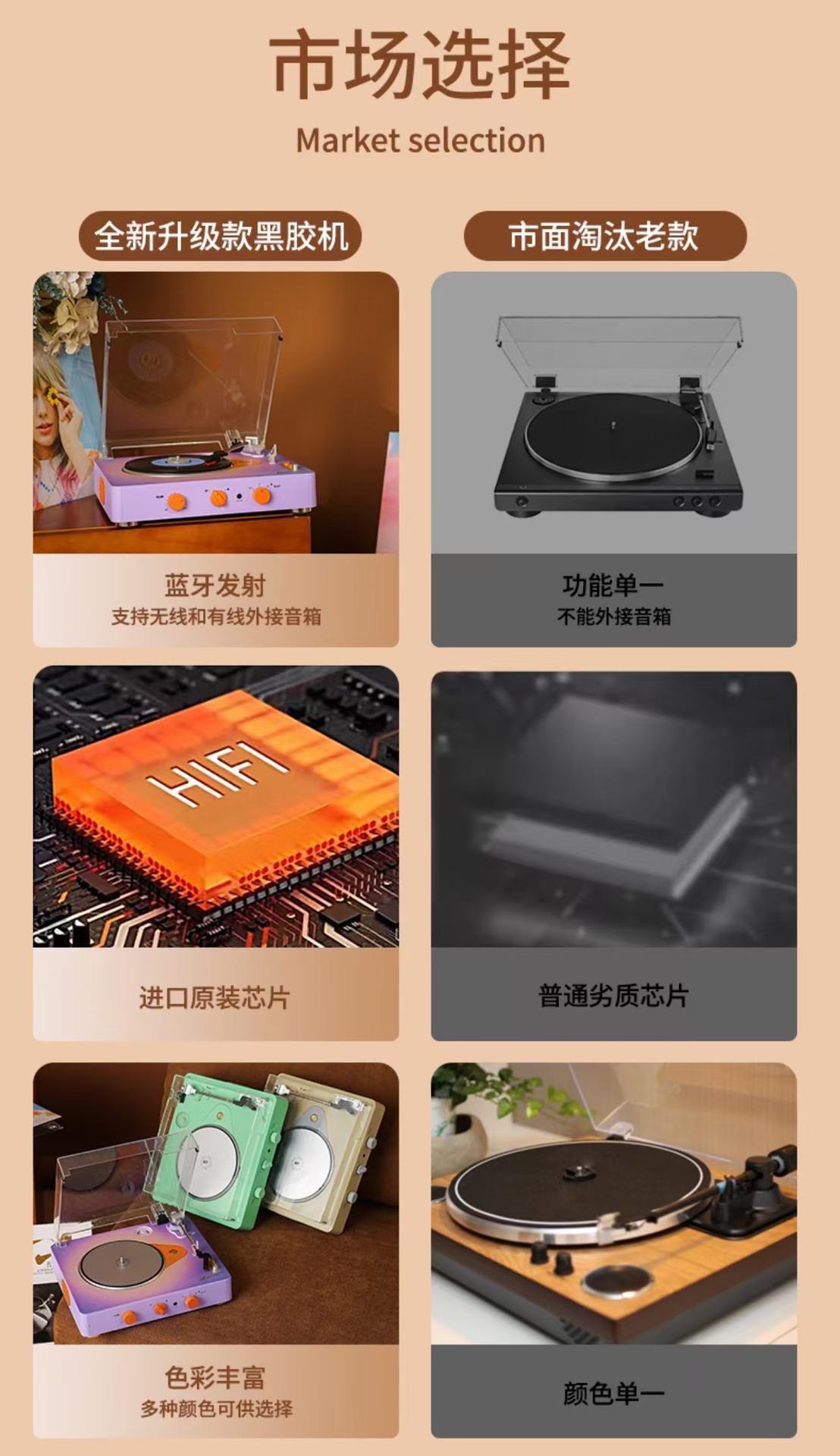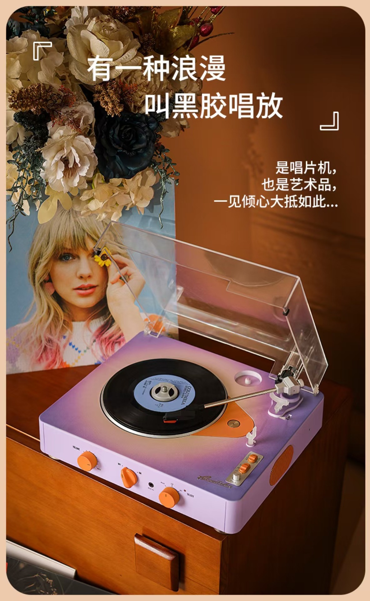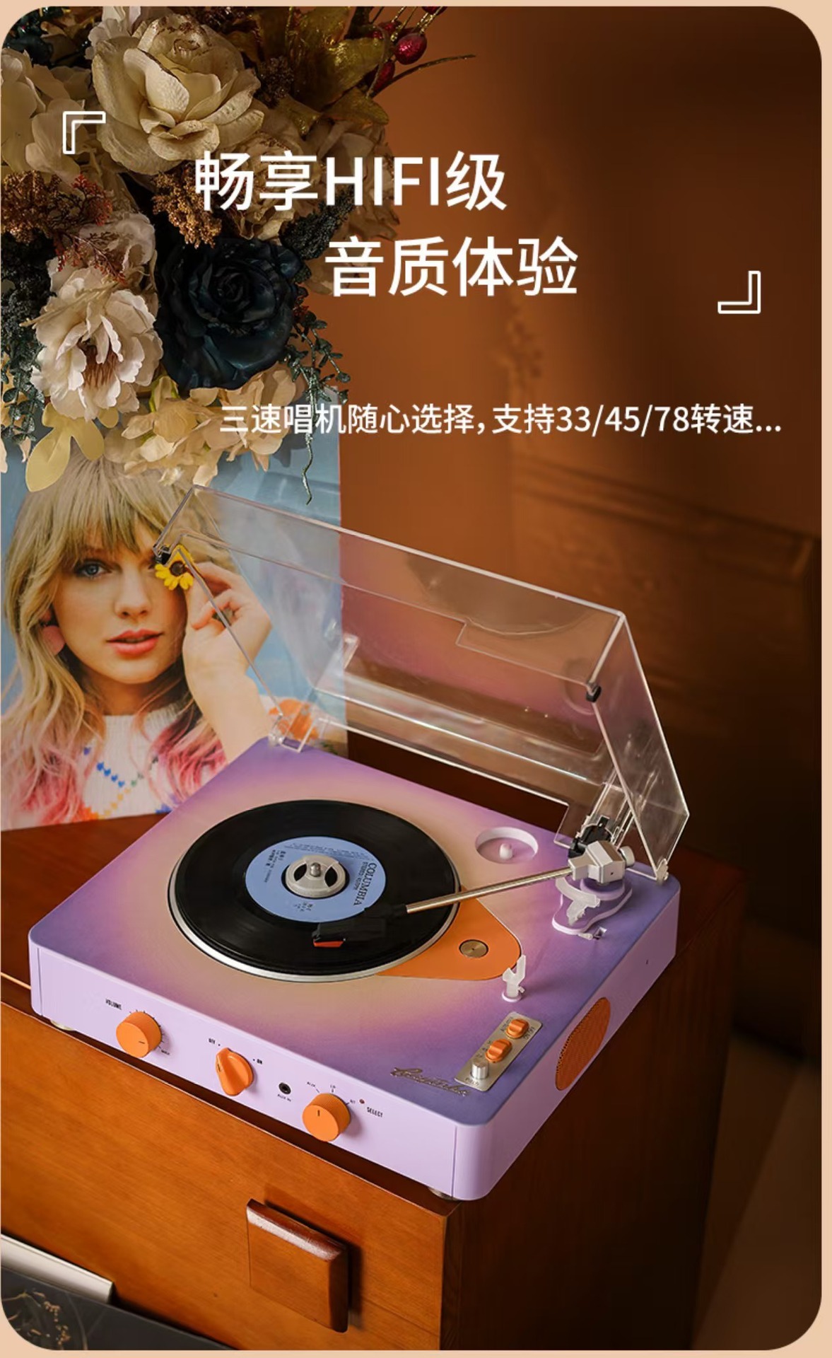 巴音盒多功能黑胶唱片机复古留声机客厅LP摆件无线蓝牙音箱播放器