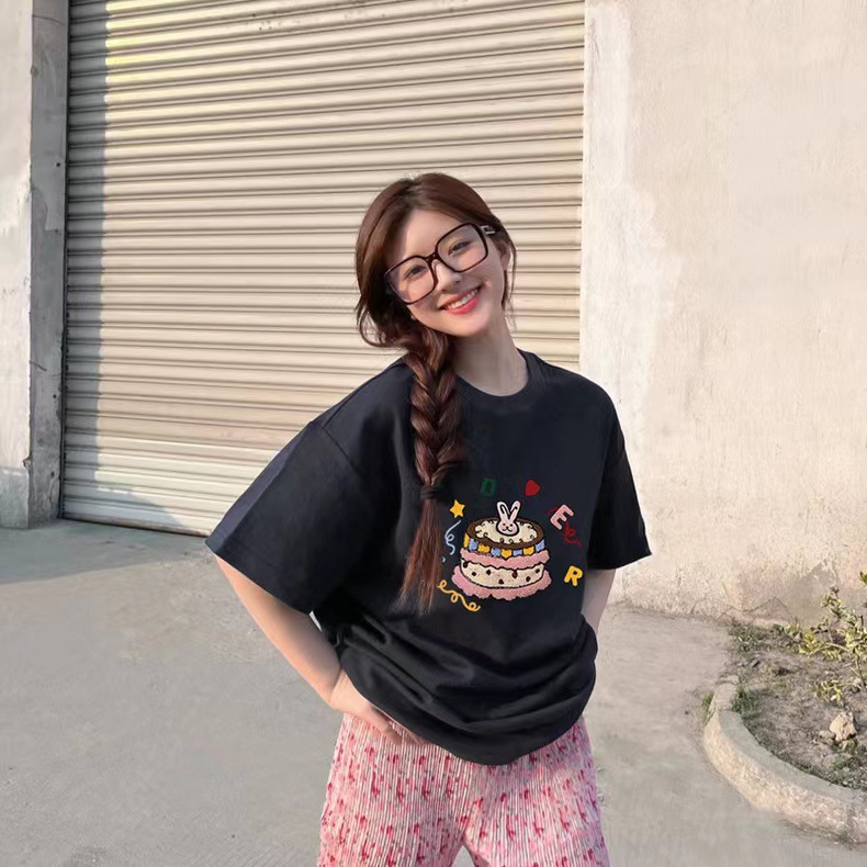 ADER搞怪复古毛巾绣蛋糕T恤男女情侣宽松短袖上衣休闲潮牌半袖