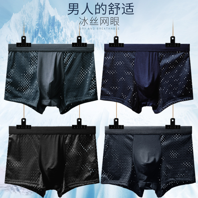男士内裤平角大码冰丝透明透气网眼薄四角短裤头青年潮