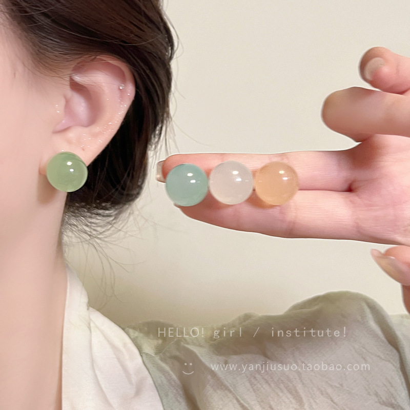 春日~彩色亚克力圆珠耳钉新款爆款耳环女甜美小巧简约耳饰