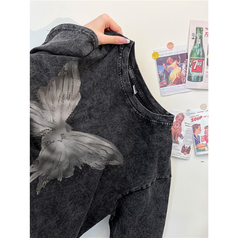 嘻哈重磅纯棉复古做旧水洗黑短袖t恤男女夏季新款宽松慵懒风上衣