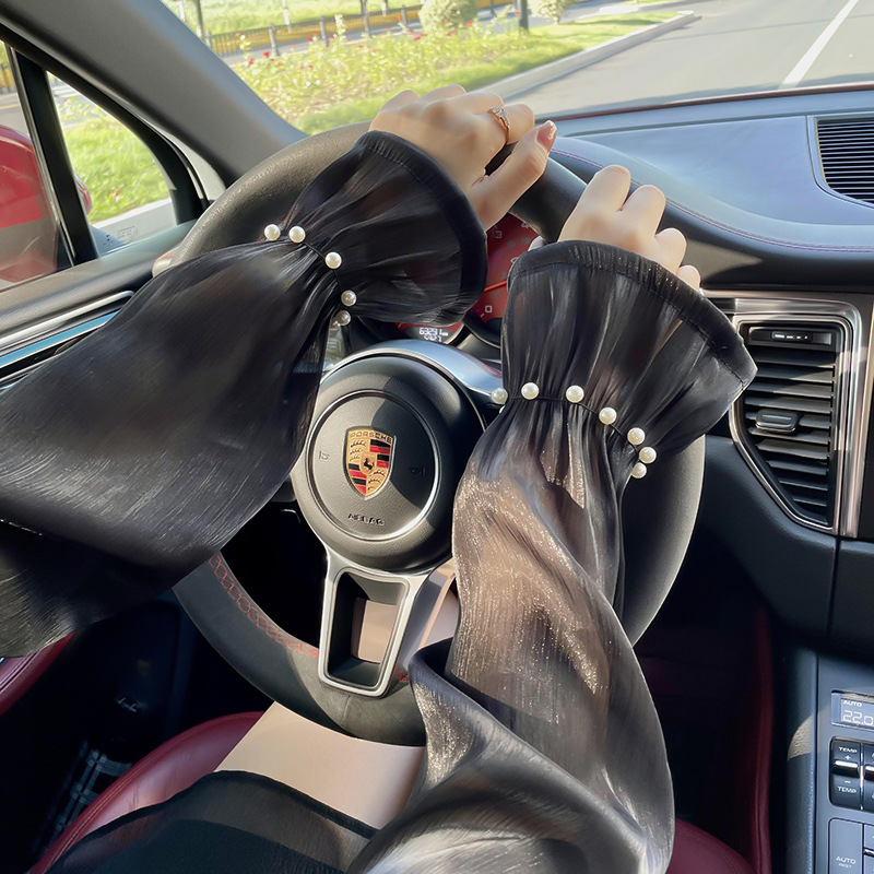 夏季户外开车骑行大码防晒冰袖宽松袖套批发冰丝大号珍珠松紧护臂