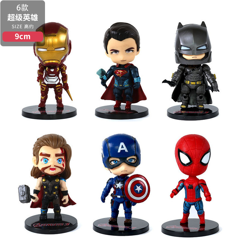 漫威周边玩偶复仇者联盟6款超级英雄手办钢铁蜘蛛侠美队公仔模型