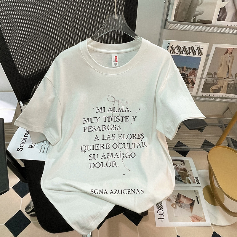 纯棉港风小众设计感字母印花短袖T恤女夏季新款宽松百搭半袖上衣