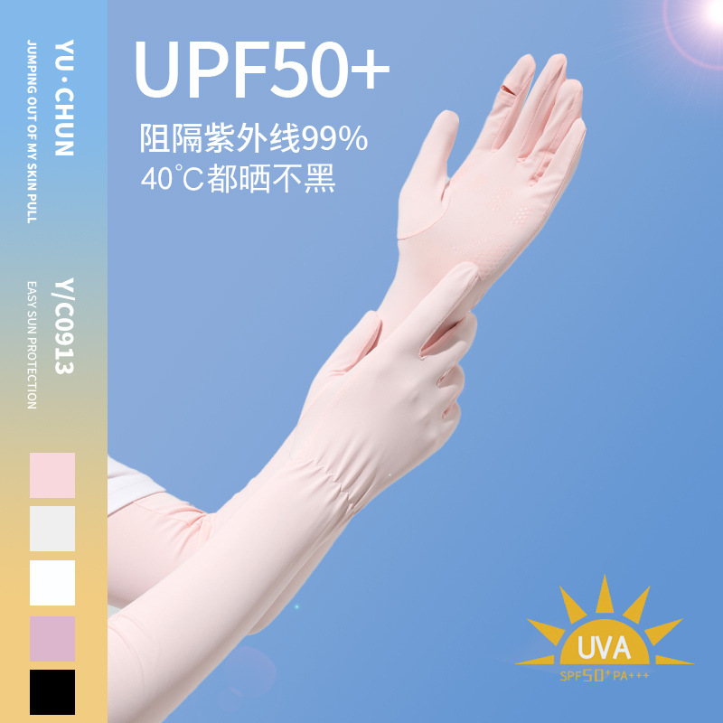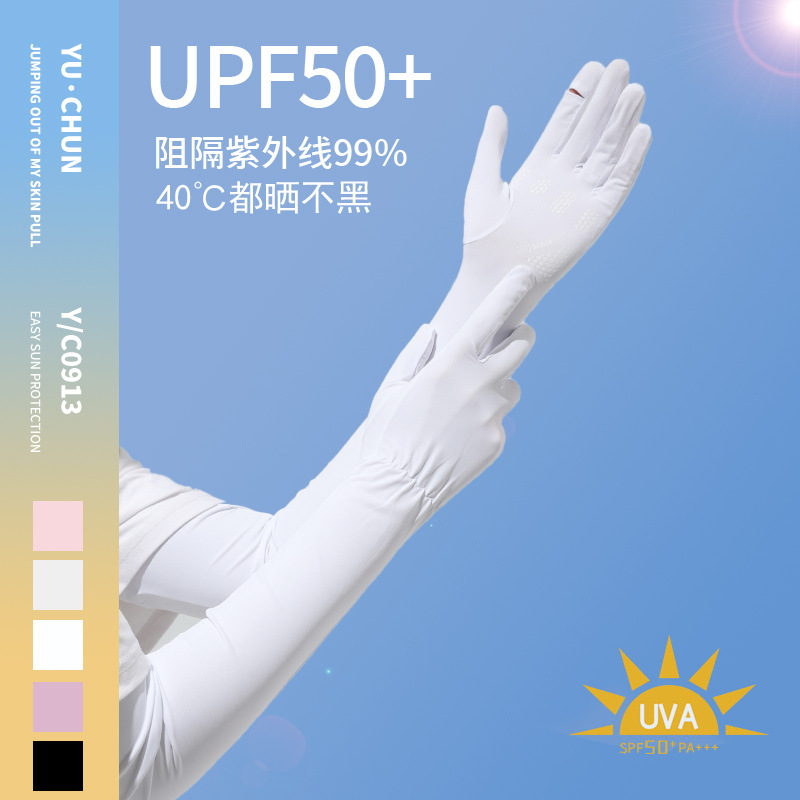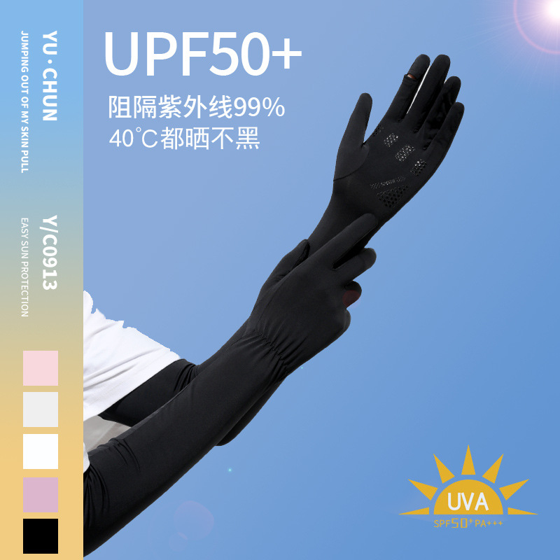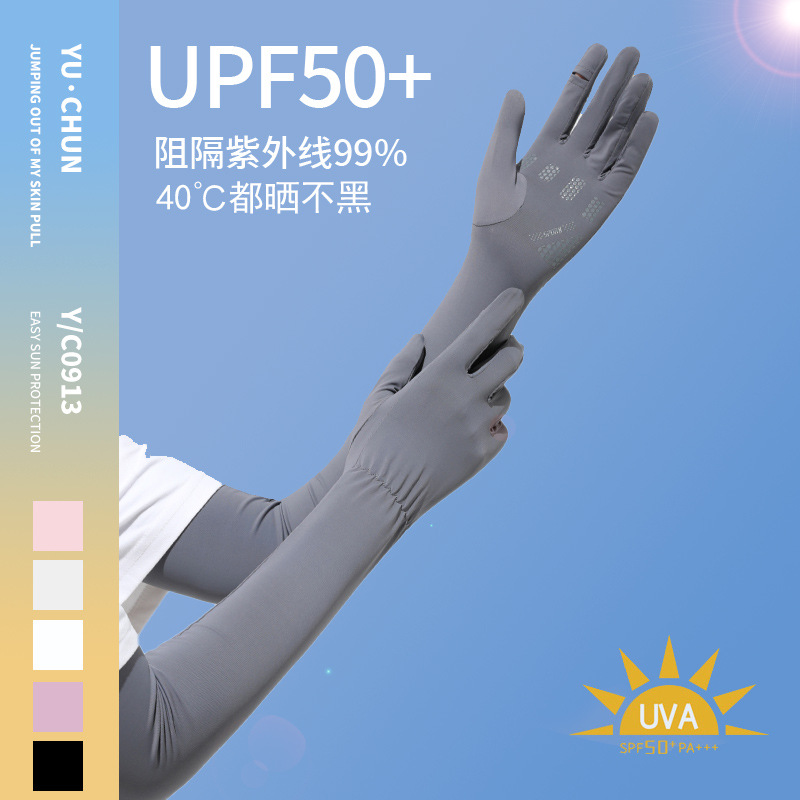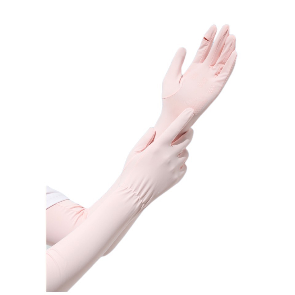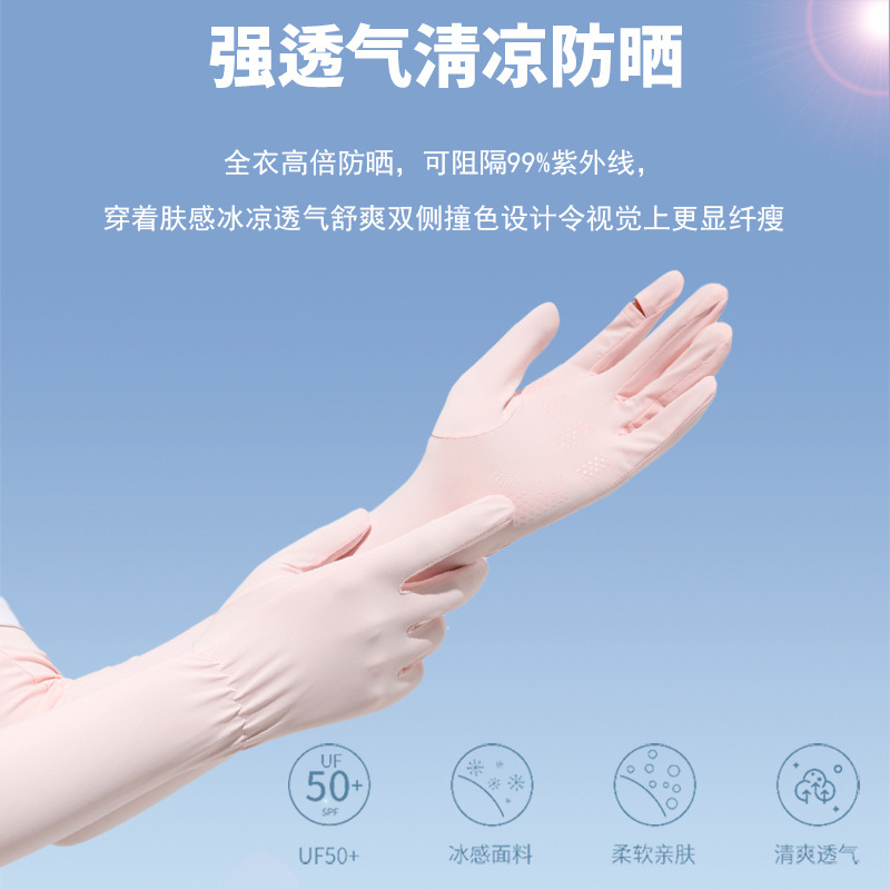 夏季防晒袖套防紫外线户外冰袖骑行锦纶冰丝袖女加长防晒手套