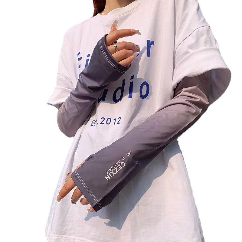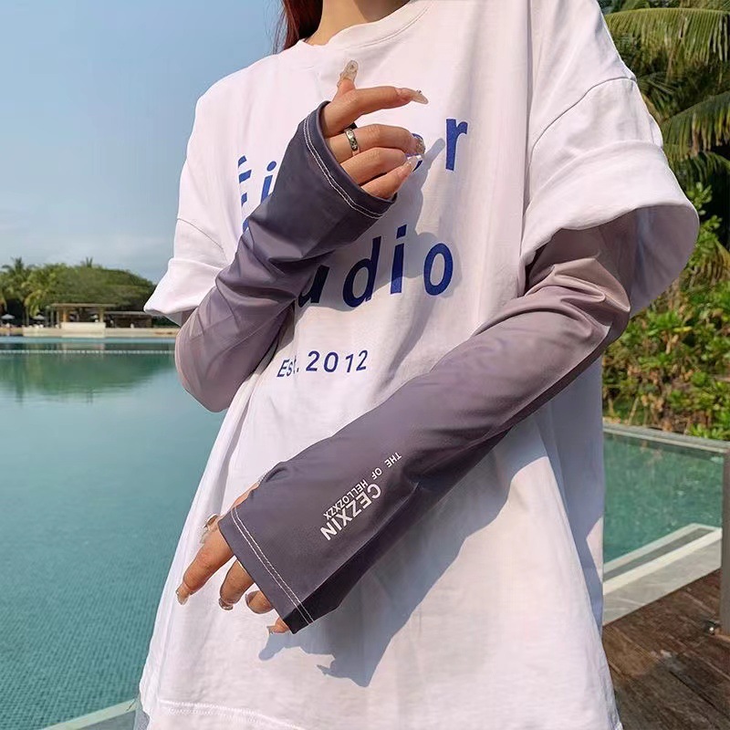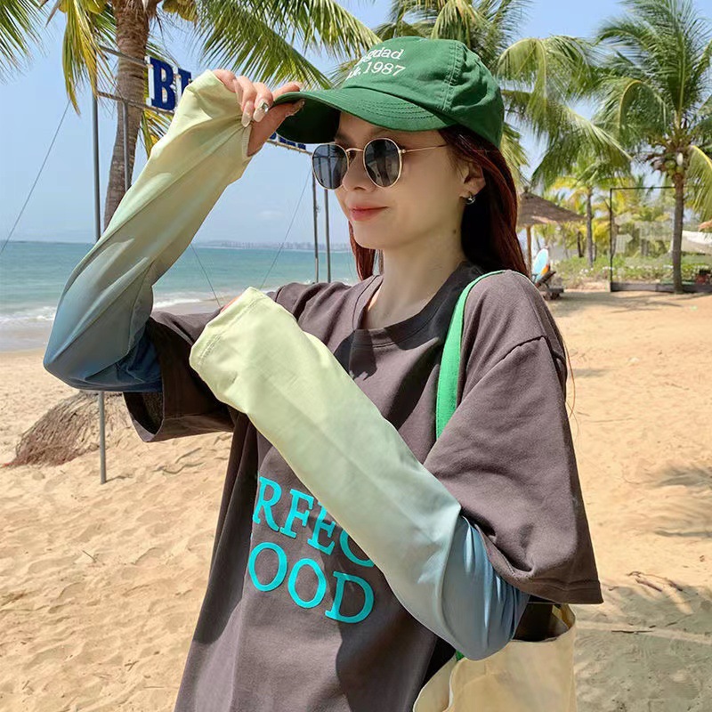 渐变男女宽松大码松紧夏季开车防晒袖套女防紫外线冰袖护臂手袖子