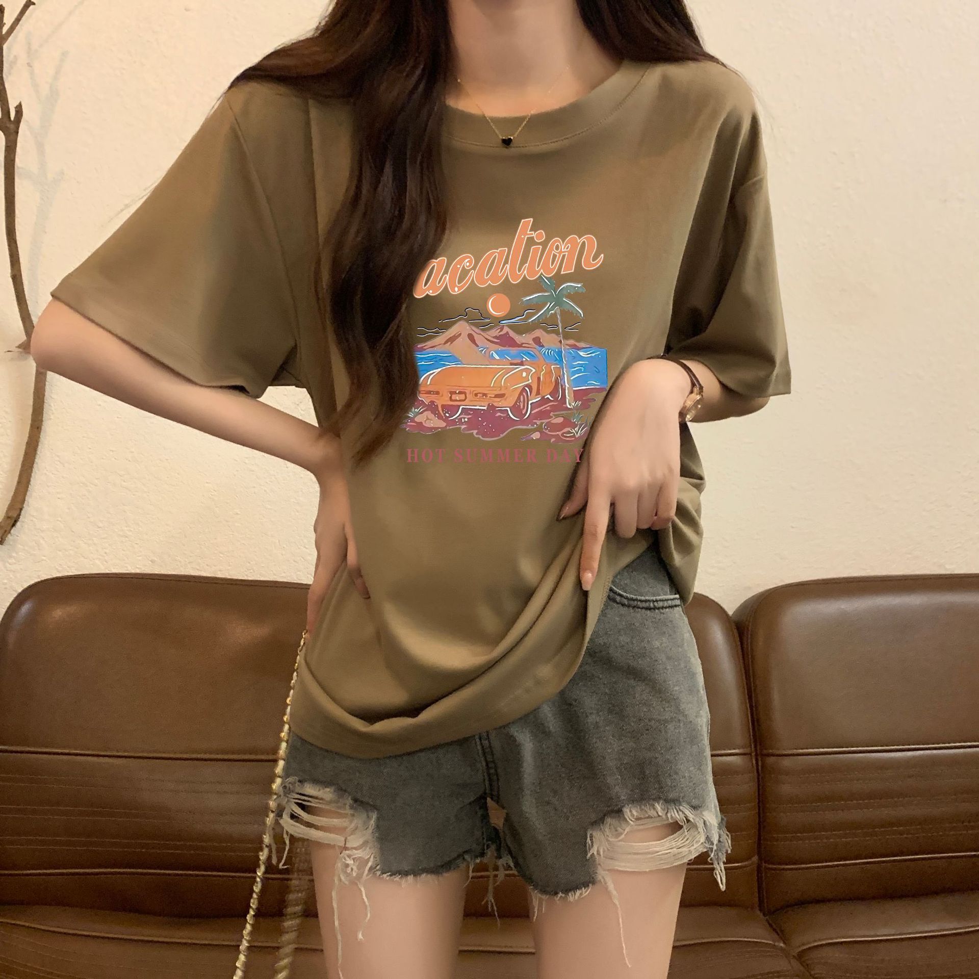 正肩短袖t恤女新款设计感小众宽松显瘦洋气上衣女夏