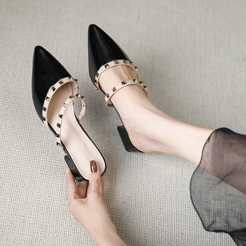 粗跟尖头半拖鞋新款半包凉拖鞋网红懒人柳钉气质时尚女鞋外穿