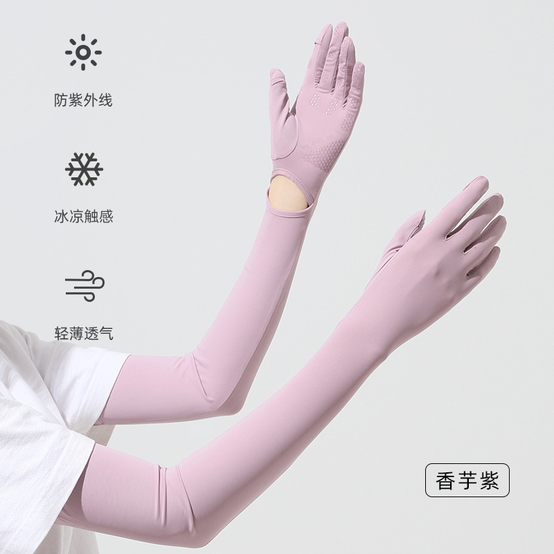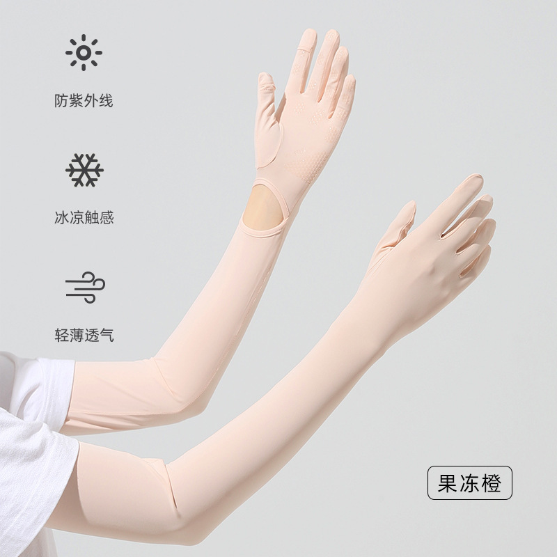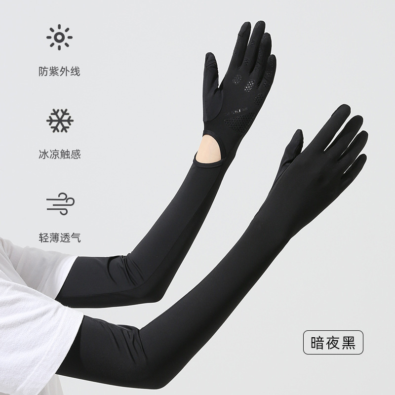 夏季新款防晒袖套防紫外线户外骑行锦纶冰丝袖女加长防晒手套冰袖